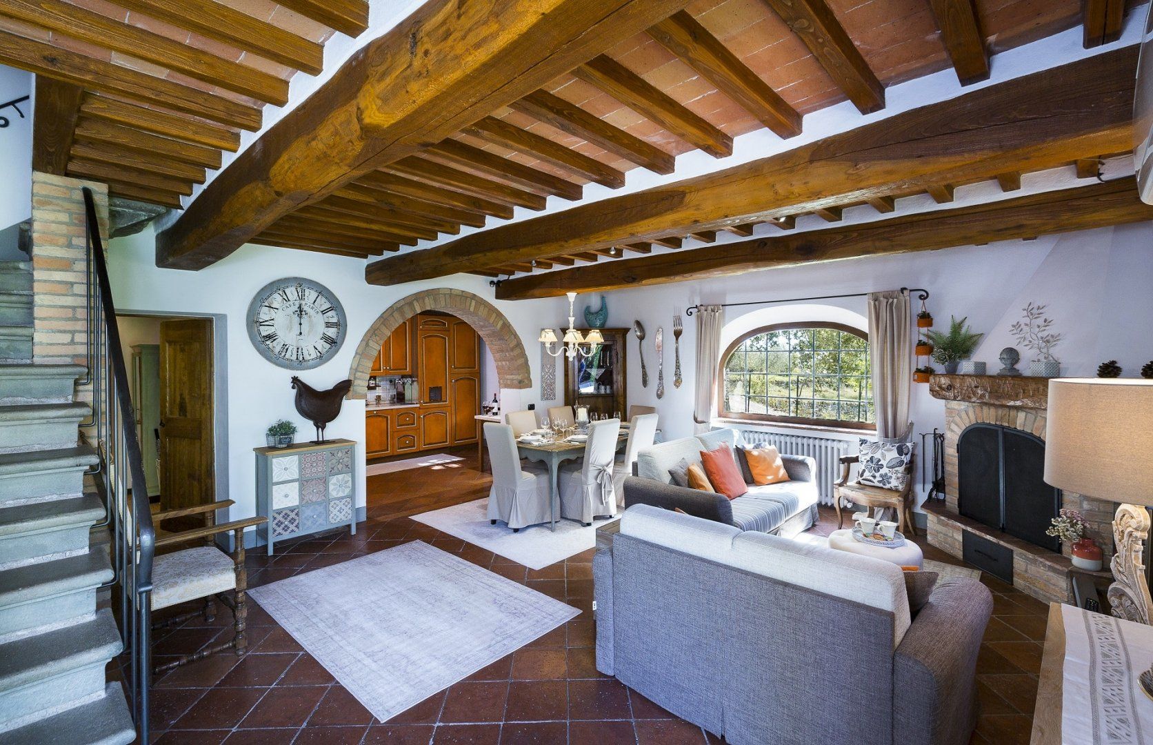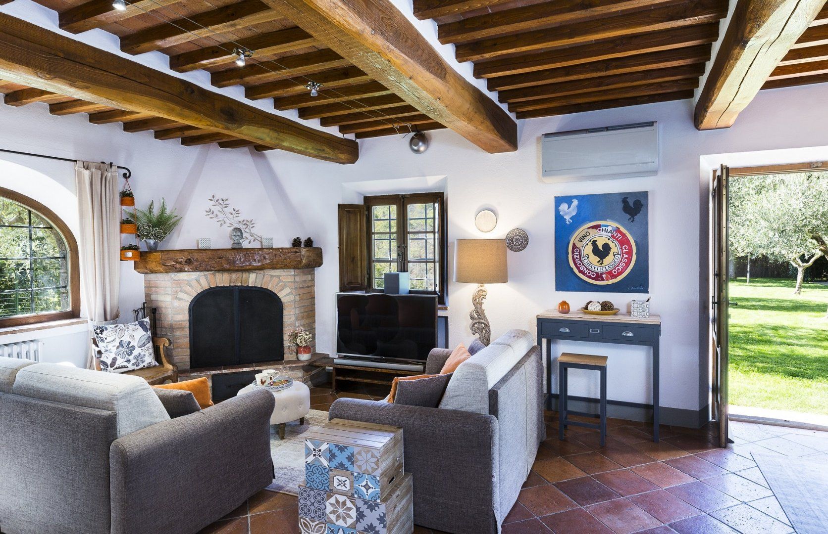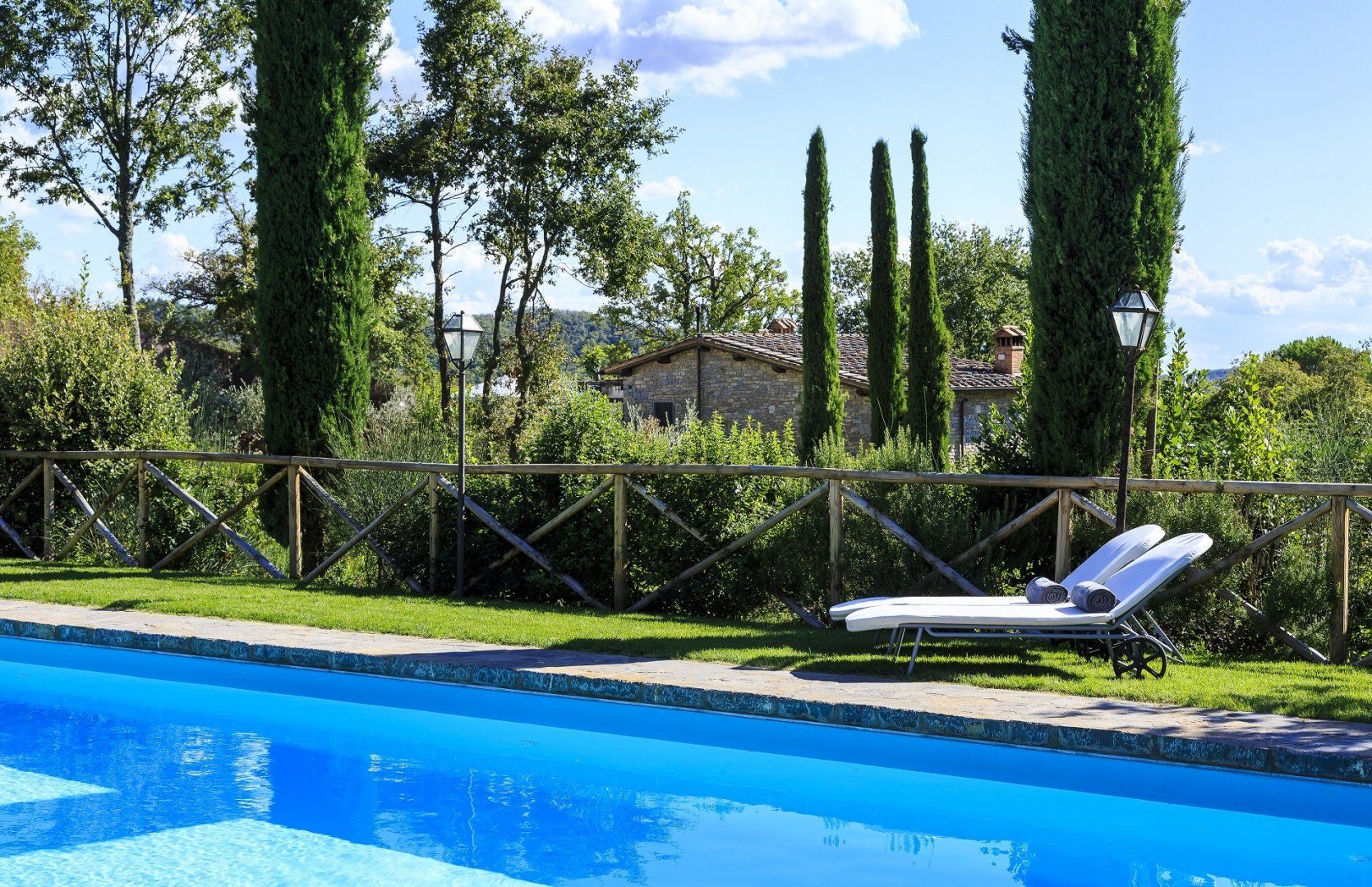 Nestled within the iconic green hills of Tuscany, close to the charming hilltop town of Radda, this beautifully restored farmhouse has everything you need for a good time – delicious food, great wine and quality time with loved ones. Both the interior and exterior boast traditional features, with wooden-beamed ceilings, terracotta tiles and exposed brick creating a cosy atmosphere and a sense of authenticity. The lawn is beautifully kept and offers a private pool and outdoor shower, which provide an invigorating start to the day.