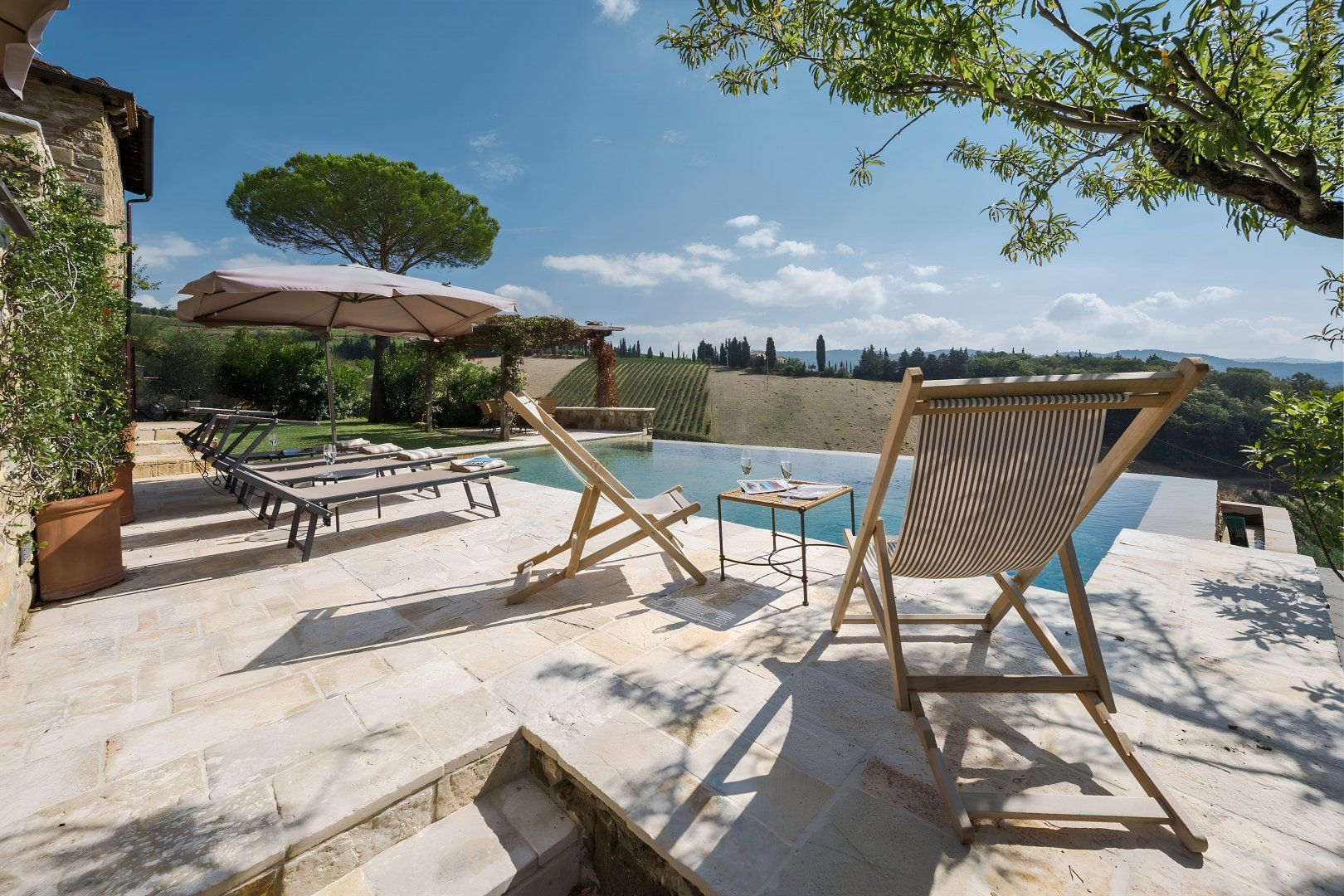 Overlooking the Tuscan countryside from its hillside position, this rustic villa boasts some incredible views – best celebrated from the outside dining area and elegant infinity pool. We think it's a great fit for families with a lovely private garden as well as flexible sleeping arrangements – the twin beds can be converted into doubles upon request. Keen cooks will love the modern chef's kitchen for preparing alfresco suppers – though if you feel like dining out, the nearby village of Volpaia and the market town of Radda are both just a short drive away. You will need to hire a car to get around here, and the drive will often be hilly and uneven.