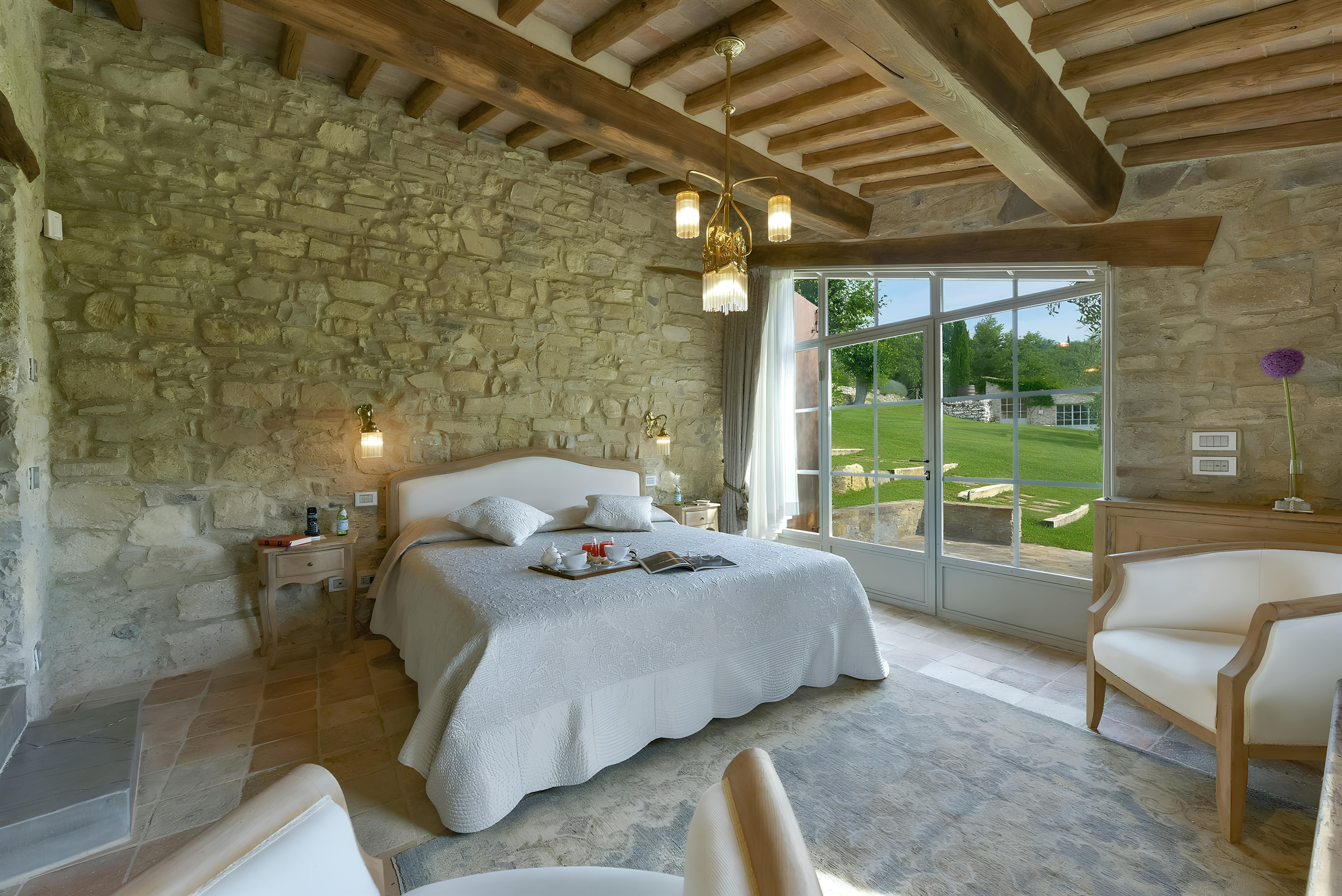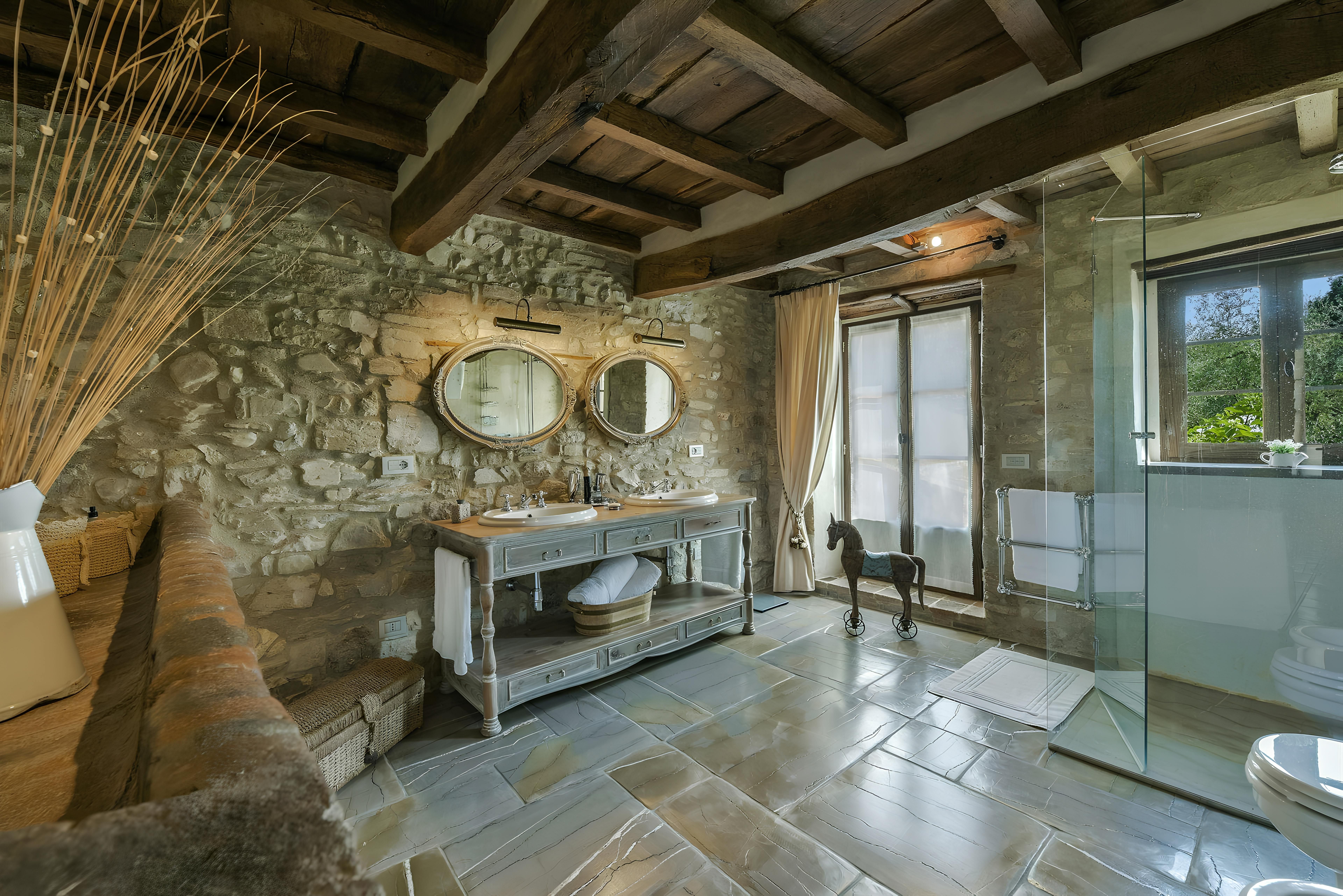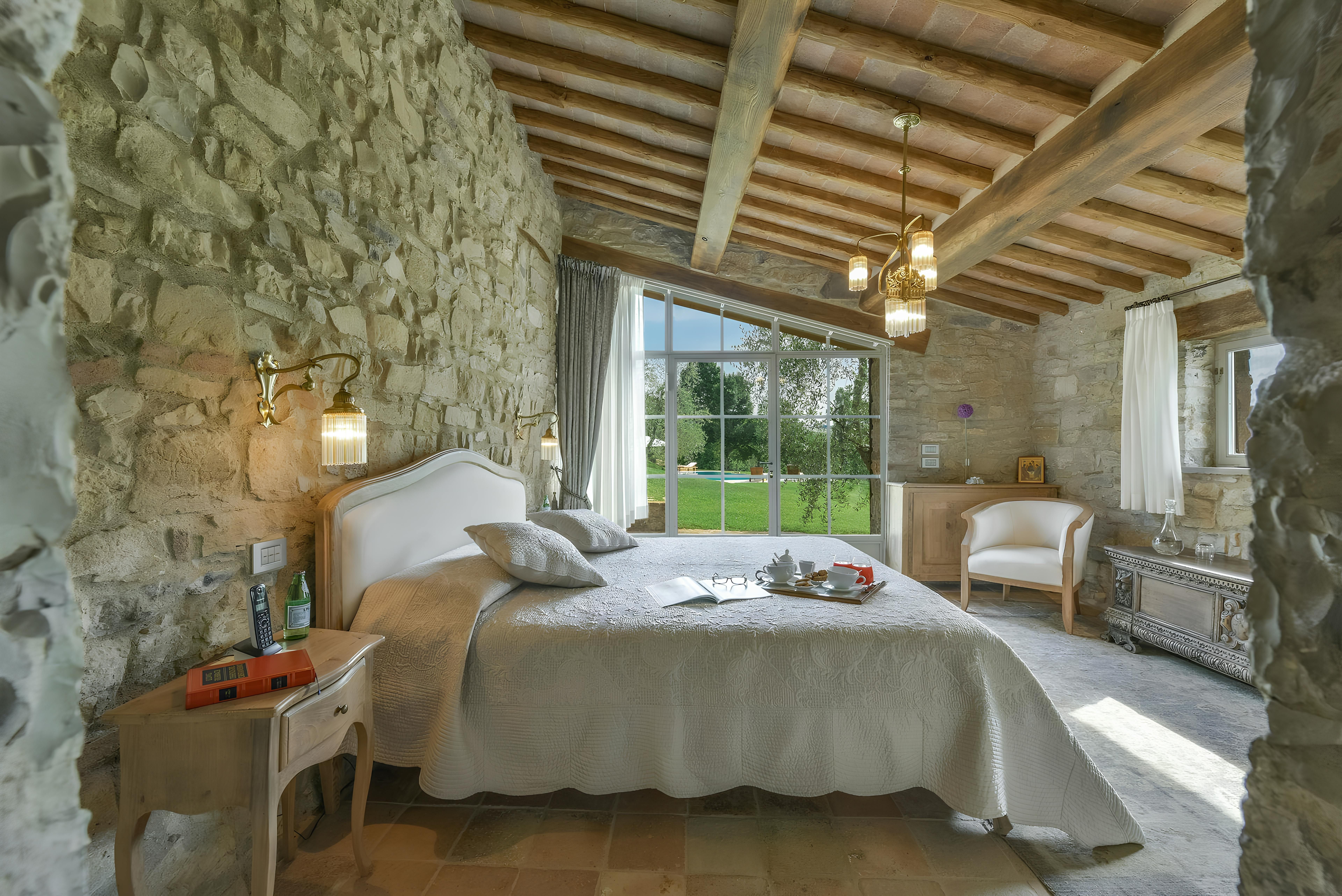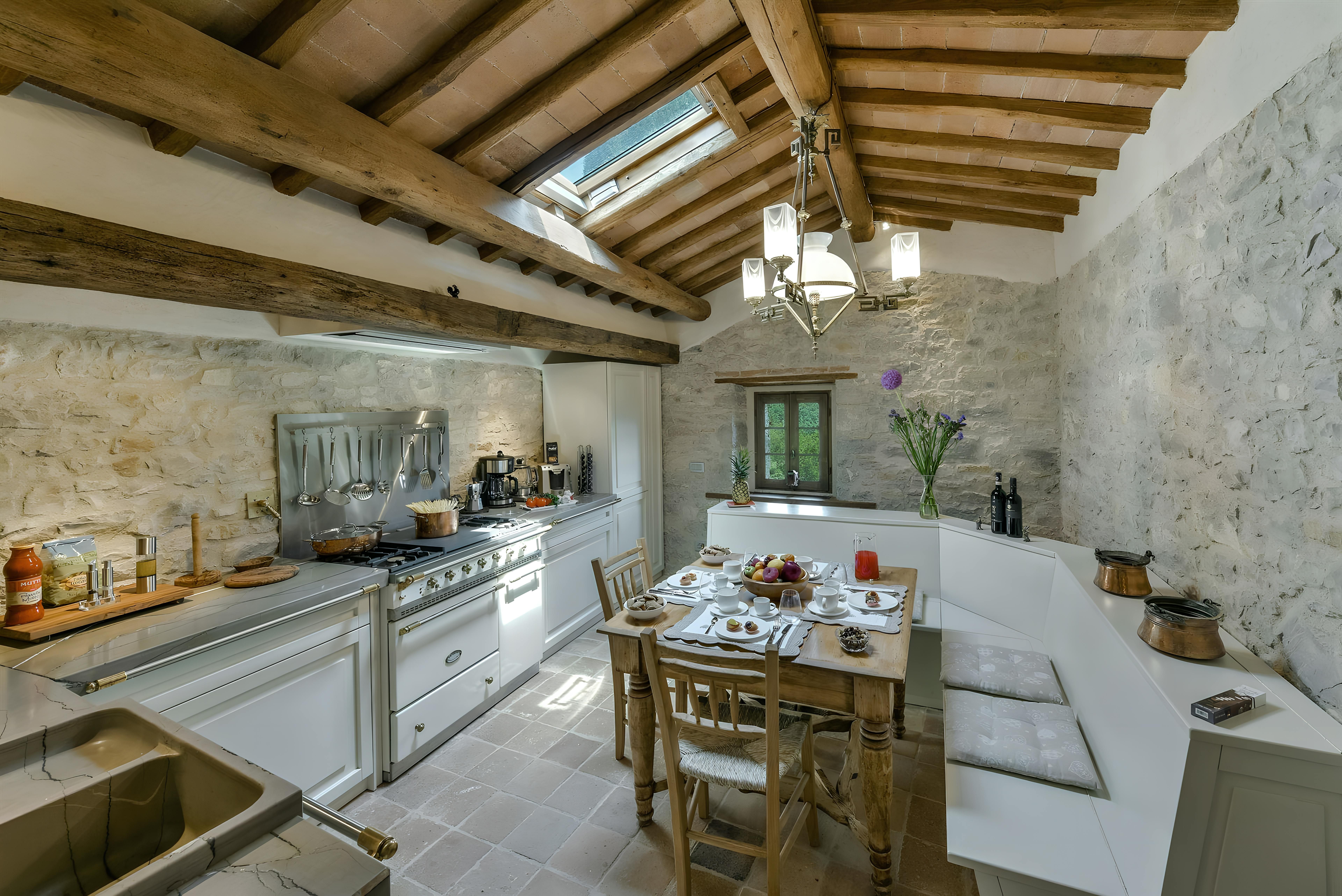 Perched on the slopes of the Chianti hills, this stone villa effortlessly blends traditional Tuscan farmhouse charm with modern comforts. Since children under six aren’t permitted here, this villa is a perfect spot for a group seeking a retreat amongst sprawling gardens. There’s a separate cottage for guests seeking a little extra privacy, while the outdoor terrace is perfect for sharing Tuscan dishes all together (your host even produces their own olive oil and wine). Located near the village of Radda in Chianti, you’re perfectly placed for hiking the Tuscan hills or visiting one of the many vineyards that the region is known for.