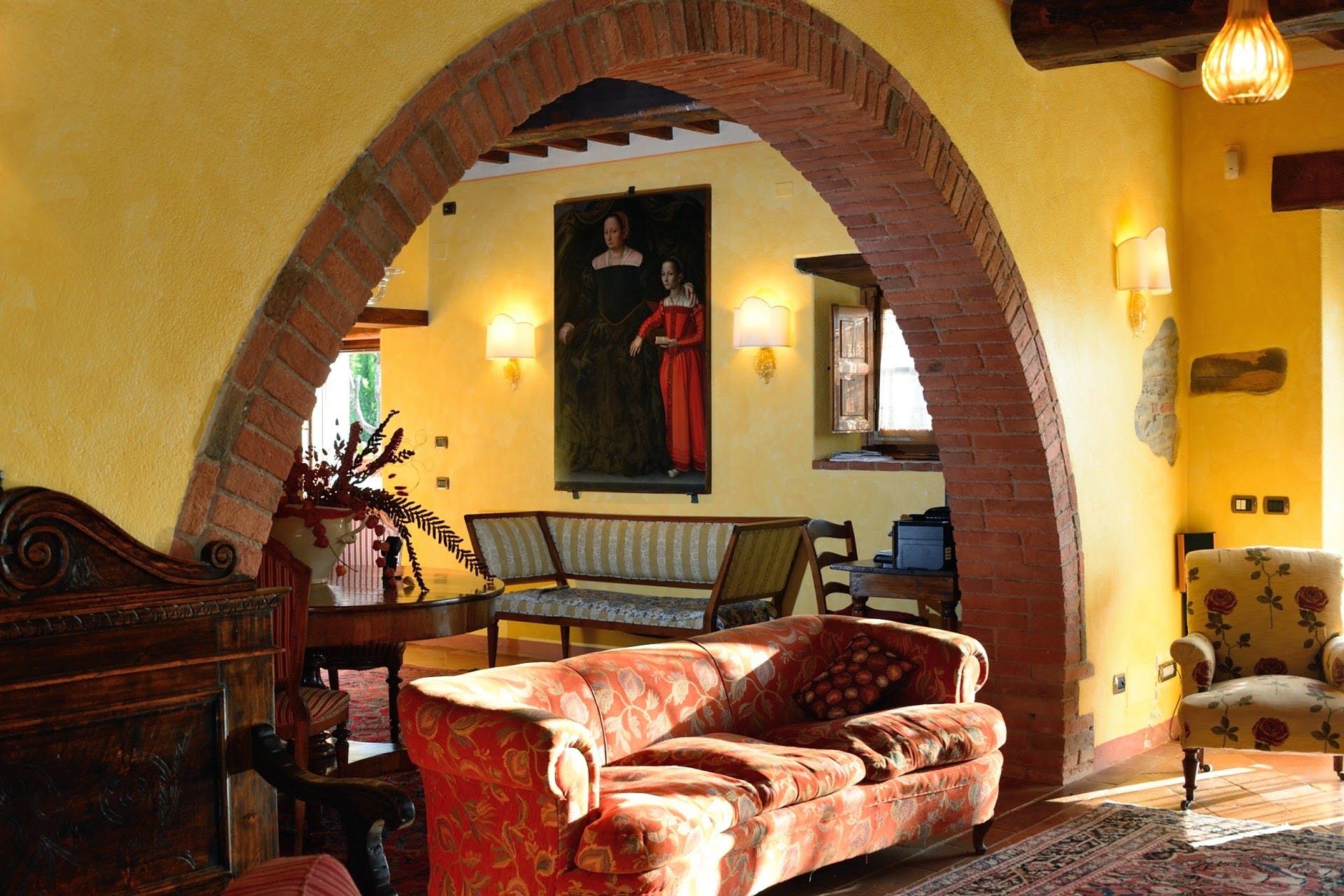 You’ll wake up under an authentic wood-beamed ceiling in one of the elegant bedrooms. Making your way downstairs, past antique paintings and a grandfather clock, you’ll enter the dining and living space. As in any Italian home, this is the heart – you’ll likely spend hours sitting around the dining table.