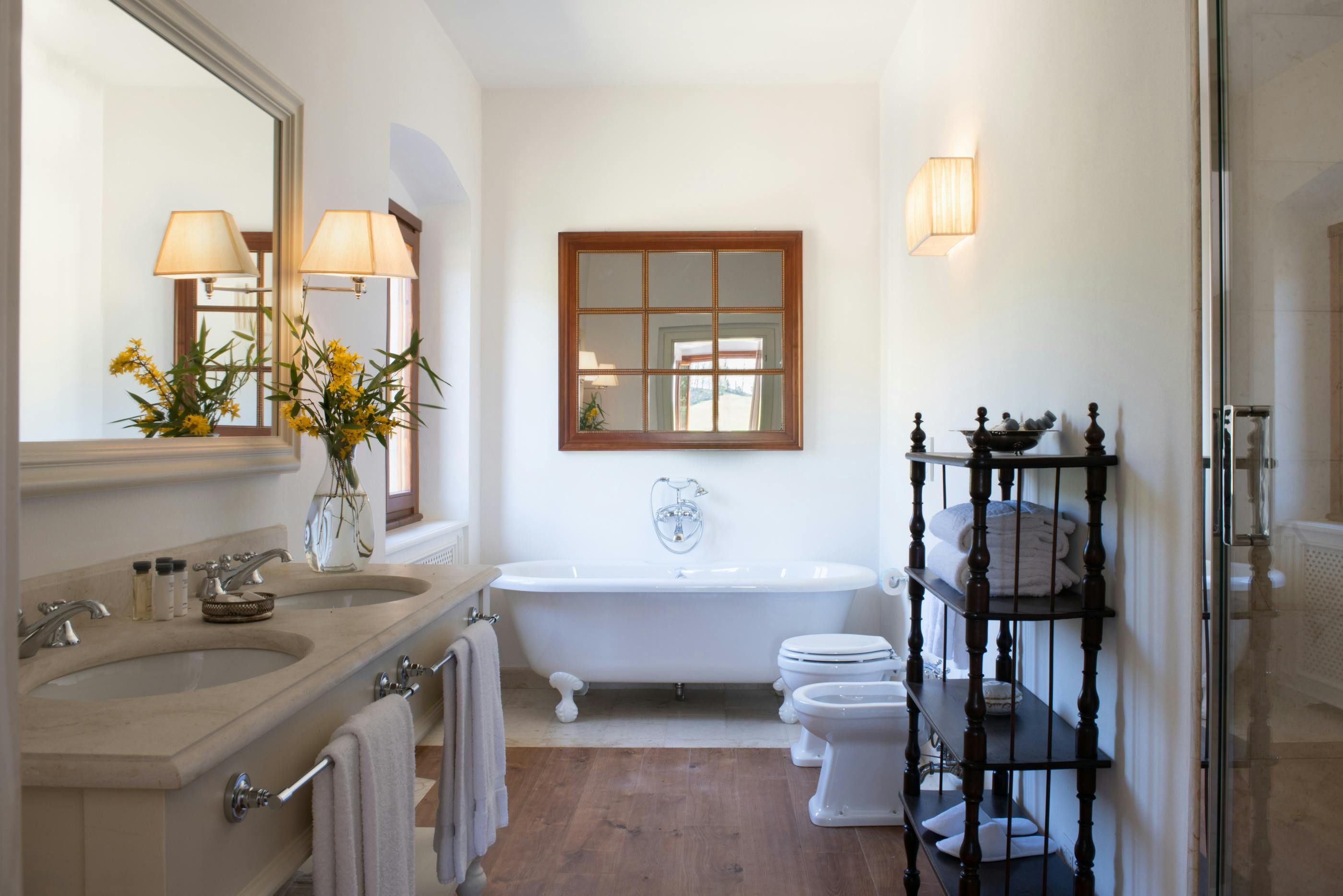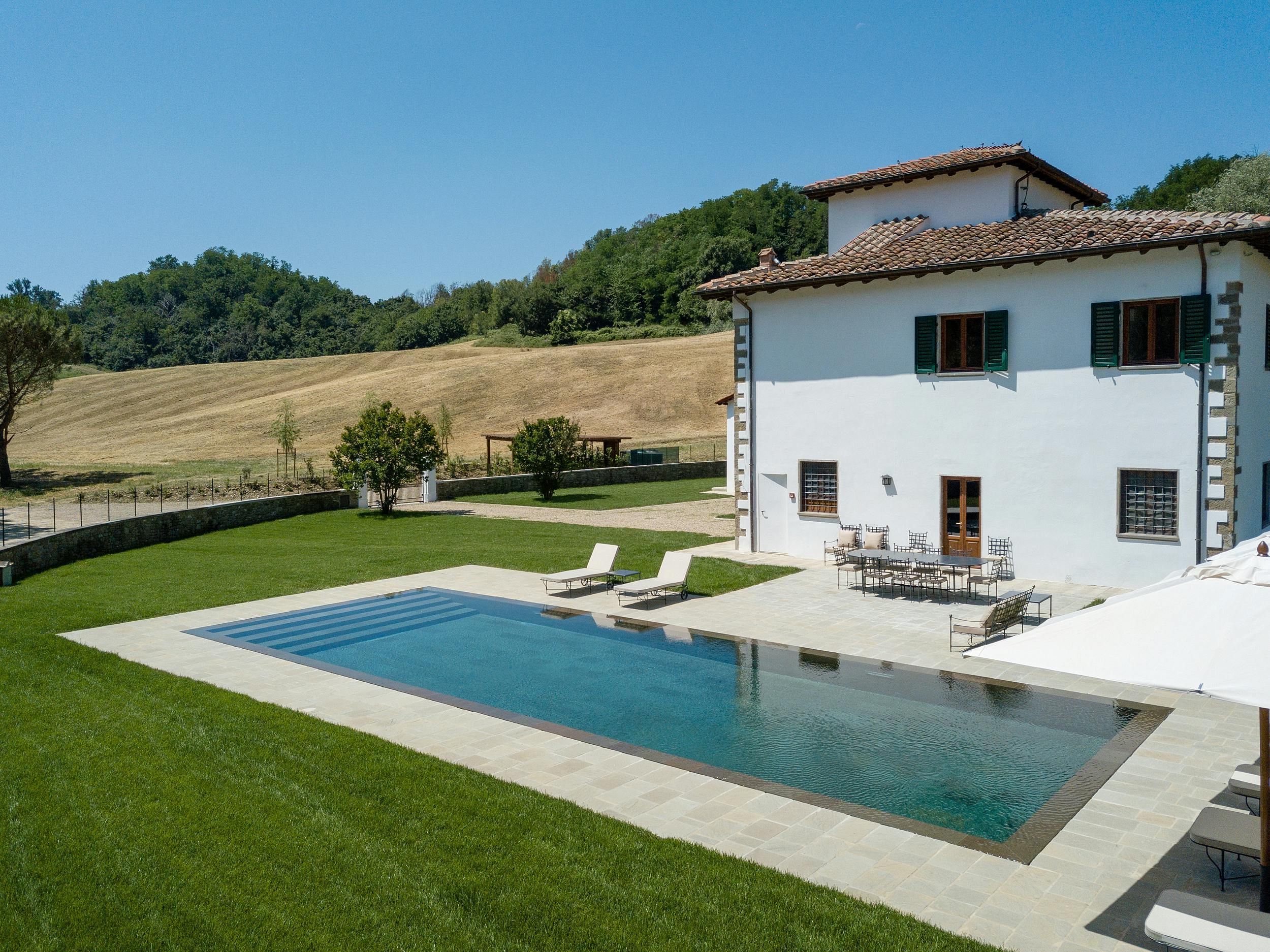 Timeless Tuscan charm comes to life in this countryside retreat. Surrounded by rolling hills and ancient oak groves, this is the perfect setting to switch off and embrace total relaxation. There’s a private pool for refreshing swims and a terrace for drinks and alfresco dining. The rooms are equally inviting with elegant design details throughout. All of the bedrooms come with en-suite bathrooms for optimum privacy and there are a range of extra services available – including in-villa massages and private chefs. You will need a car to get around here, but it’s just a short drive to Figline Valdarno, while Florence is also within easy driving distance.