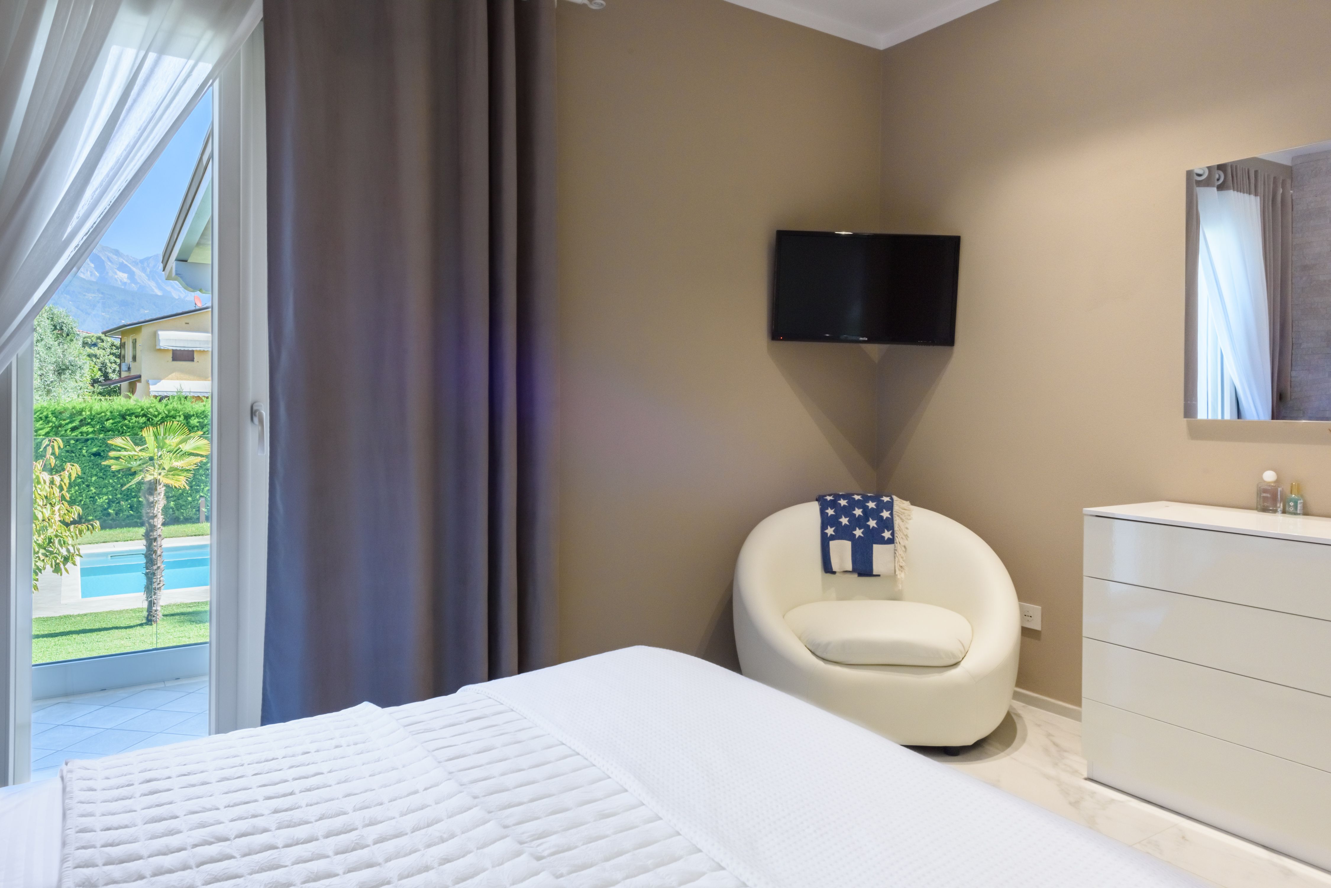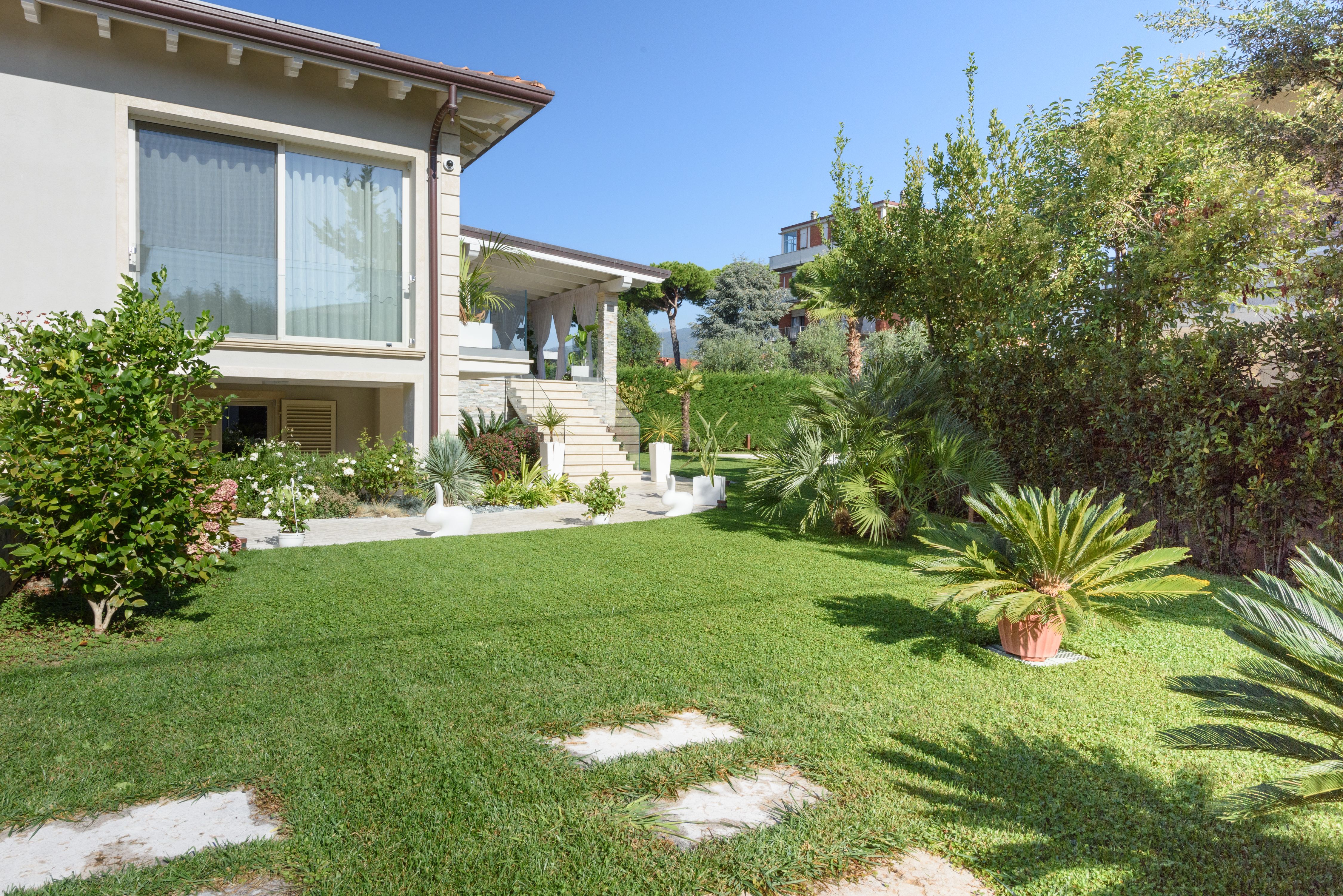 Just a short drive from the beach, this home is ideally placed for a relaxing coastal escape. There’s a private pool for refreshing dips and a terrace with a barbecue for alfresco dining. It’s worth noting the house is divided into two apartments (connected via external stairs), so you’ll have two kitchens and two living rooms – making this a great option for groups looking to stretch out and spend quality time together. Private parking is available and you can rent bikes nearby. It’s also just a short walk to the nearest supermarket and restaurant. And when it comes to explorations further afield, Forte dei Marmi is less than ten-minutes away by car, while Lucca and Pisa are less than an hour’s drive away.