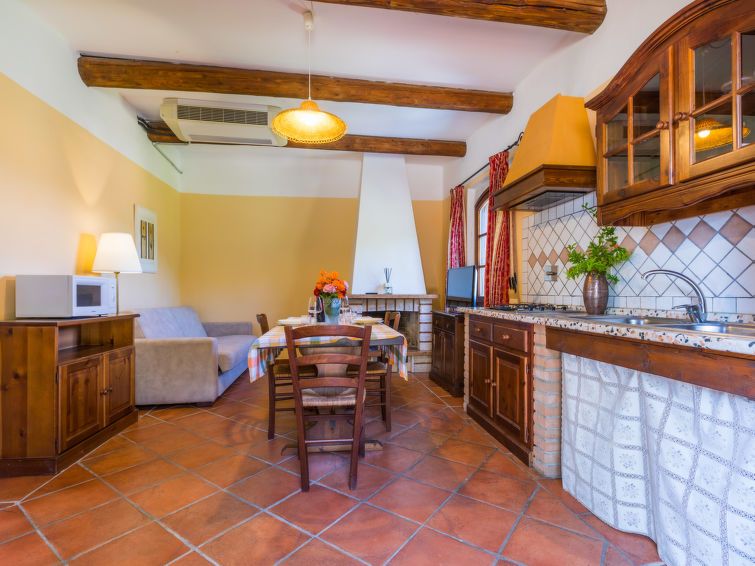 "Daino", 2-room apartment 40 m2, on the ground floor. Simple and rustic furnishings: living/sleeping room with 1 sofabed, 1 pull-out bed, dining table and satellite TV. 1 room with 1 double bed (160 cm). Open kitchen (4 gas rings, microwave, electric coffee machine) with open-hearth fireplace (only for decoration).