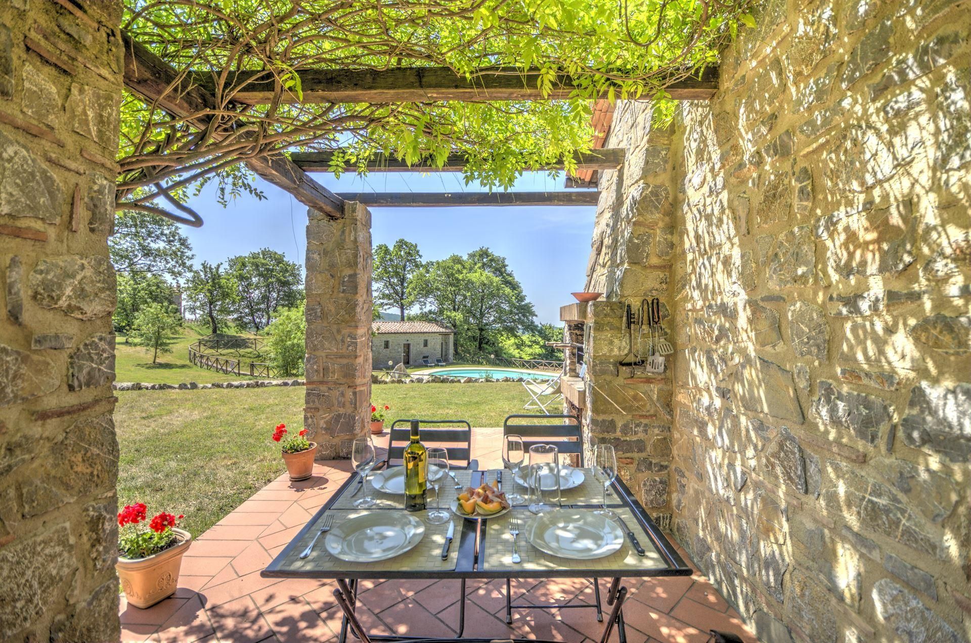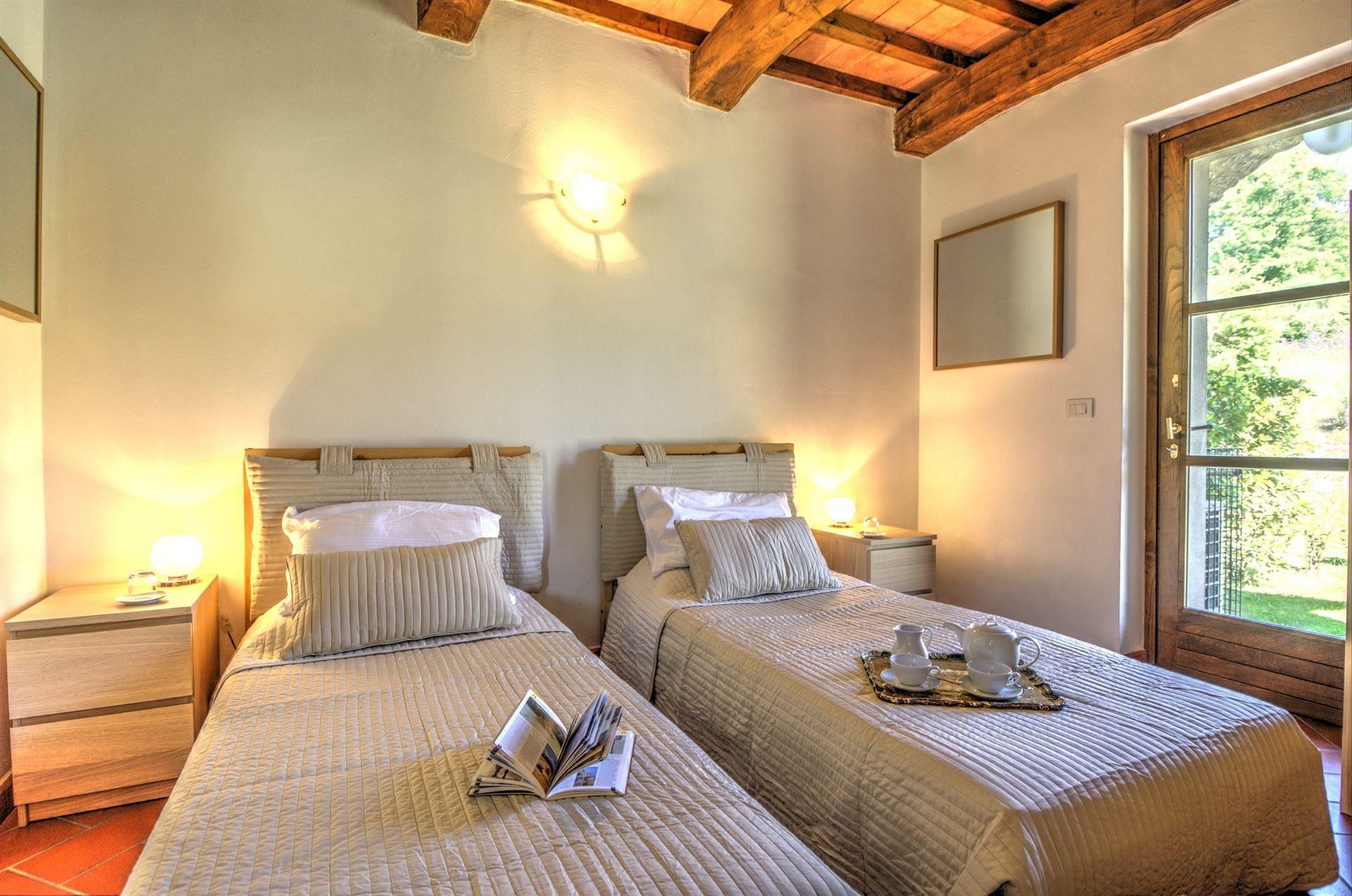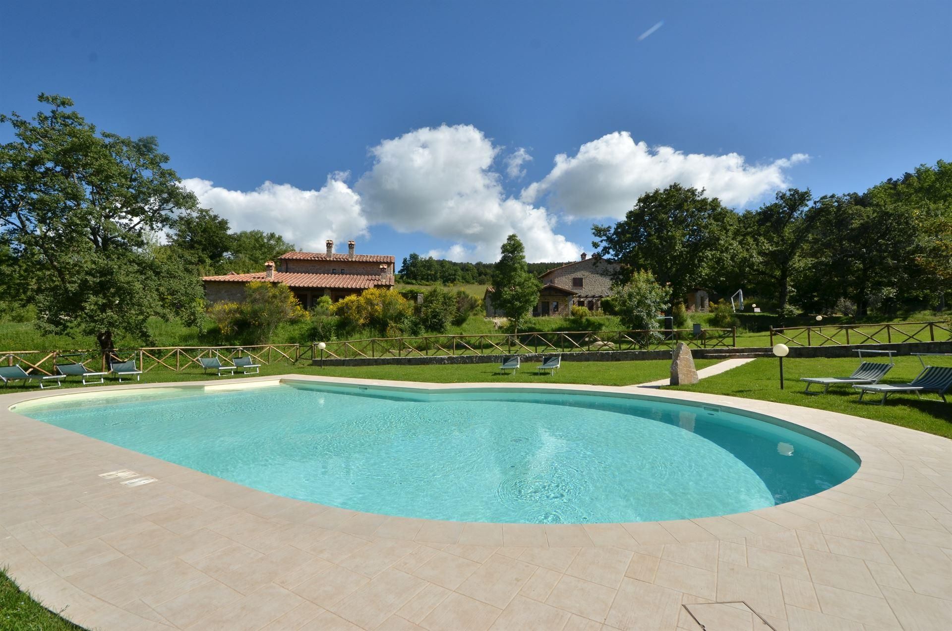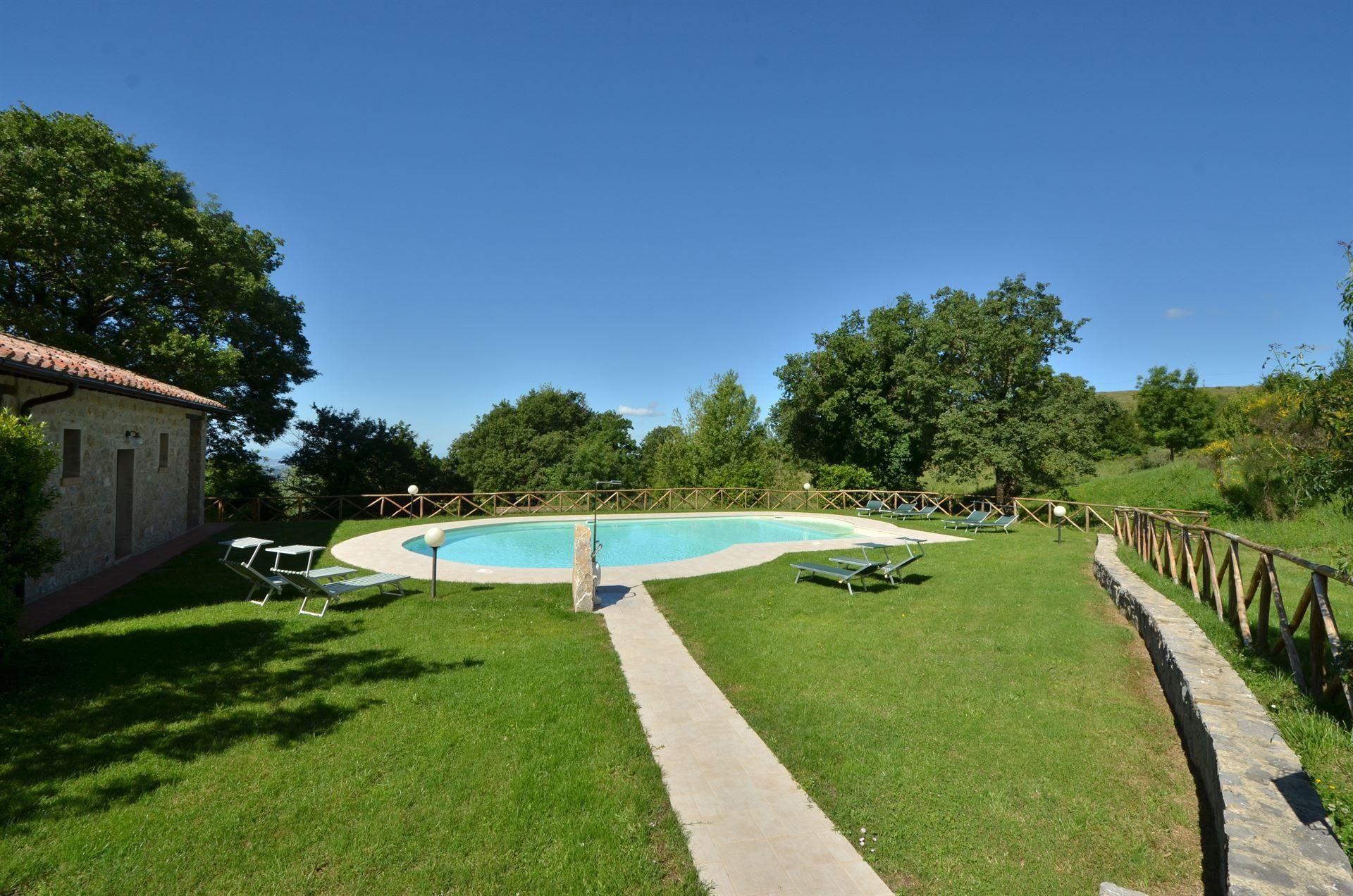 You can relax on this semi-detached villa’s private terrace overlooking the shared pool – there’s also a furnished loggia for when you want some shade. Inside, the interiors are classically Tuscan, with terracotta floors and wooden beams. Both bedrooms have views over the communal grounds and countryside. When you feel like exploring, there are plenty of hills and forests to go hiking in, or visit charming towns and villages such as Roccalbegna, 6 kilometres away. Alternatively, you can head to the spa town of Saturnia with its Etruscan ruins, hot springs and a piazza lined with restaurants.