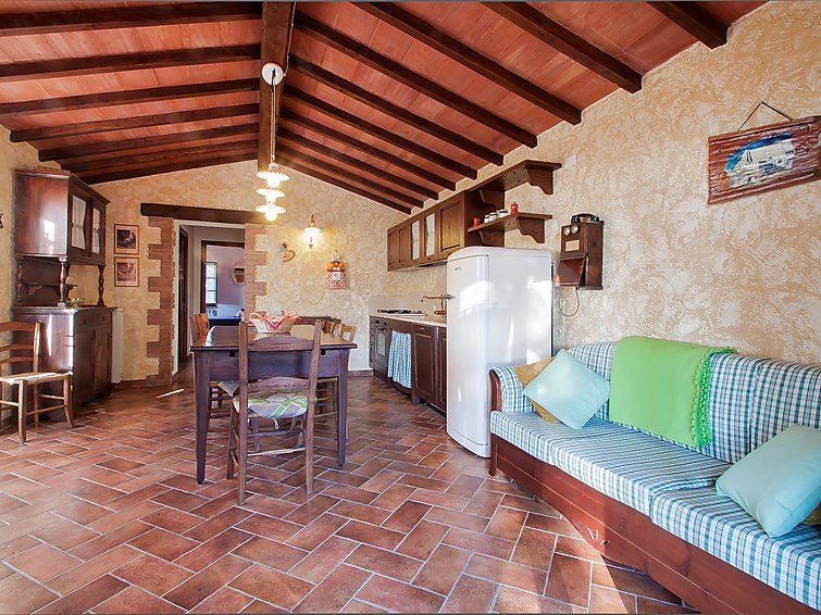 "Poggiolo", 3-room house 55 m2, on the ground floor. Rustic and cosy furnishings: living/dining room with 1 sofabed, satellite TV and air conditioning. Exit to the garden. 1 double bedroom with air conditioning. Exit to the garden. 1 small room with 1 bed and 1 pull-out bed. Kitchenette (oven, dishwasher, toaster, microwave, electric coffee machine).