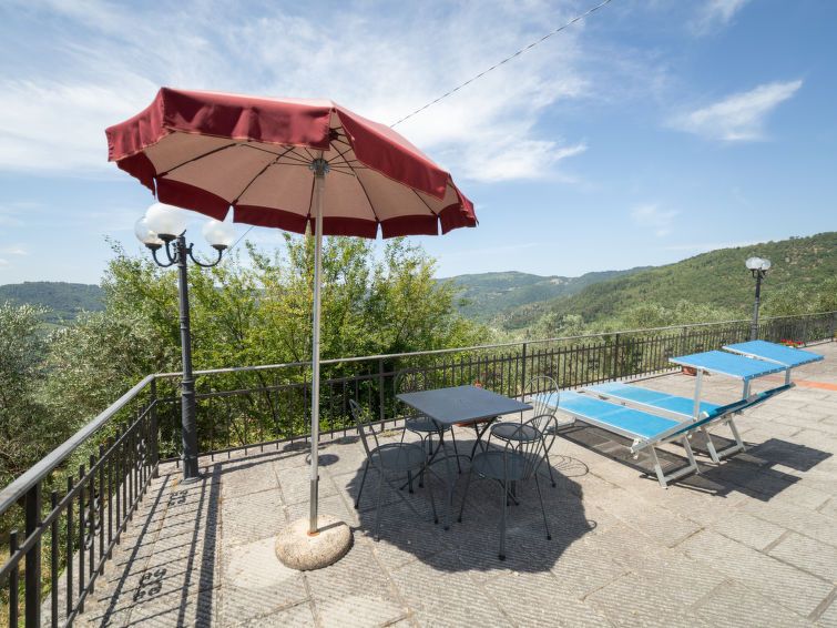 "Contadino", 2-room apartment 37 m2. Rustic and cosy furnishings: living/dining room with 1 double sofabed and TV. 1 double bedroom with air conditioning. Kitchenette (4 hot plates, toaster, kettle, microwave, freezer). Shower/bidet/WC. Terrace furniture. Very beautiful view of the countryside.