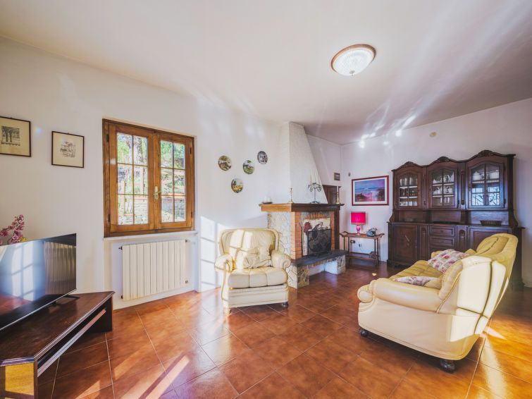 3-room house 80 m2. Beautiful and cosy furnishings: open living room with open-hearth fireplace (only for decoration), dining table, TV and flat screen. Exit to the terrace. Kitchenette (oven, 4 gas rings, toaster, microwave, electric coffee machine). Shower/bidet/WC. No heating option.