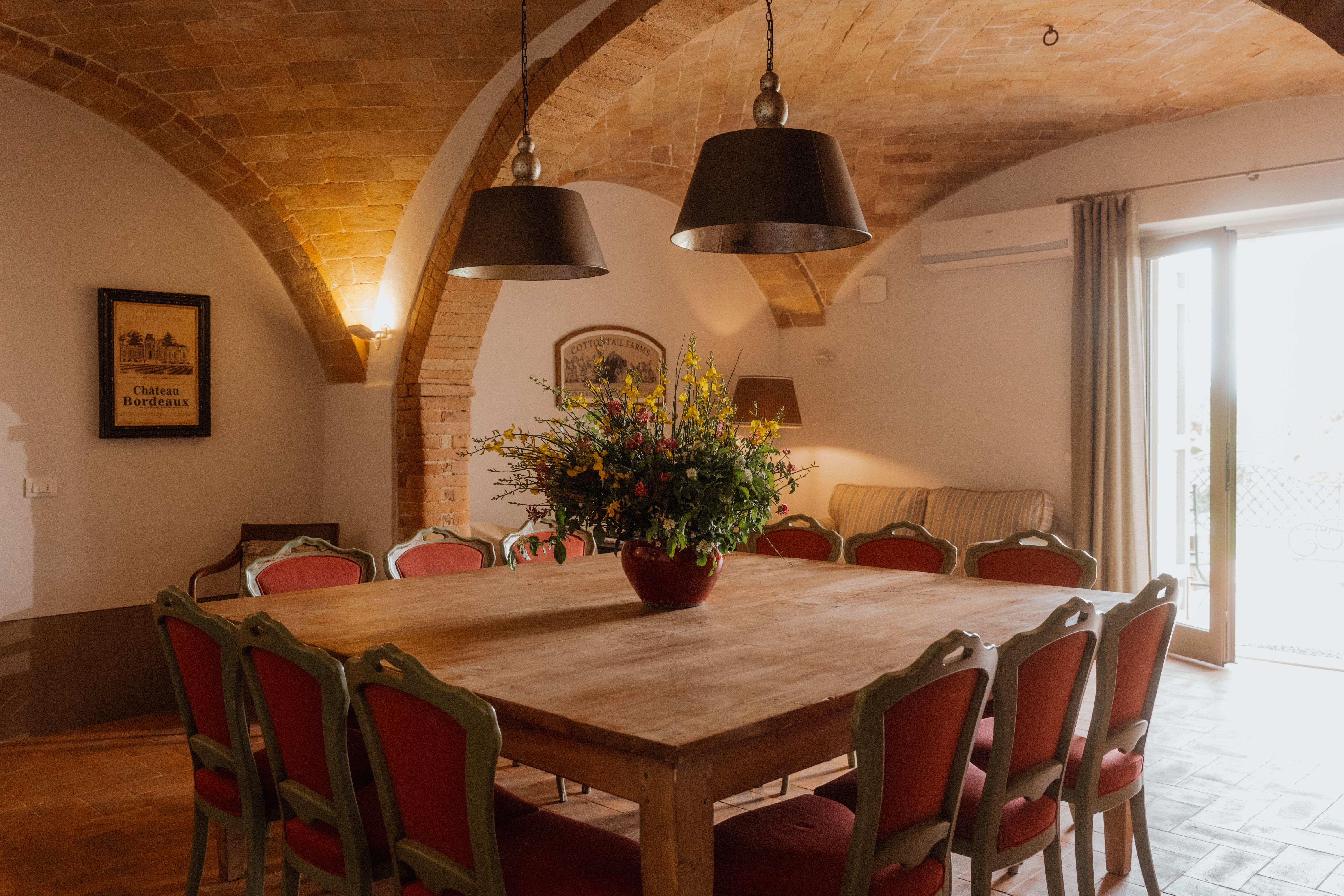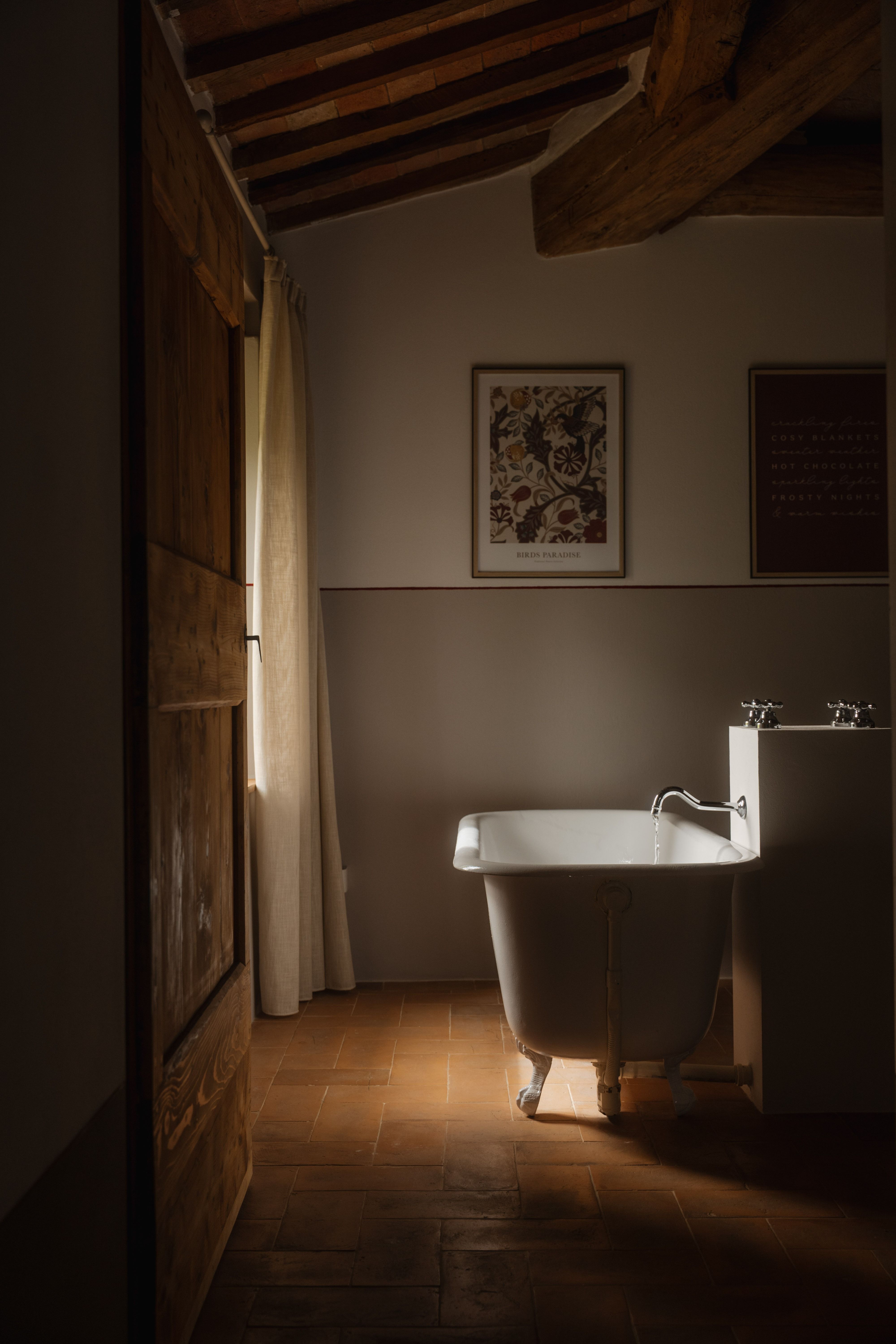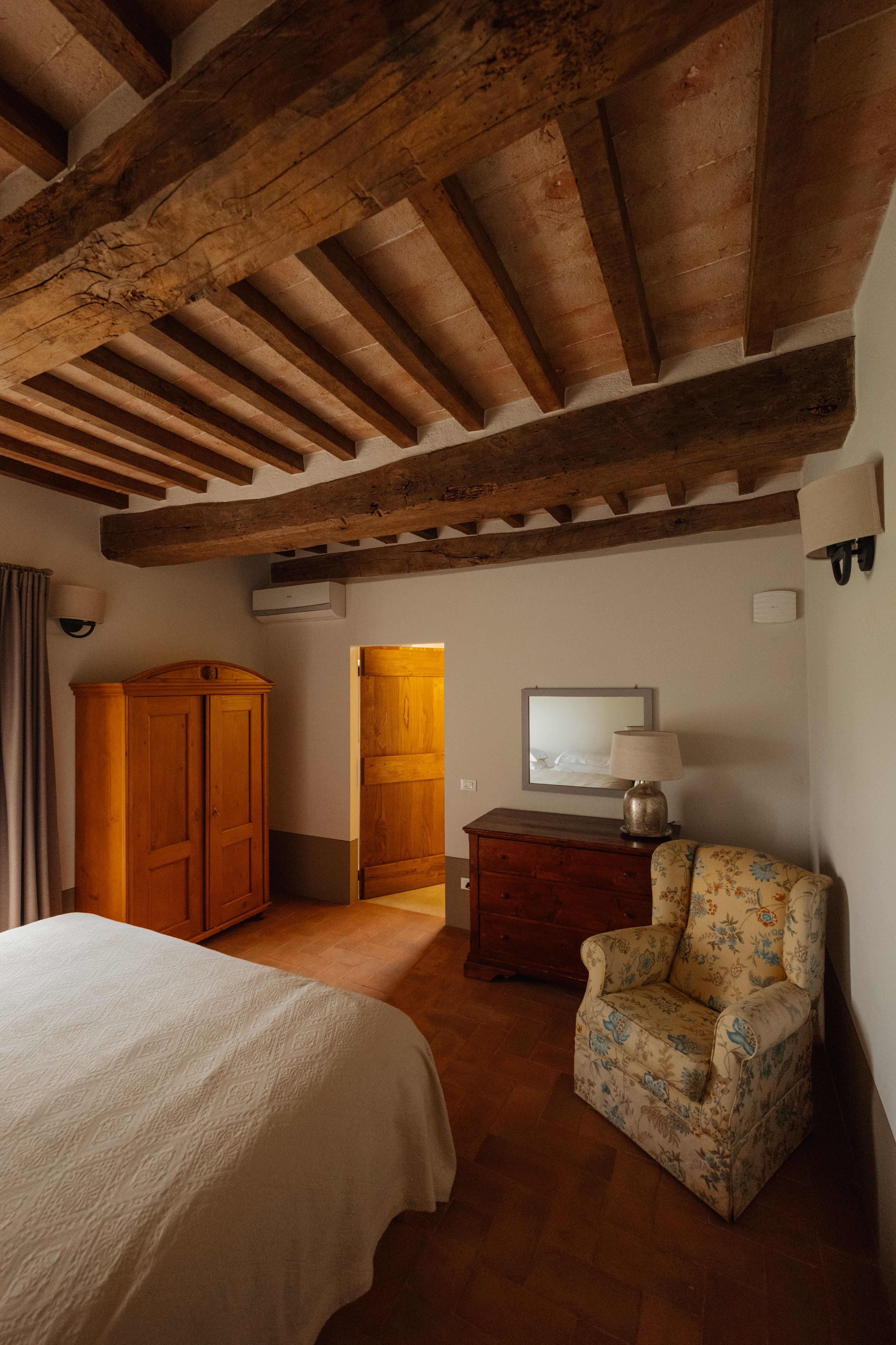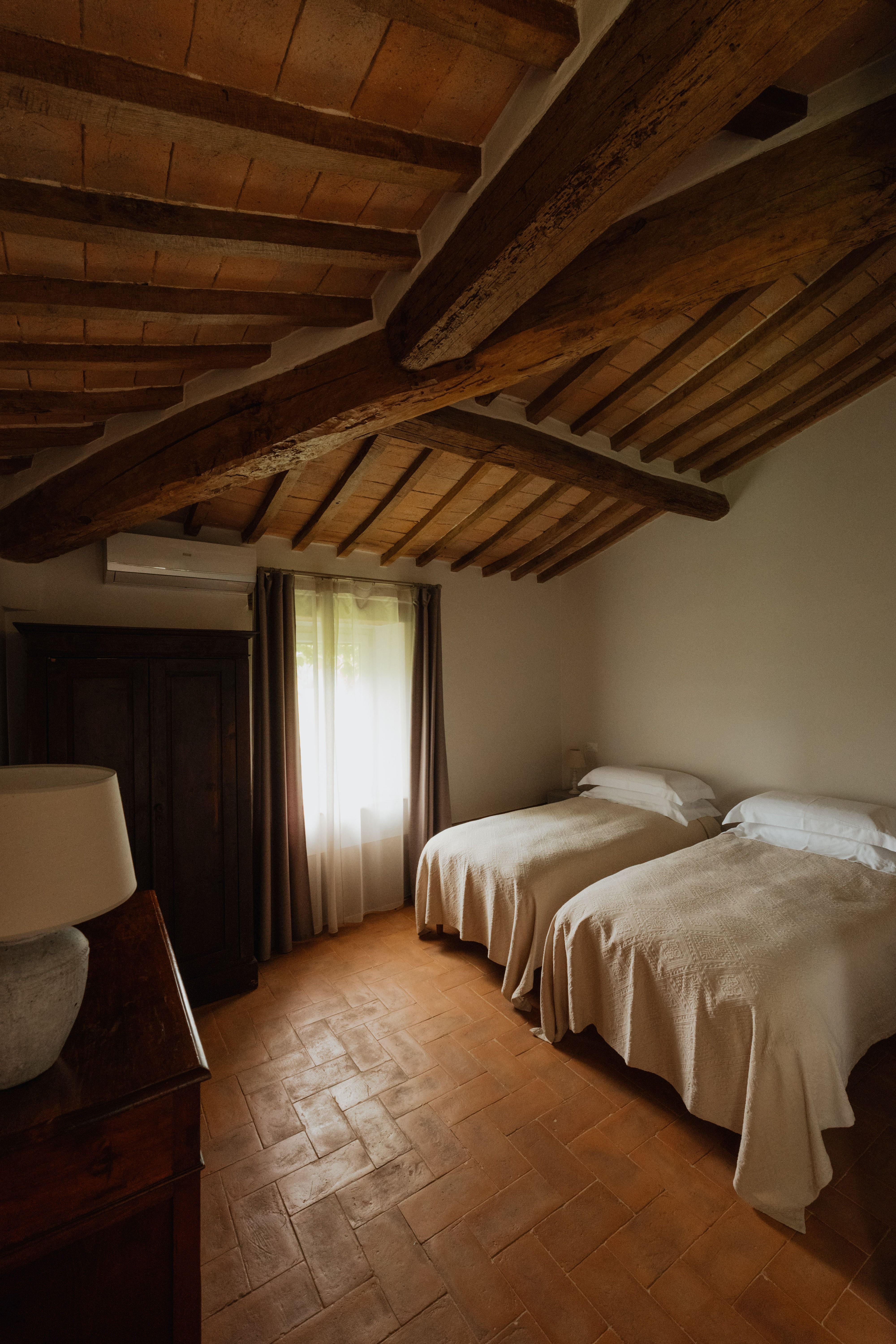 A private sauna, yoga studio, and natural thermal bath make this ivy-clad farmhouse feel like your own secluded spa retreat. The vibe is country chic, with vaulted stone ceilings, exposed beams, an open hearth, and rustic brick walls. The main house has five bedrooms, plus an additional room in the garden annexe, all with windows framing the picture-perfect Tuscan countryside. A short drive takes you to the walled spa town of San Casciano dei Bagni, which dates back to Etruscan times, while further afield Lake Trasimeno and the charming town of Città della Pieve make for dreamy day trips.
