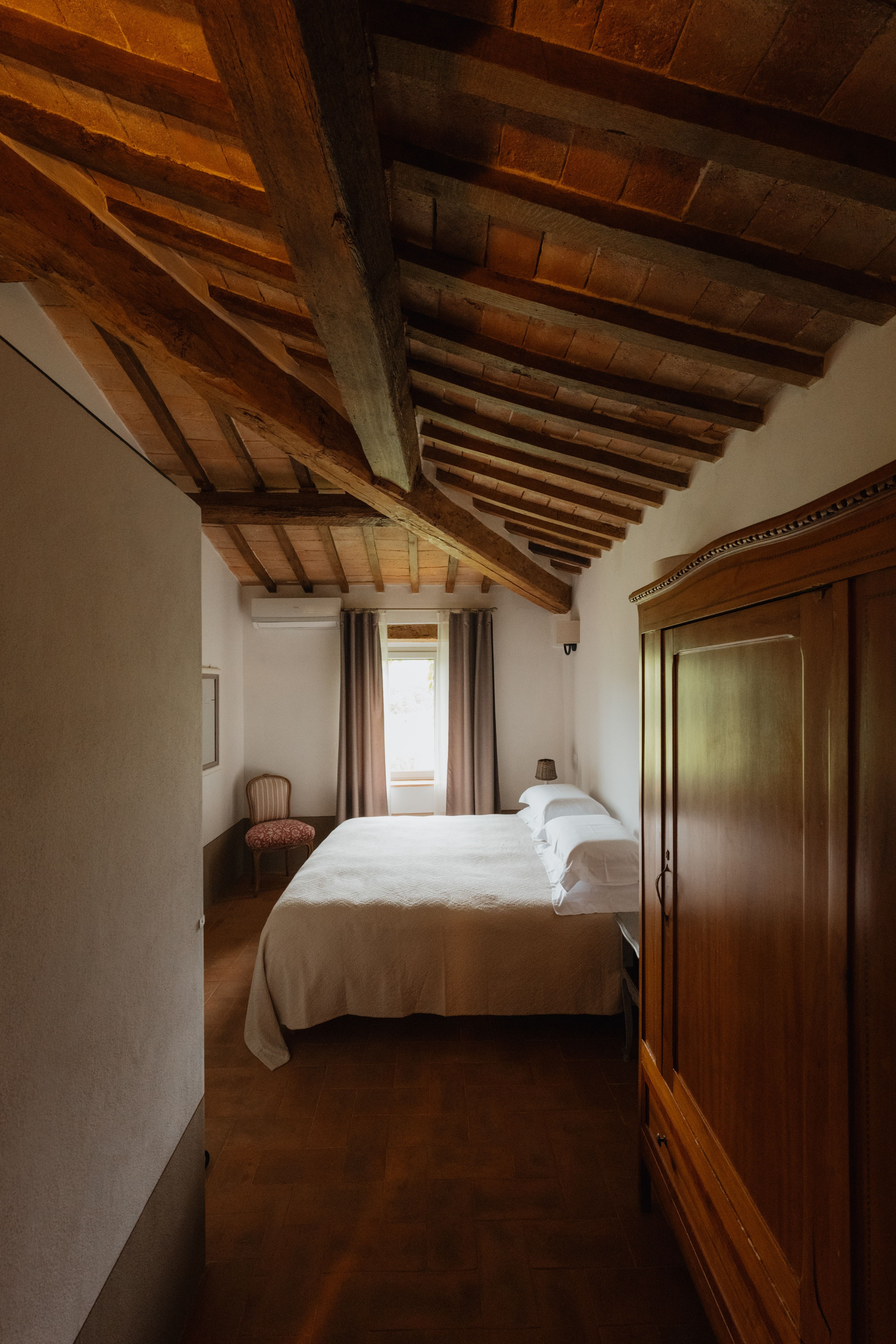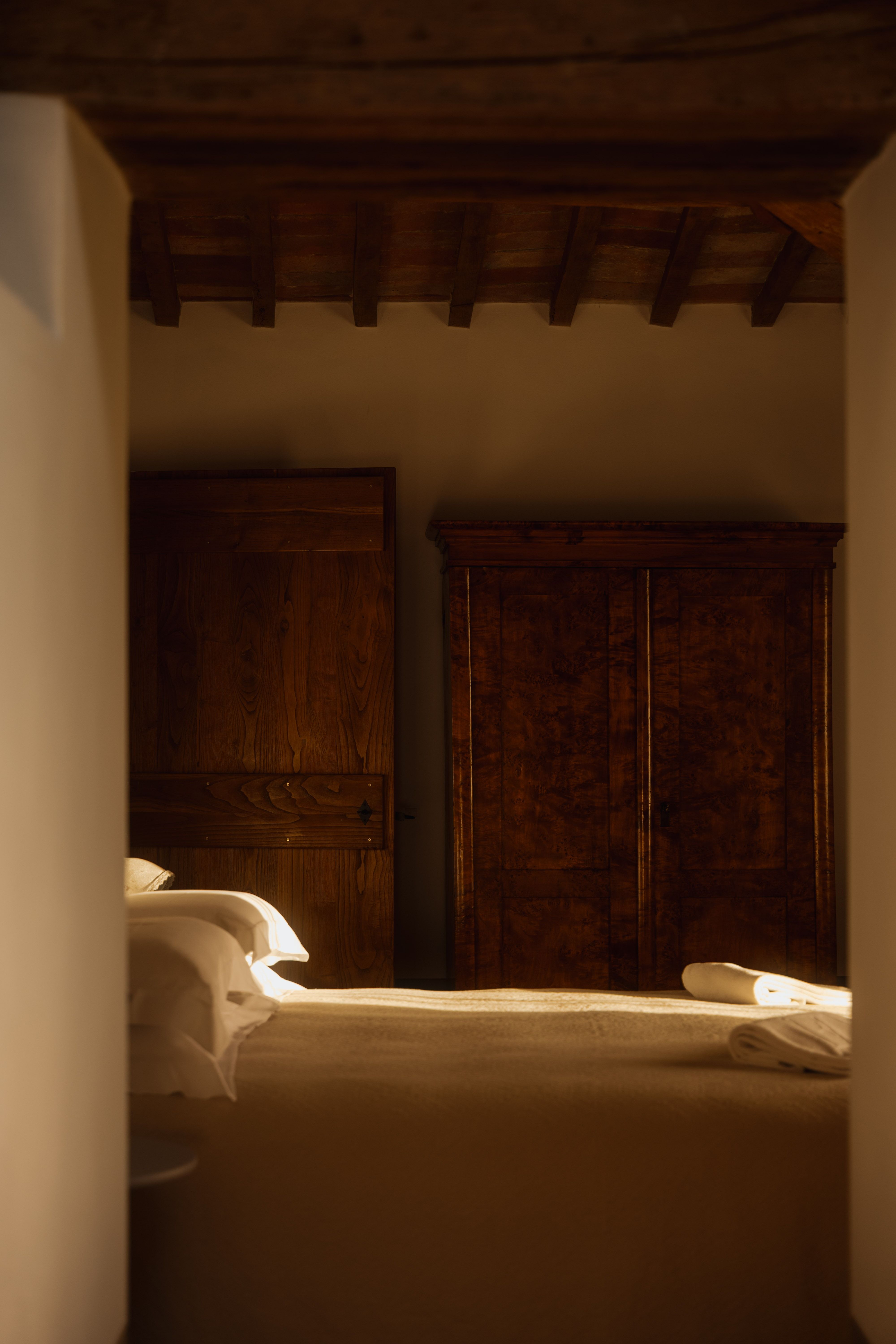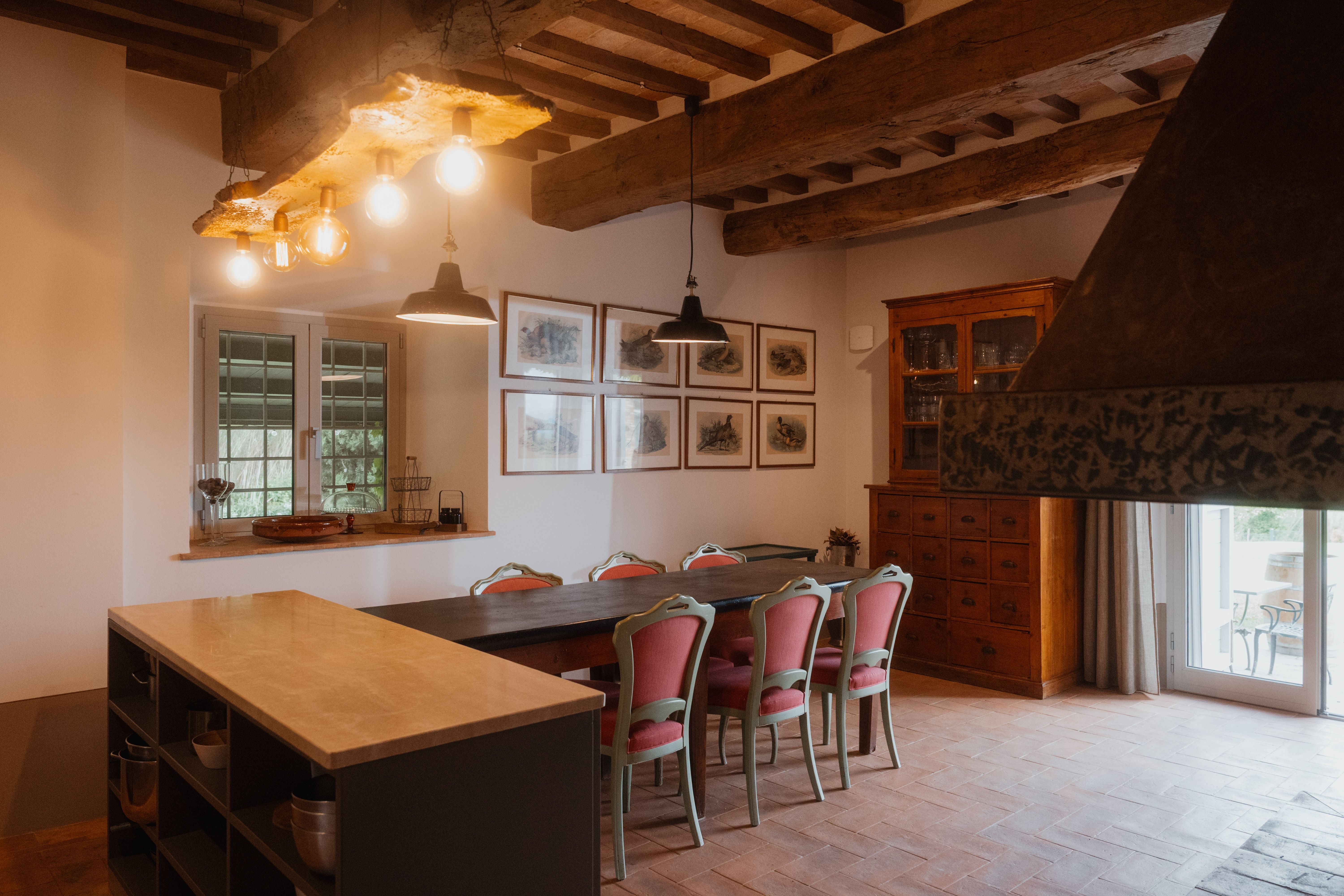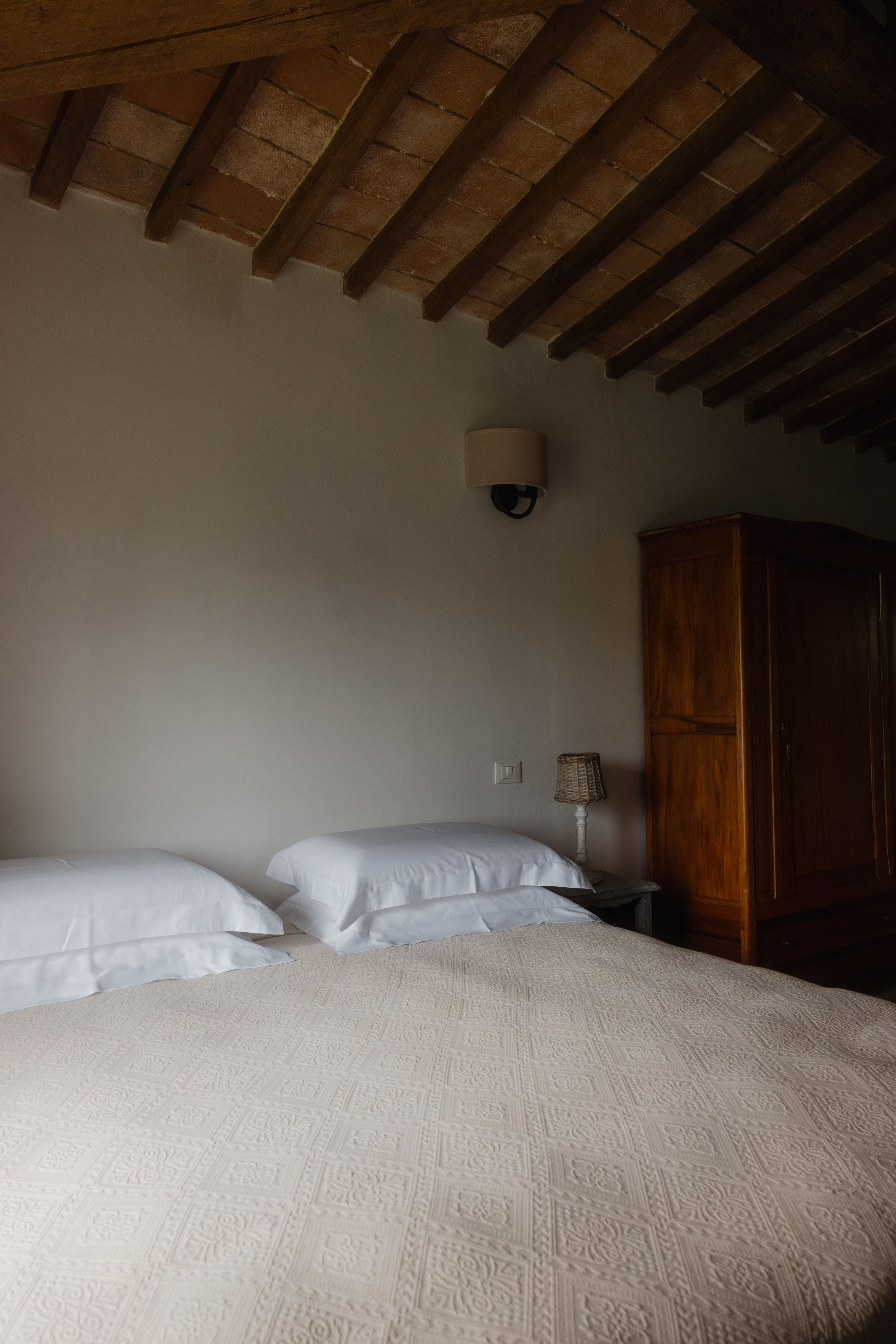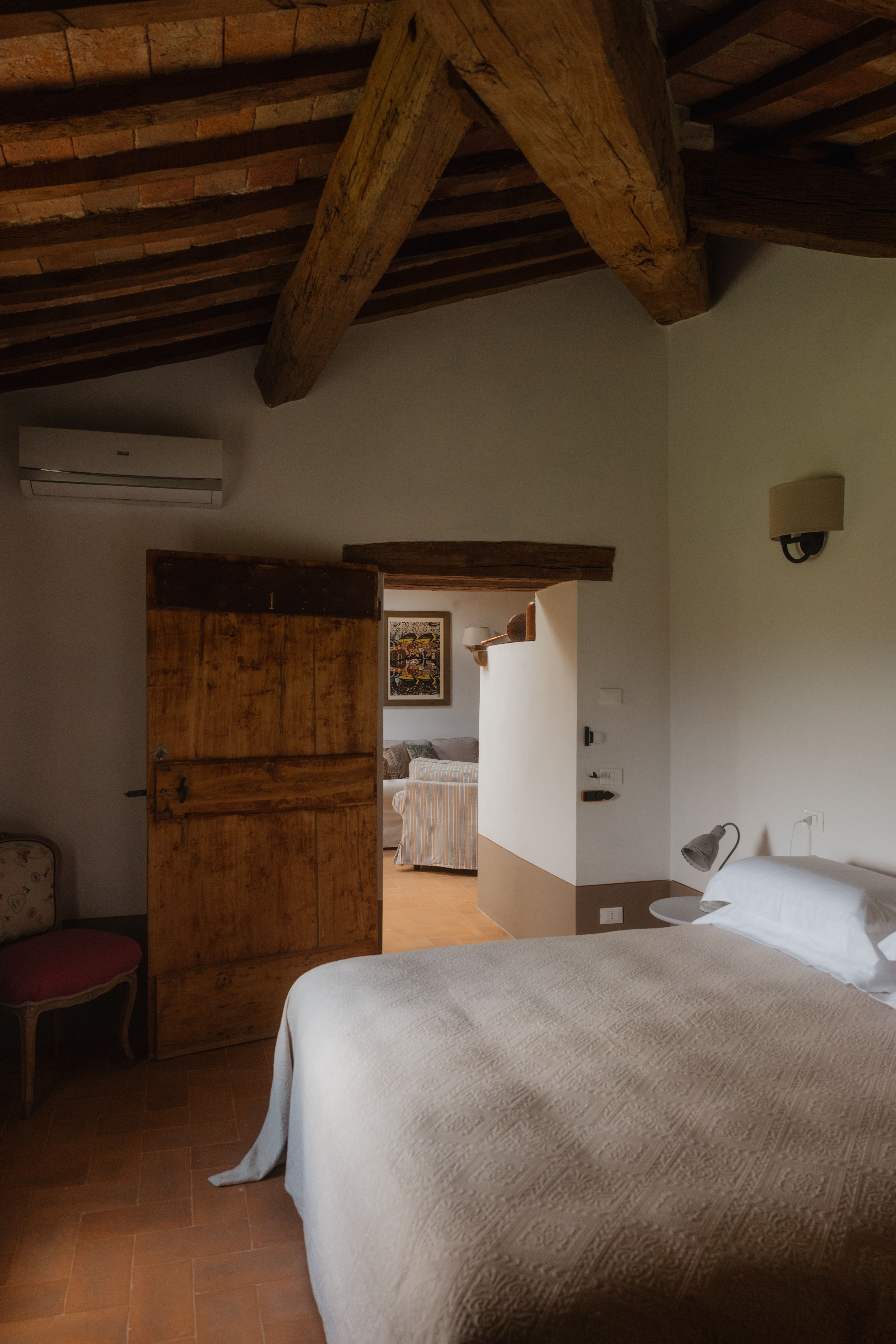 A private sauna, yoga studio, and natural thermal bath make this ivy-clad farmhouse feel like your own secluded spa retreat. The vibe is country chic, with vaulted stone ceilings, exposed beams, an open hearth, and rustic brick walls. The main house has five bedrooms, plus an additional room in the garden annexe, all with windows framing the picture-perfect Tuscan countryside. A short drive takes you to the walled spa town of San Casciano dei Bagni, which dates back to Etruscan times, while further afield Lake Trasimeno and the charming town of Città della Pieve make for dreamy day trips.
