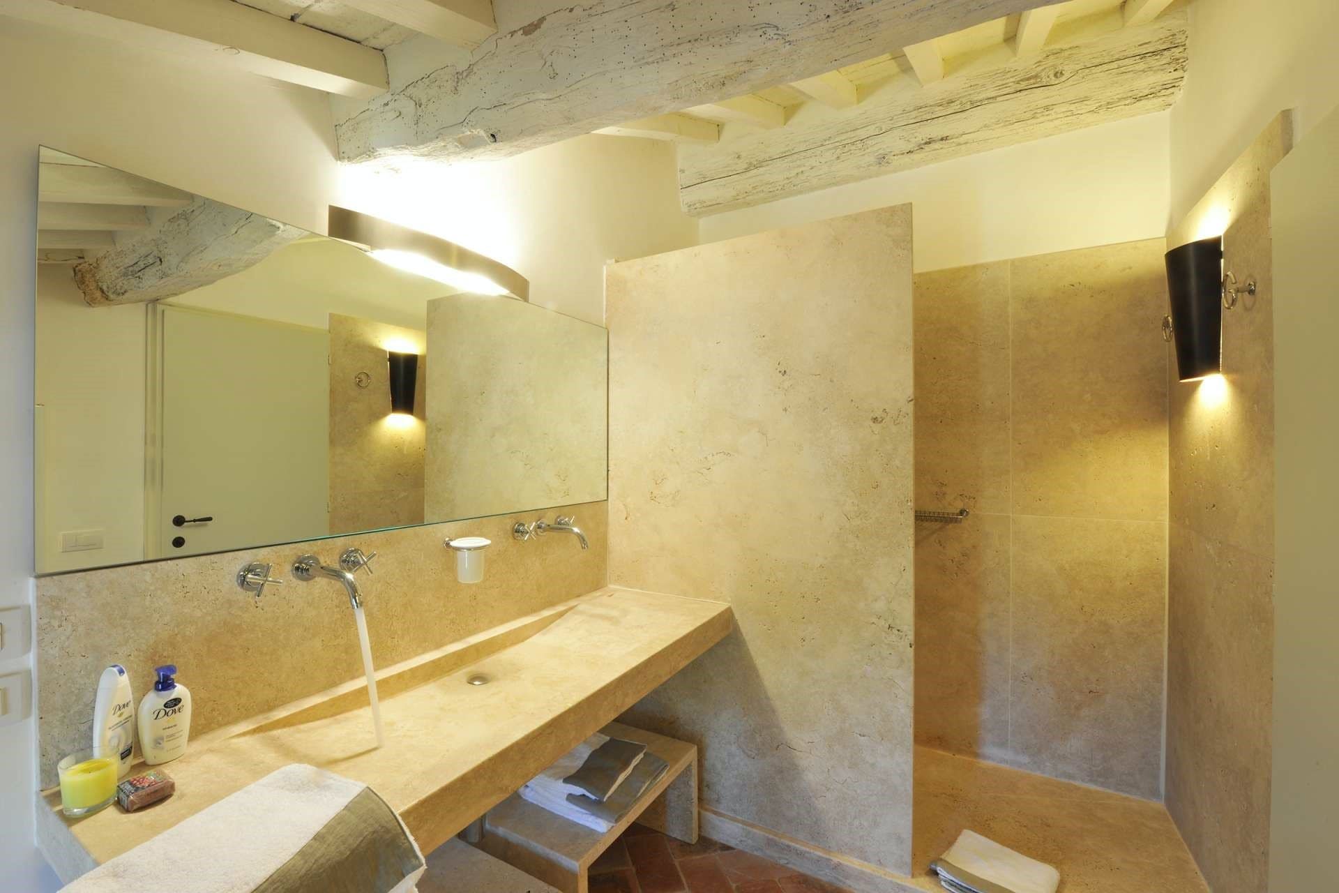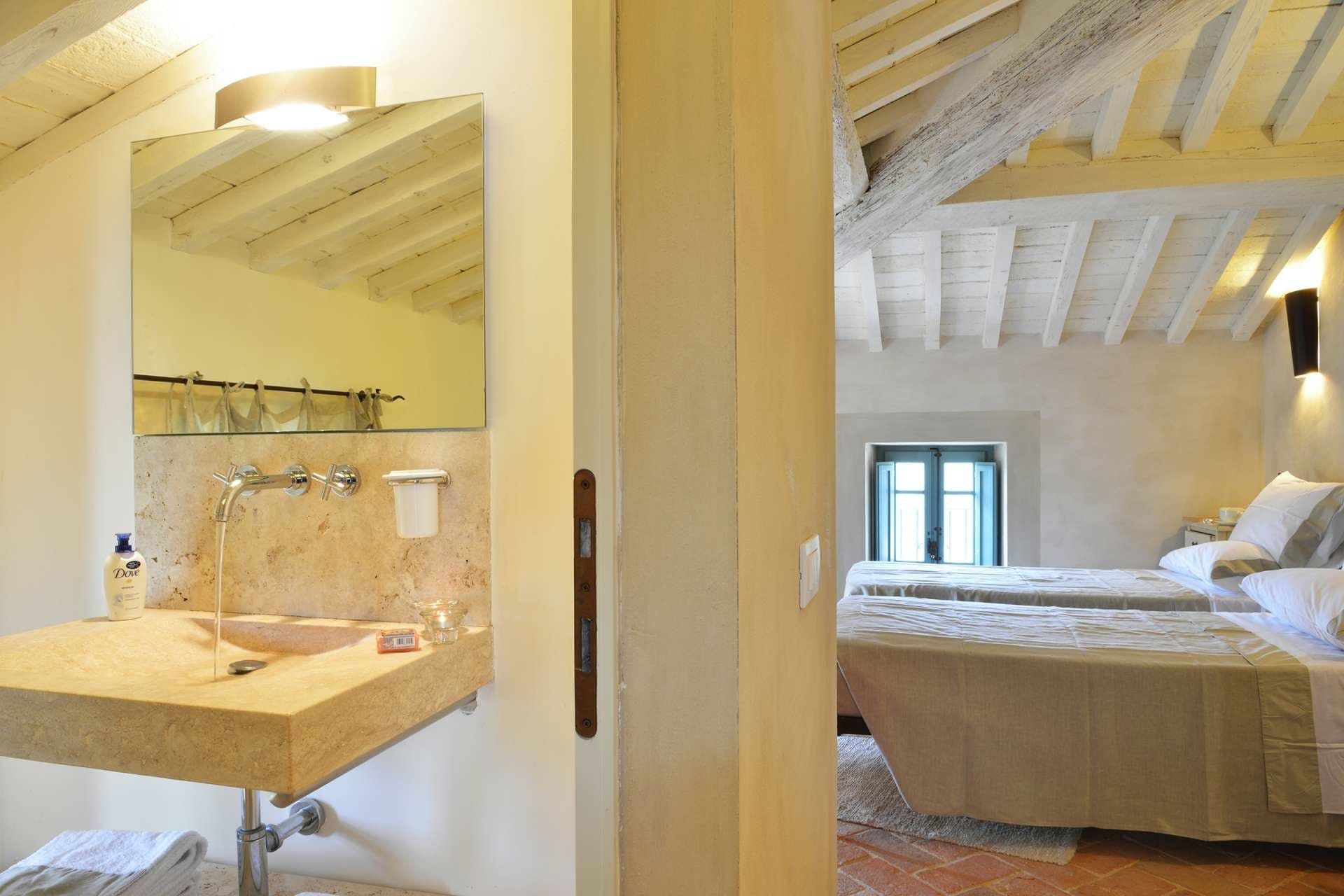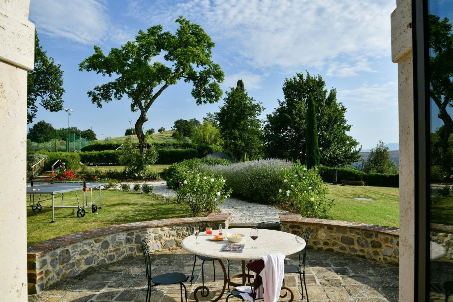 Situated in southern Tuscany, offering sweeping views of the rolling hills and vineyards, this villa is the perfect location for a peaceful holiday. The town of Radicofani is a ten-minute drive away, home to restaurants, shops and supermarkets, while sleepy San Casciano dei Bagni is reached in twenty. The abode features modern amenities including a sauna, private pool, and a tennis court – though the ground is uneven, so it won’t be suitable for serious players. There’s also a covered gazebo for alfresco dining and a comfortable seating area from where you can watch the sunset.