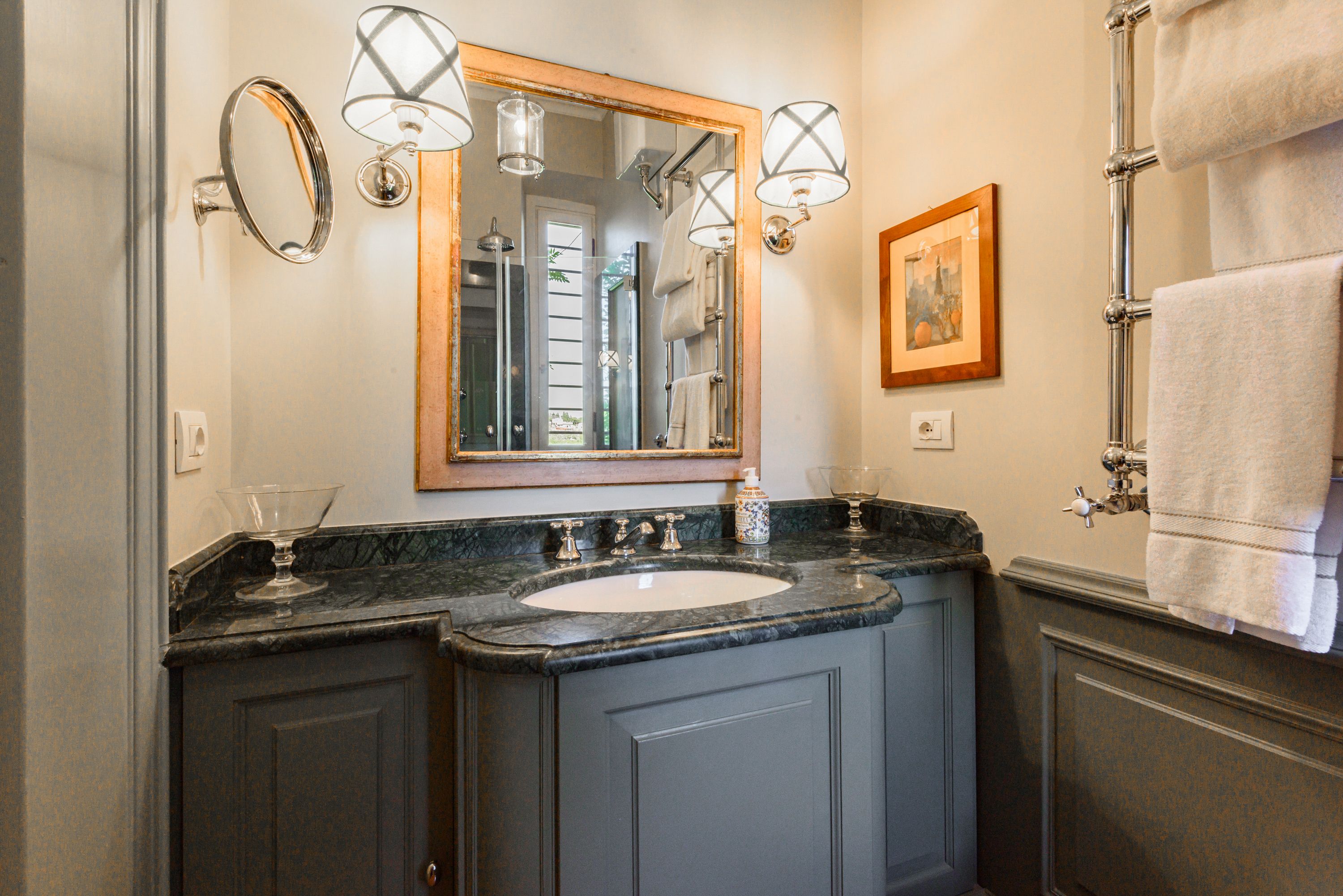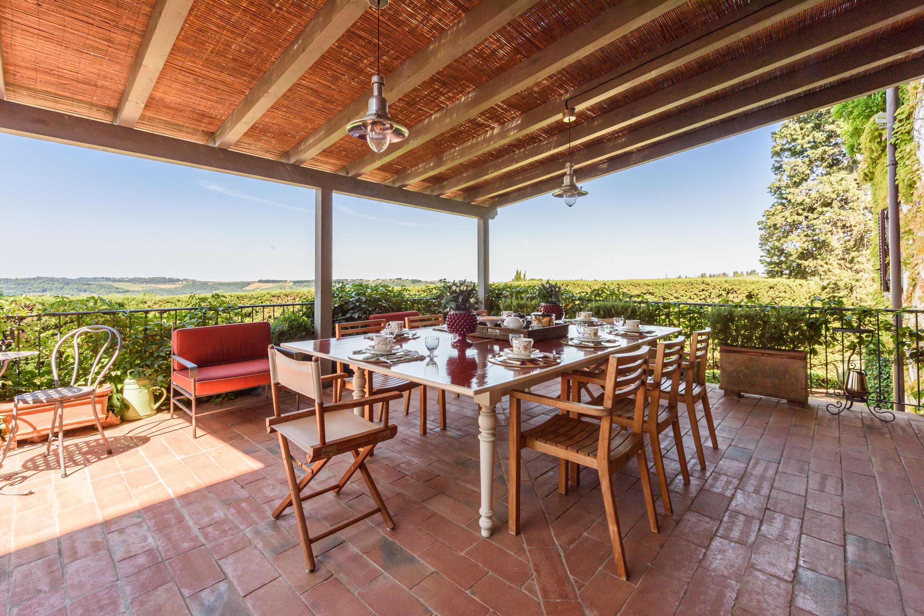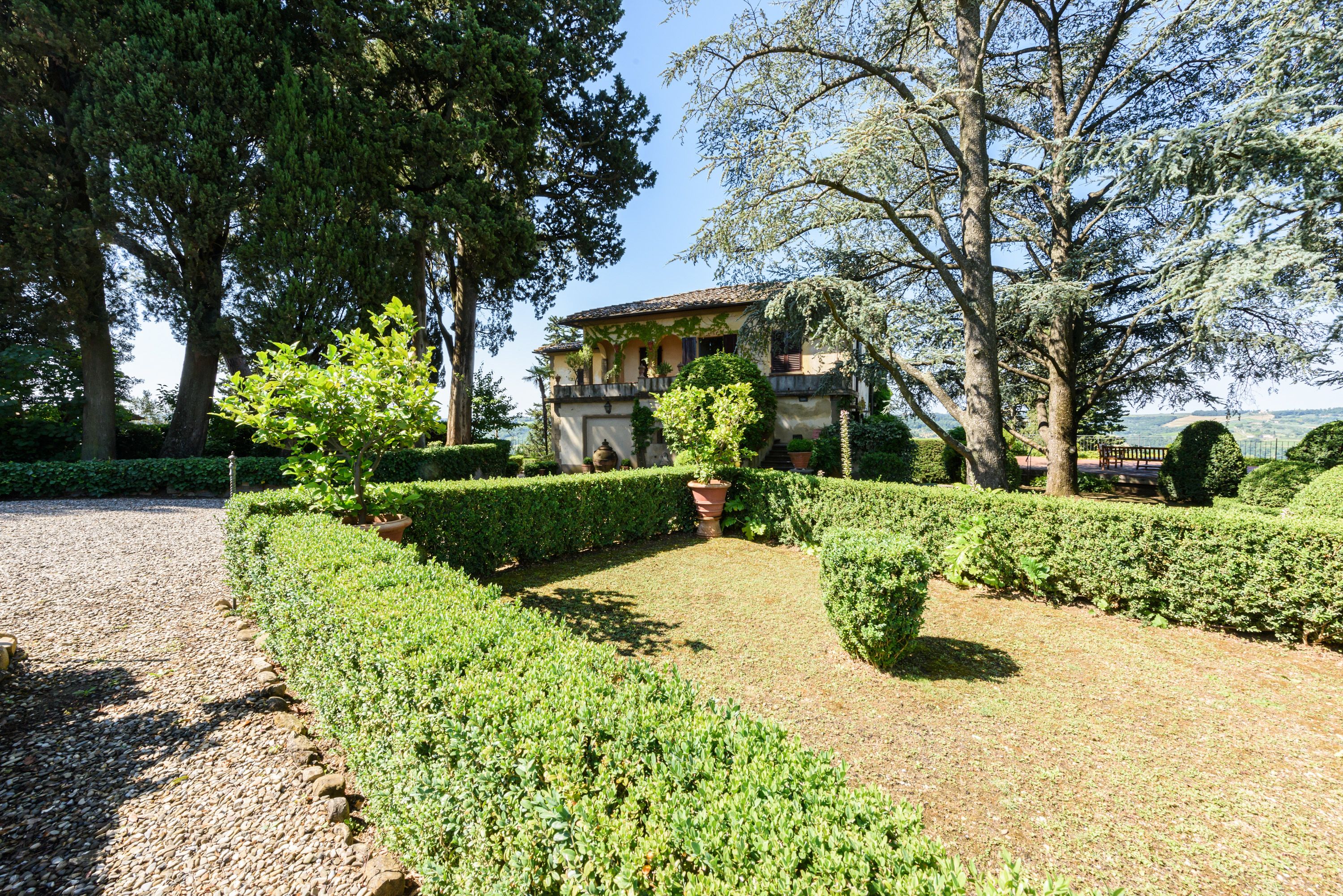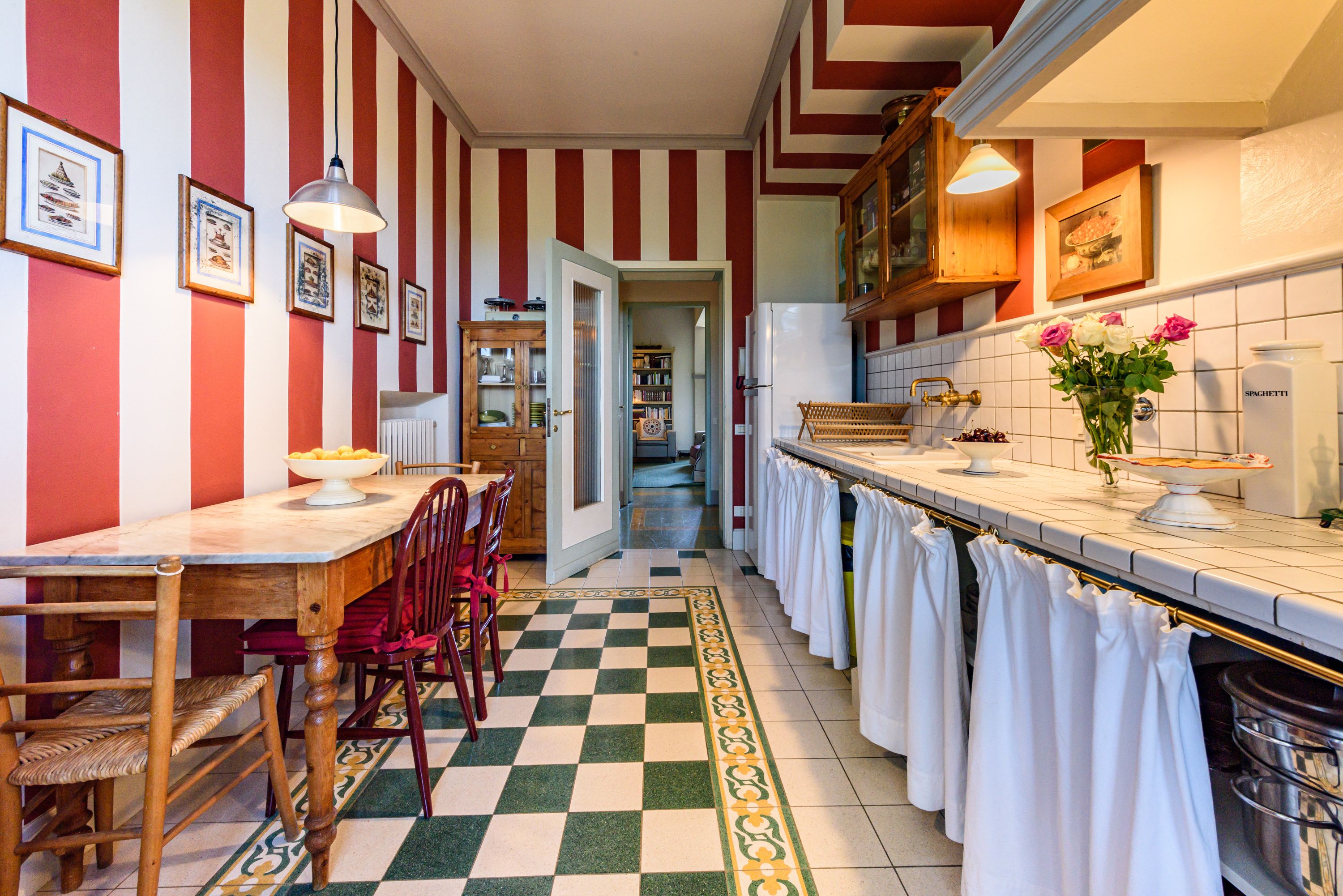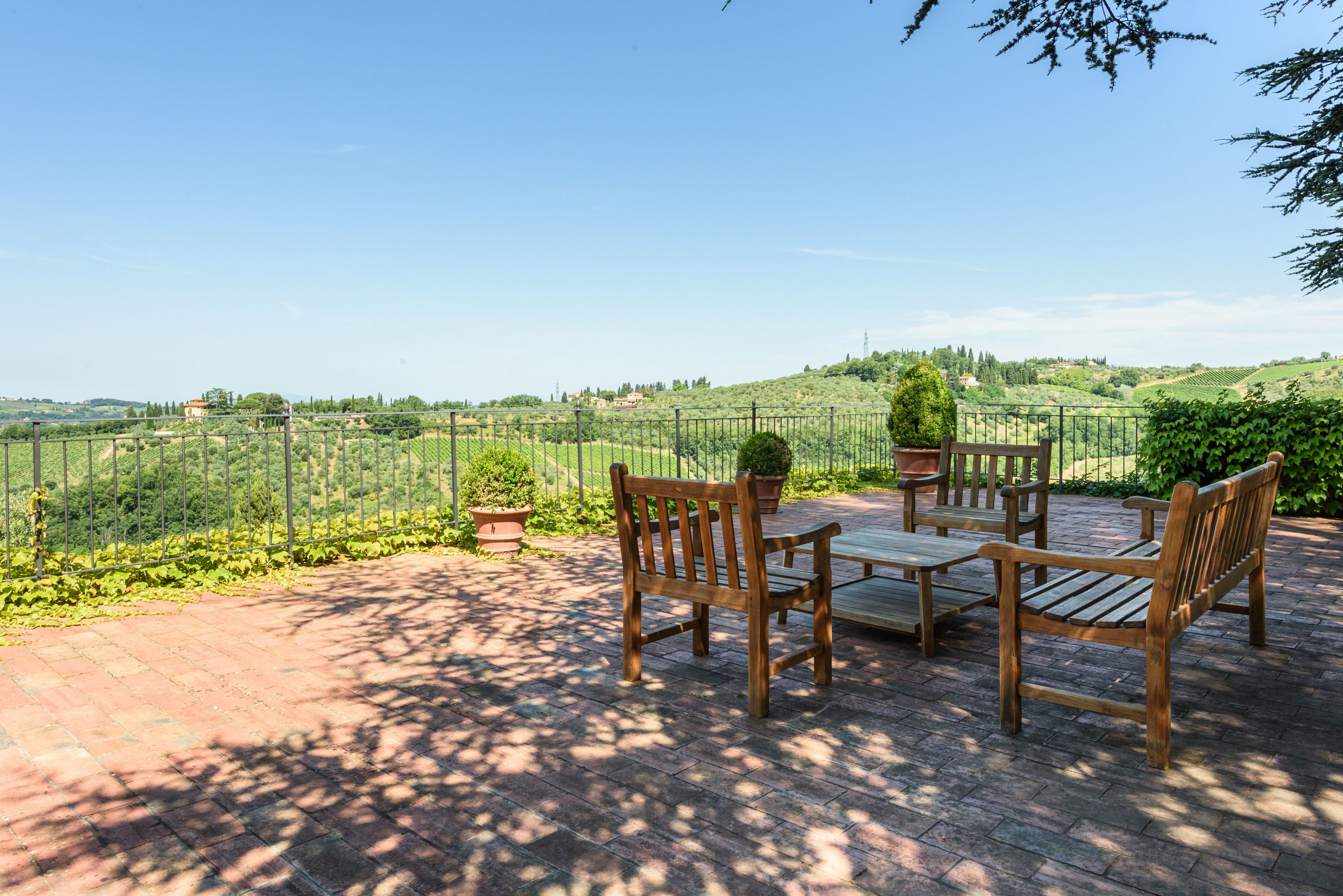 Up in the Chianti hills, this villa is surrounded by olive groves and vineyards. The setting is idyllic Tuscan countryside, yet it’s only 1km into the charming town of San Casciano Val di Pesa, whose narrow streets have a handful of traditional restaurants, shops and pavement cafés. The villa stands proud atop terraced gardens where stone steps lead to a turquoise pool at the bottom. The shaded back terrace houses multiple seating areas, from comfy outdoor sofas to a long, country-style dining table, all overlooking the Pesa river valley, between the cities of Florence and Siena. Inside you’ll find a selection of lounges for the whole group to spread out – a library brimming with books and a classy living room with traditional Italian sofas and darkwood dressers. The kitchen is a combination of modern and Tuscan traditional with an original open hearth still at the heart of the room. Bedrooms are furnished with antique wardrobes and some of the bathrooms have claw-footed bathtubs for a soak at the end of the day.