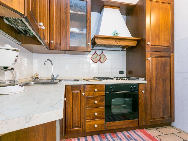 3-room apartment 80 m2, on the ground floor. Object suitable for 4 adults + 1 child. Rustic and cosy furnishings: living/dining room with dining table. Exit to the terrace. 1 room with 1 french bed (160 cm), shower/bidet/WC and satellite TV. 1 room with 1 bed and 1 french bed (160 cm), shower/bidet/WC and satellite TV.