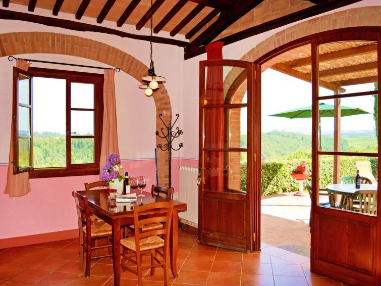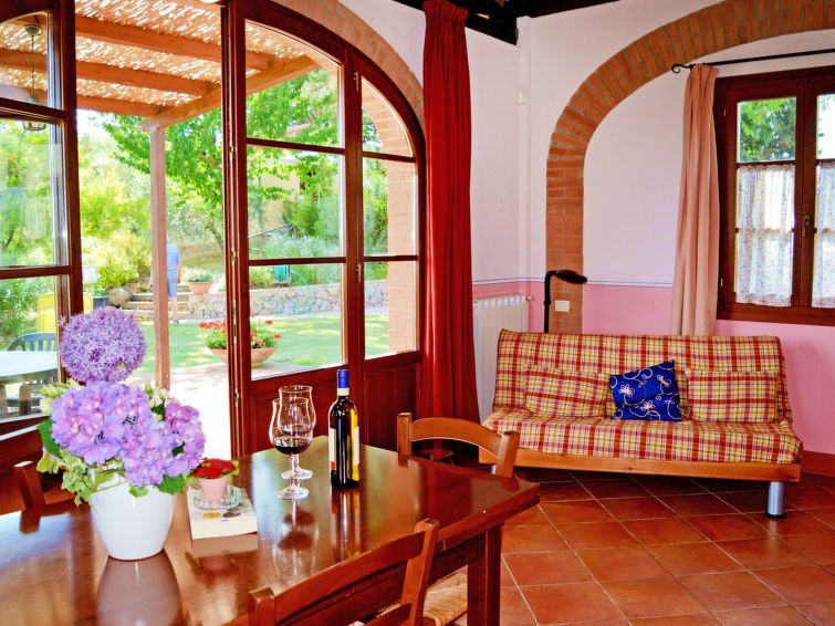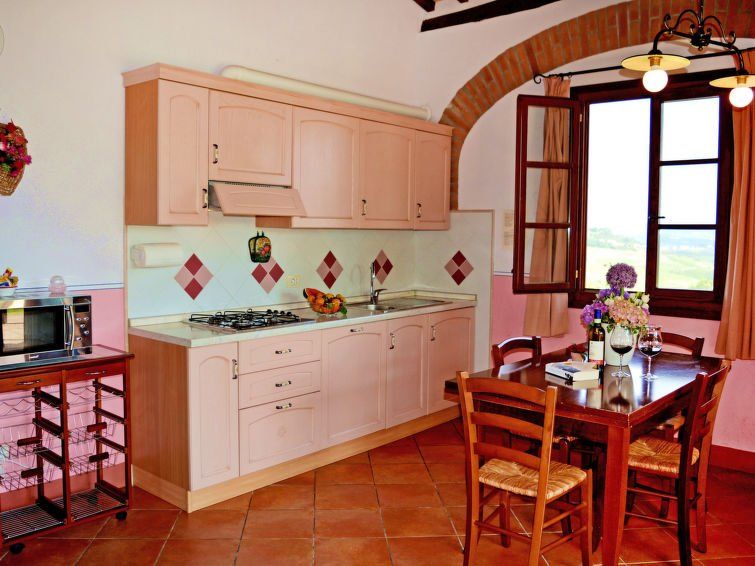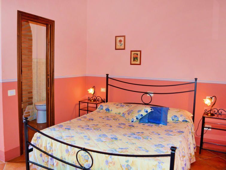 Nice view, nice pool. Everything available, microwave, refrigerator, coffee maker for filters, TV., Reception with bottle of wine. The bed is unfortunately hard and is a double mattress on which you notice that the other person is spinning. Chair mattress taken from blanket box at the pool, placed underneath. Paid E150.00 deposit. 2 persons, bill for gas also turns out to be for water. E12.00 for 7 days. too much. Older couple lives in main building. He speaks little English. Wine shop and Agriturismo different building.