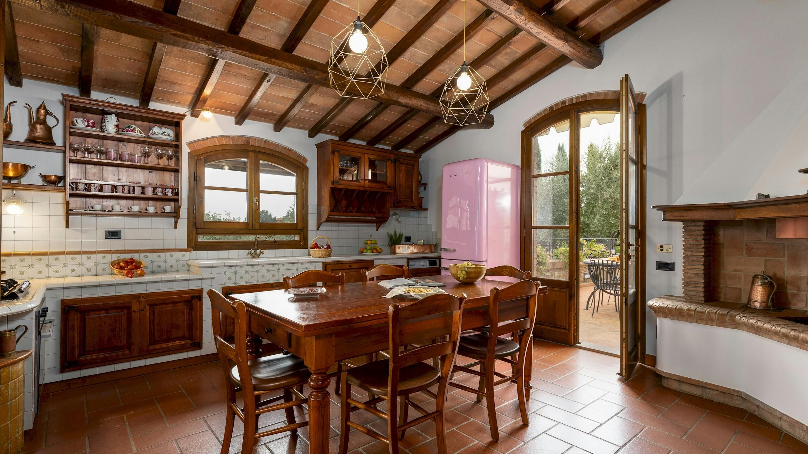 Once an old stone barn, this villa has been brought back to life and promises a serene stay in the heart of Tuscany. Sure, the traditional interiors may not be everyone’s cup of tea, but you’ll find all the key ingredients for a comfortable stay here. We love the outdoor space, with sun-kissed terraces, a private pool, and far-reaching views across the hills – what more could you want? Location-wise, San Gimignano is a mere stone’s throw away. A visit to this historic town, with its iconic towers, is a must.