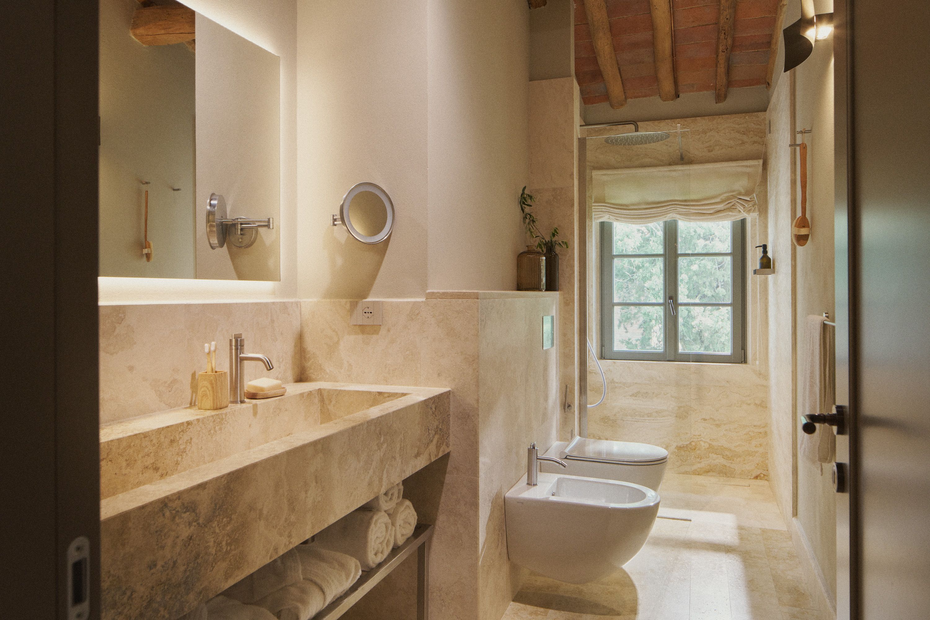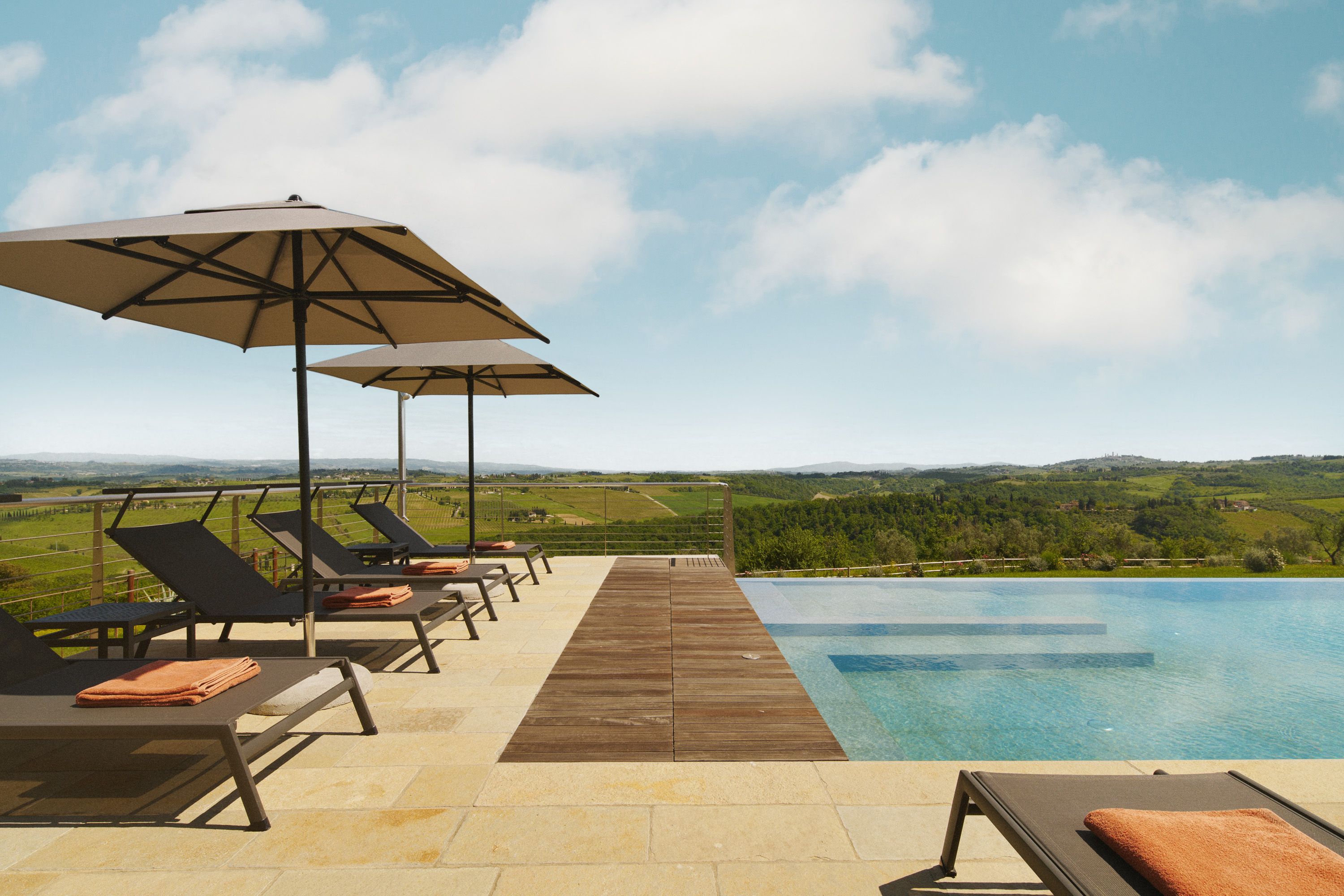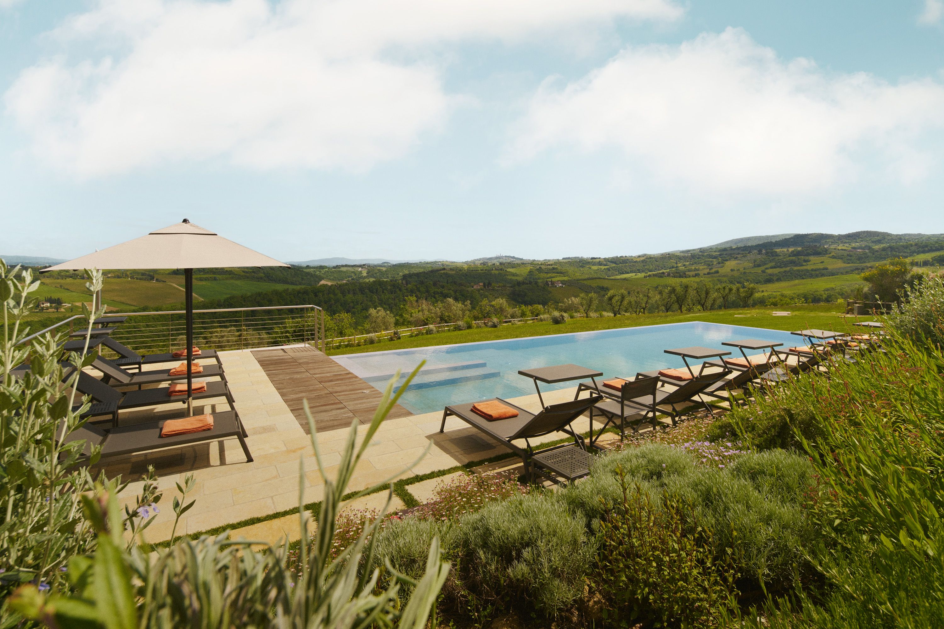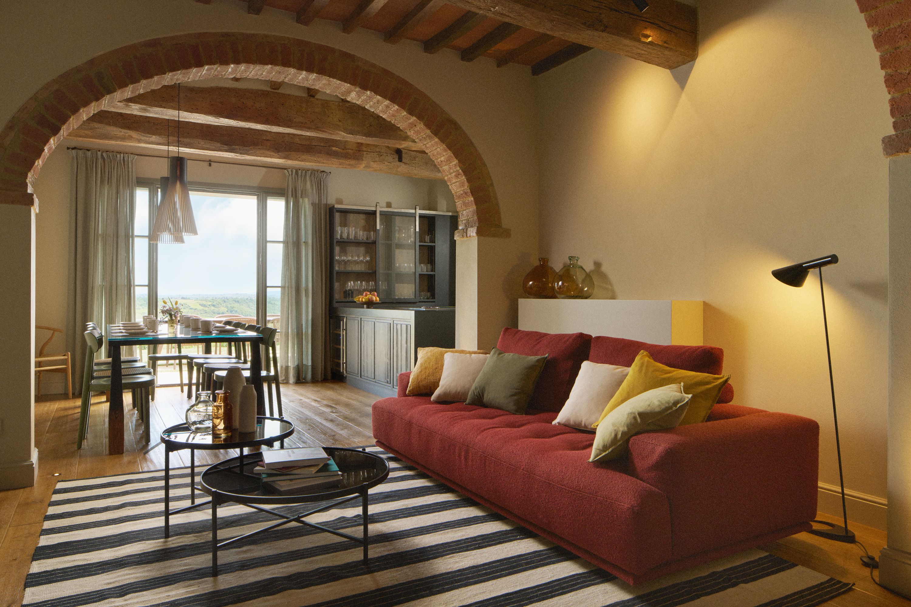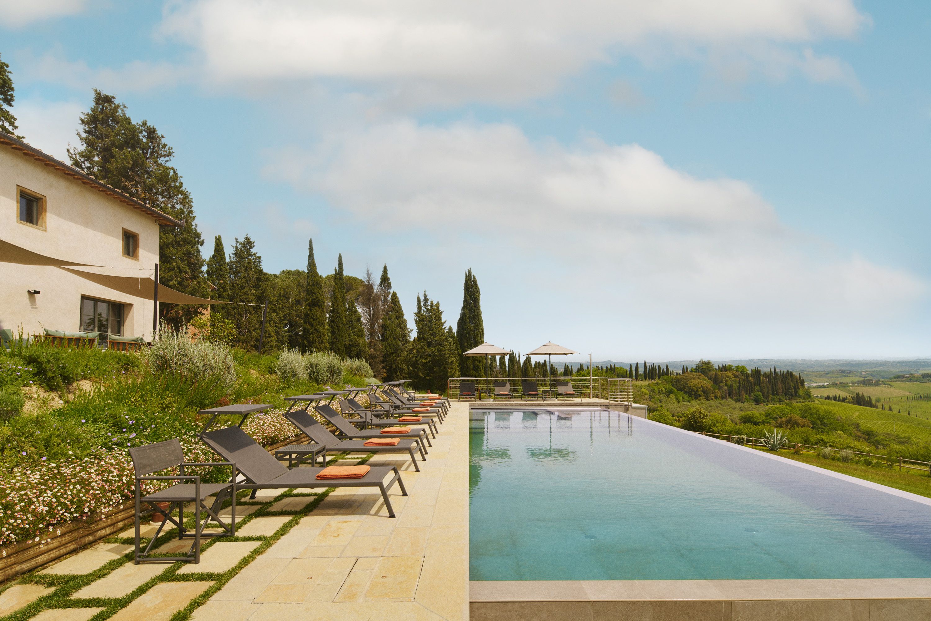 Set among olive groves and cypress trees, this villa overlooks the rolling Tuscan countryside all the way to the medieval towers of San Gimignano. The style is contemporary country chic – think exposed beams, brick archways and warm, earthy colours. The living room is on the smaller side, but if it's relaxation you're after, there's a spa with a wood sauna, hammam, and jacuzzi, plus an outdoor infinity pool. Dining is best enjoyed on the terrace, soaking up those panoramic views. Fancy a change of scenery? There are villages to explore, local vineyards to visit and hiking trails winding through the surrounding hills.