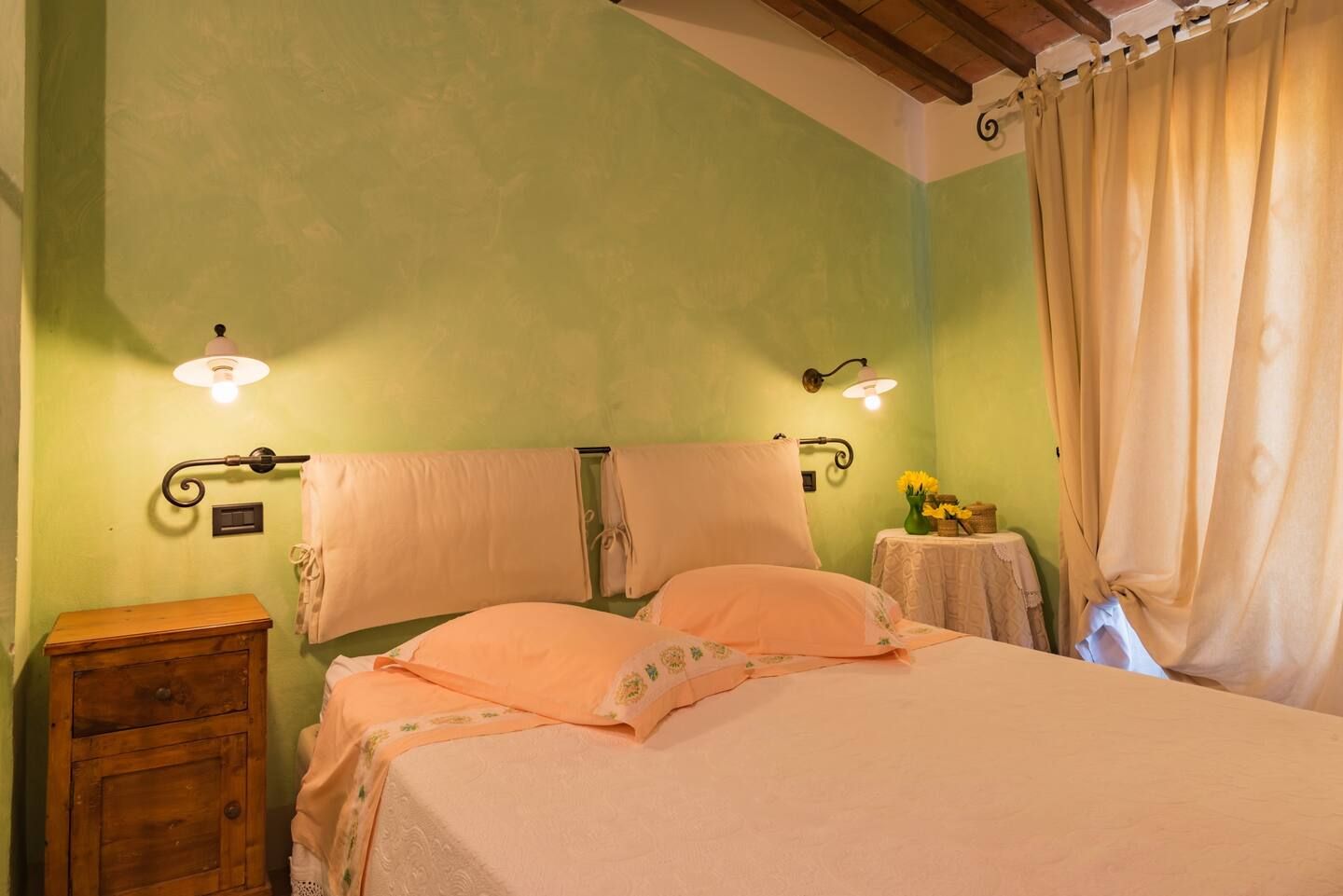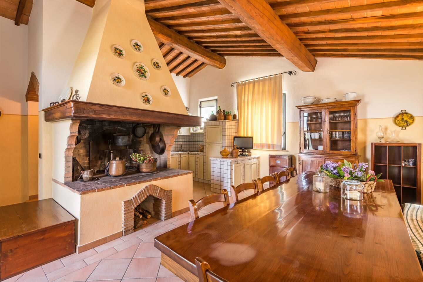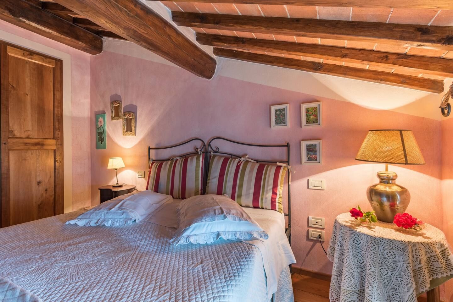 Inside, you’ll find traditional Italian style – think wooden beams and warm colours. If the weather turns chilly, curl up in front of the fireplace with a book and a glass of Chianti – you’ll be feeling cosy in no time.