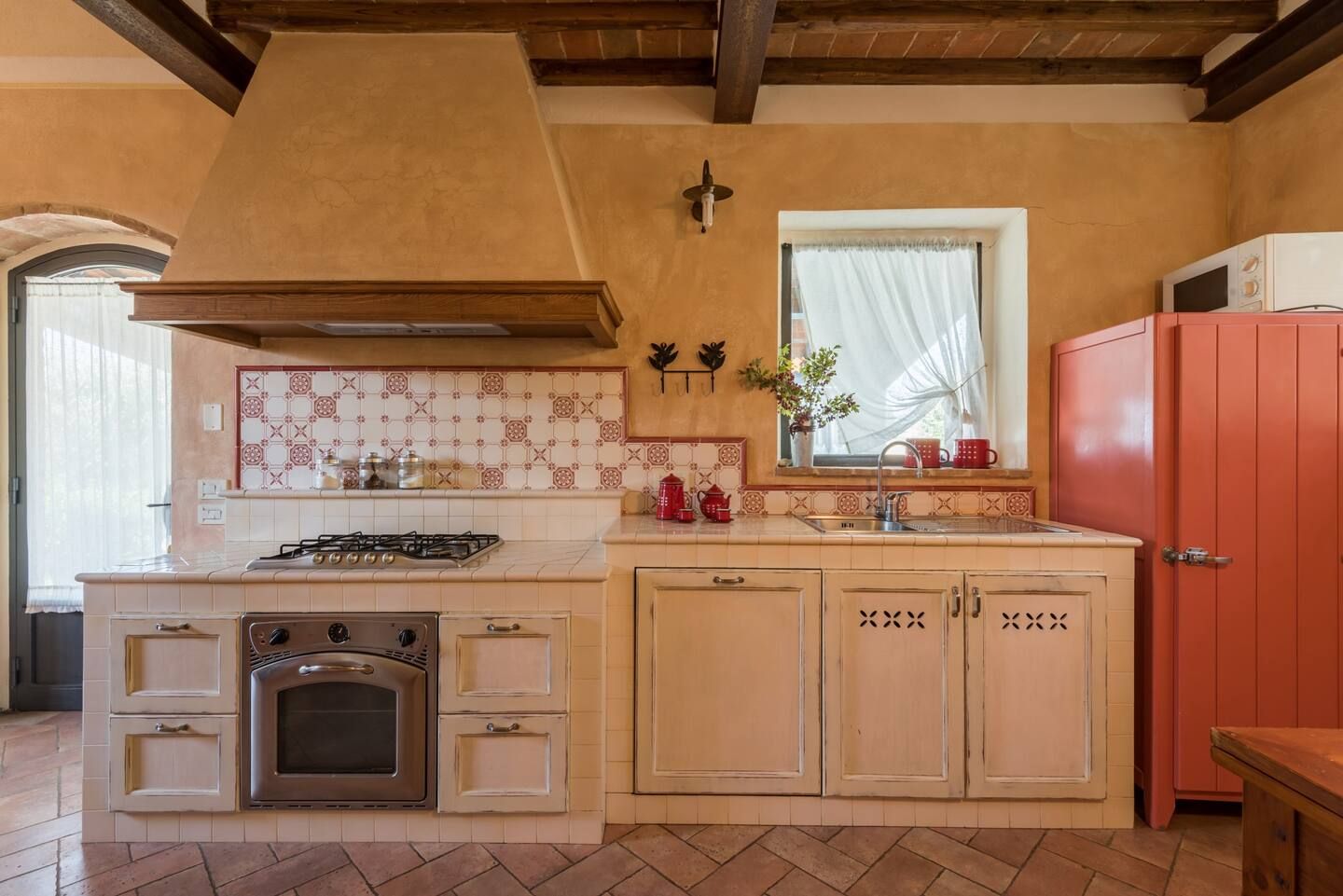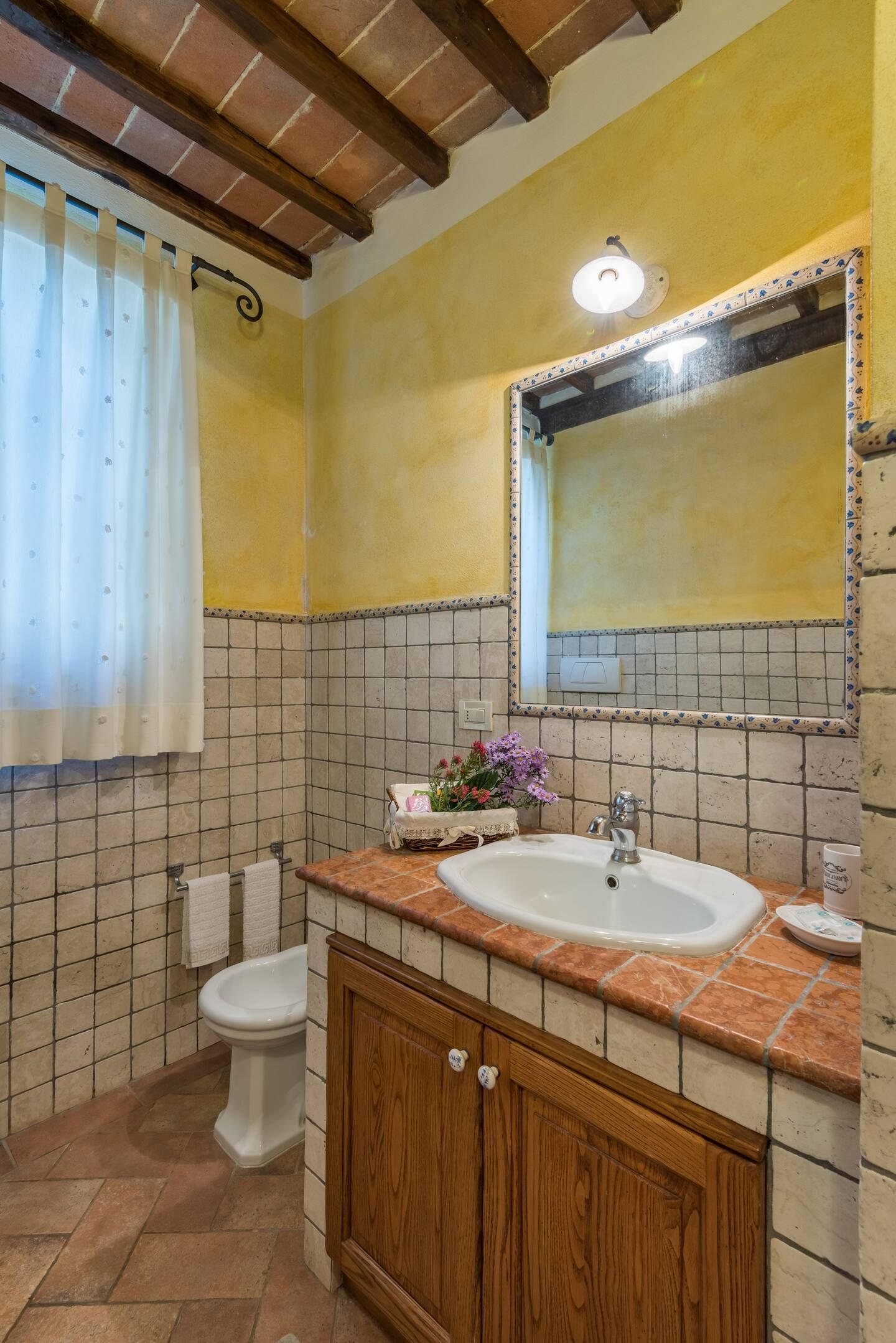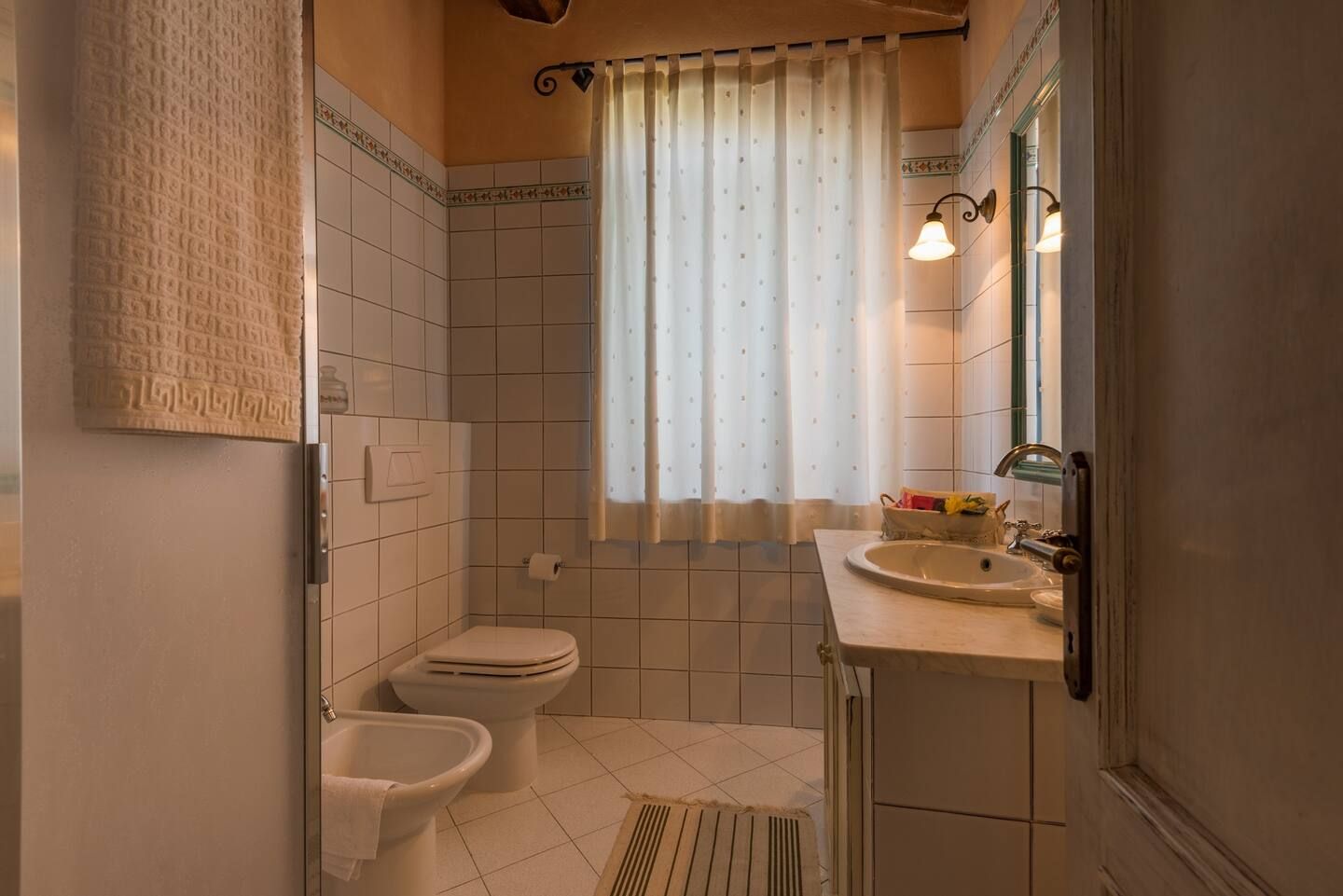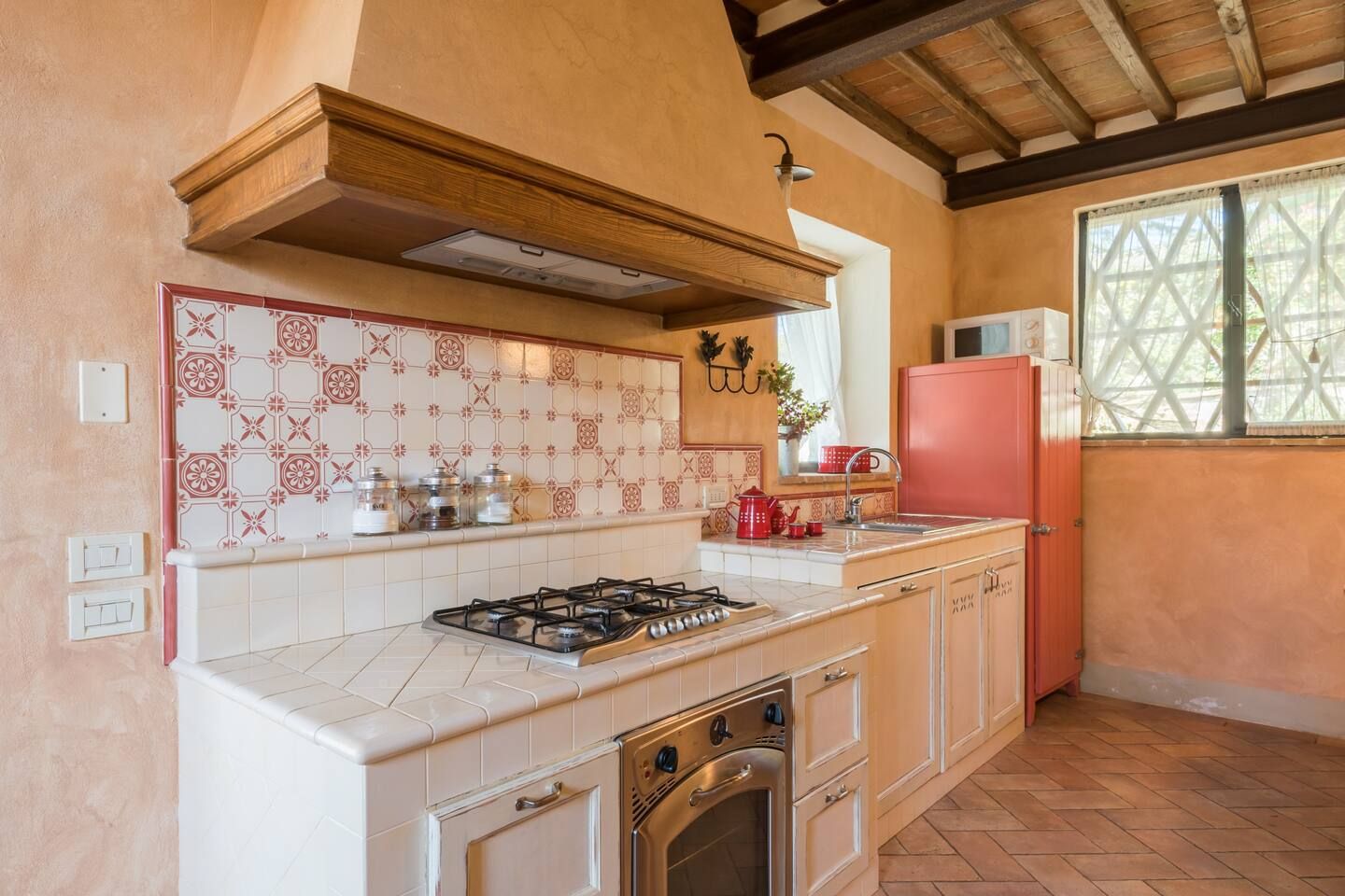 Inside, you’ll find traditional Italian style – think wooden beams and warm colours. If the weather turns chilly, curl up in front of the fireplace with a book and a glass of Chianti – you’ll be feeling cosy in no time.