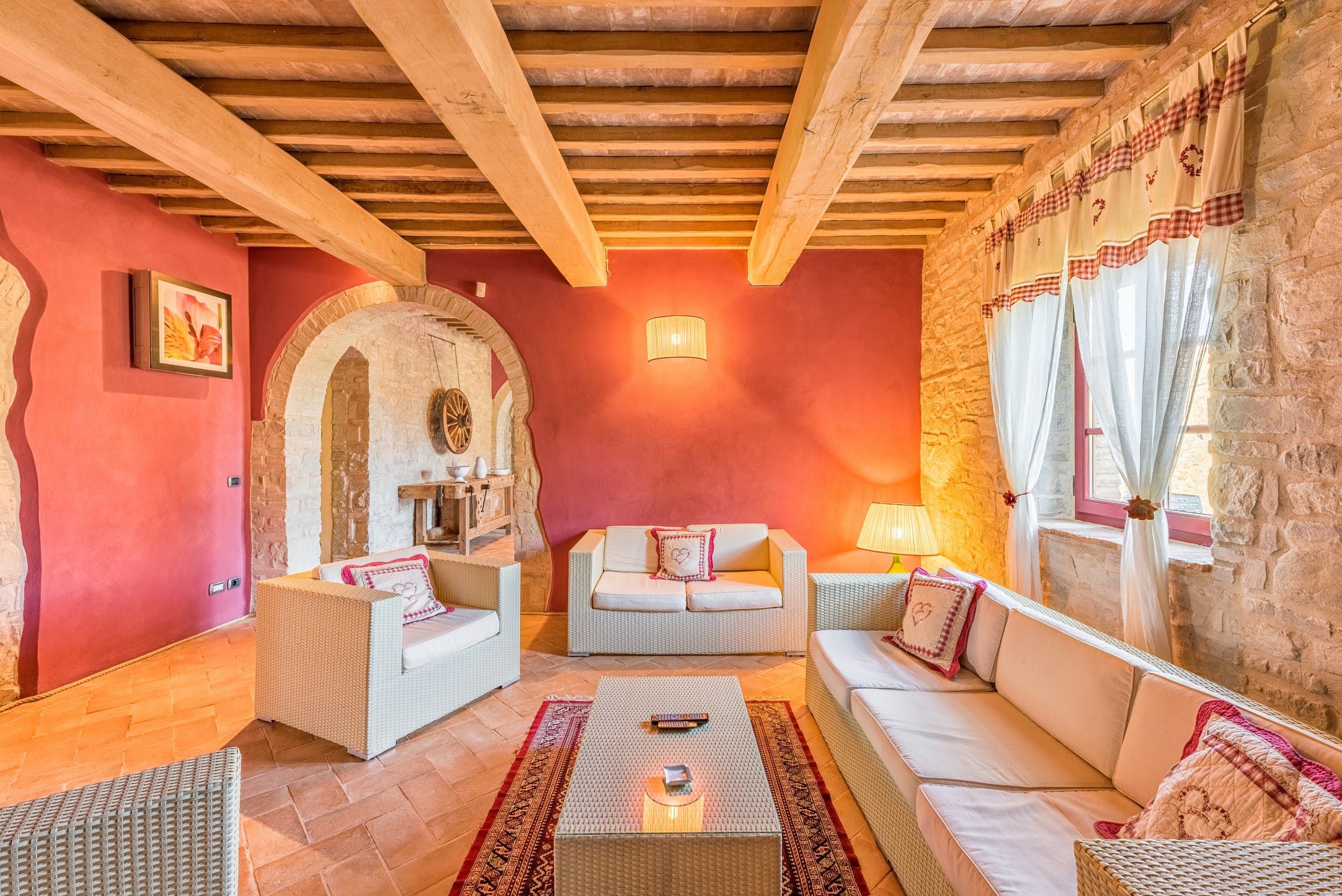 This isn’t the kind of home that sits discreetly in the Tuscan countryside, rather it radiates like the summer sun inviting you to bask in its warmth.