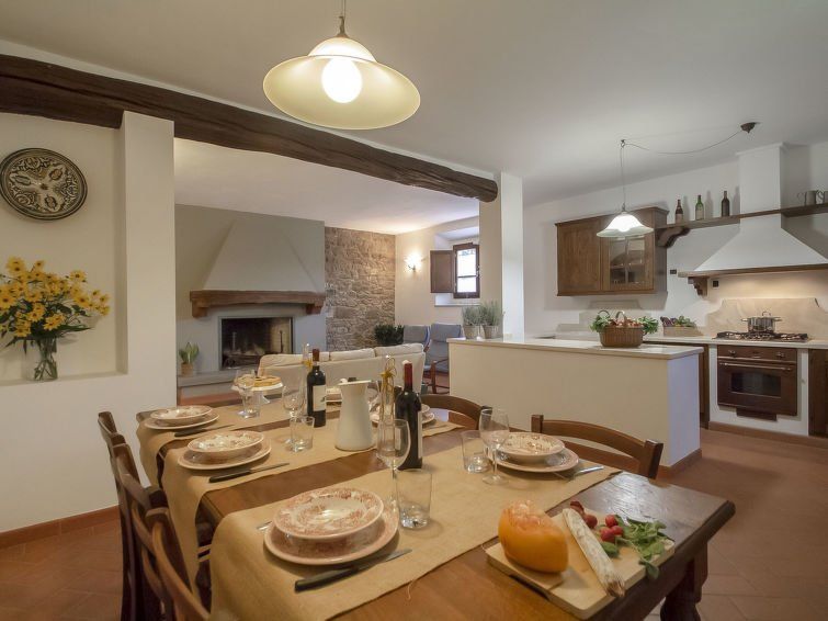 "Rosmarino", 4-room apartment 110 m2, on the ground floor. Practical and tasteful furnishings: open dining room. Open living room with 1 sofabed, open-hearth fireplace and satellite TV. 1 double bedroom. Exit to the garden. Walk-through room with 1 french bed (140 cm). Kitchenette (5 hot plates, oven, dishwasher, freezer).