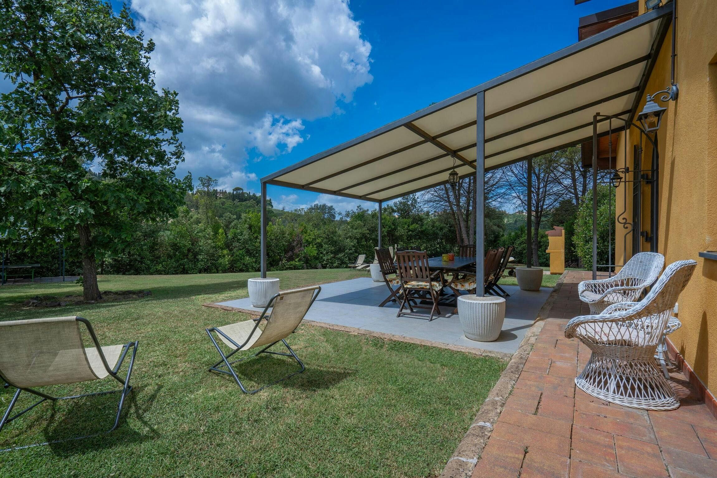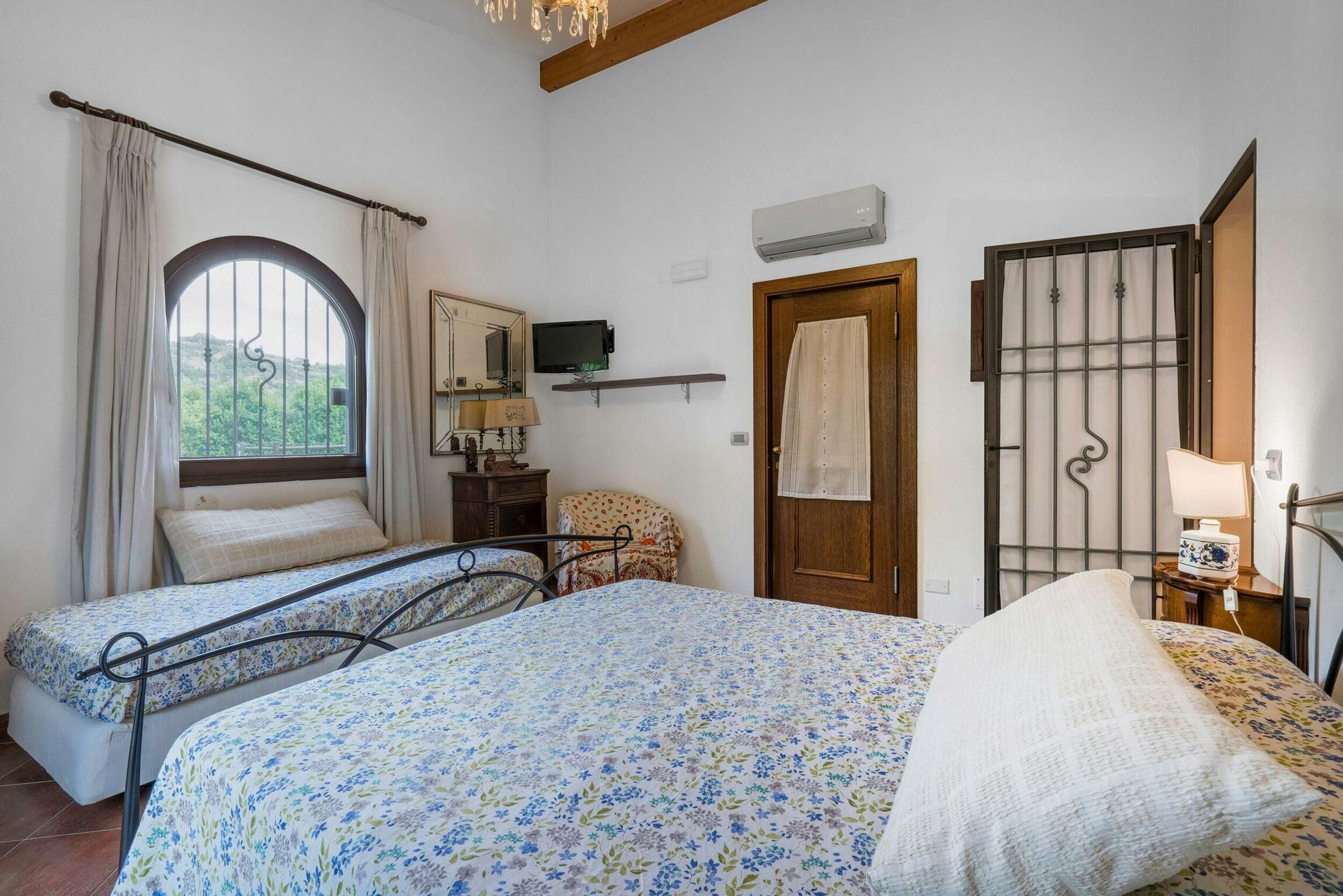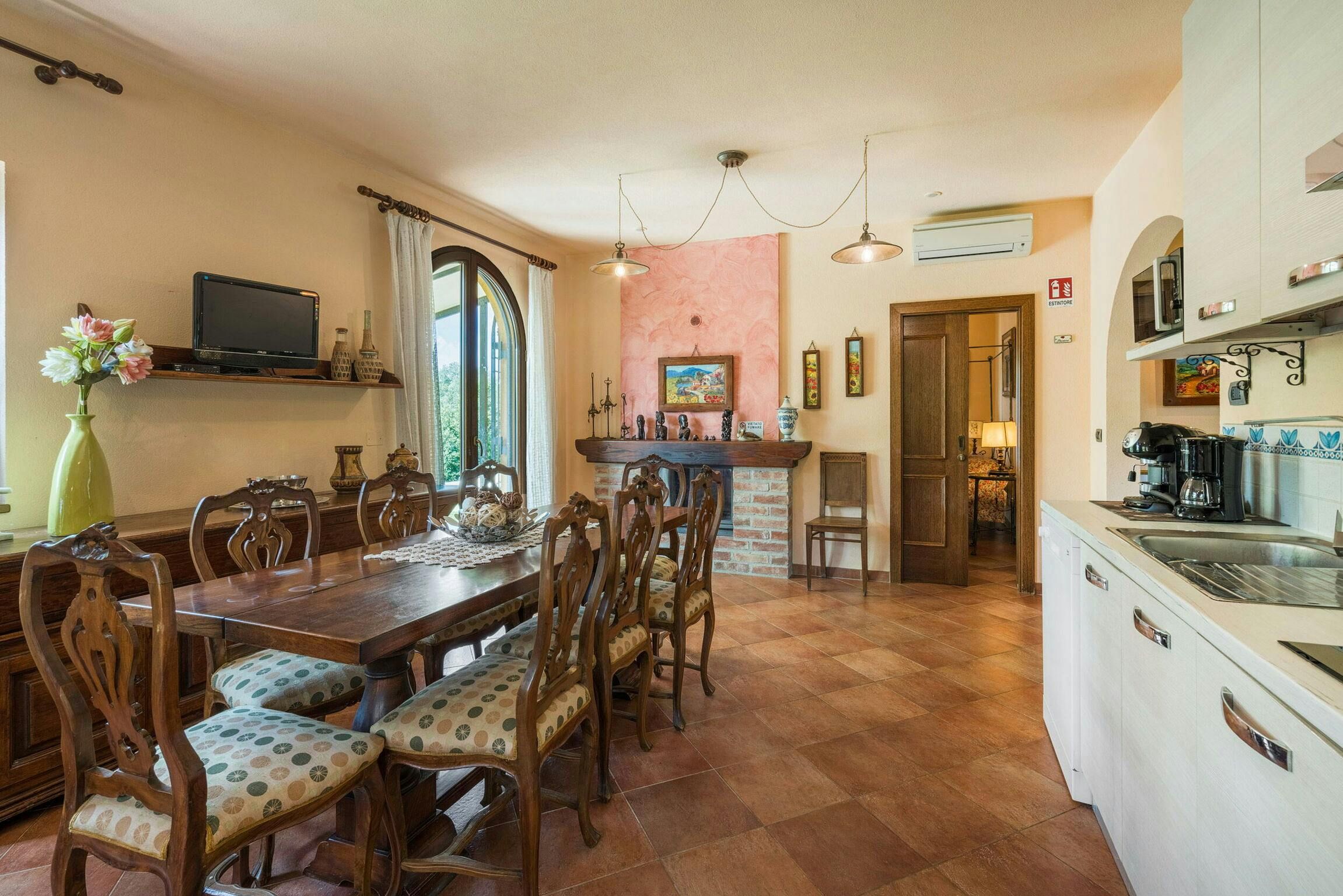 Nestled in the Tuscan countryside, this pet-friendly villa offers a peaceful retreat into nature. Inside, it’s bright and homely with two double bedrooms and three triples – ideal for families. The large, fenced garden encloses a private swimming pool, shaded spots for dining alfresco, swings, and a table tennis setup. Fancy sampling some local produce? The main farmhouse hosts dining experiences by reservation. And when you’re ready for a change of pace, Pisa is just forty-five minutes away and Florence only an hour.