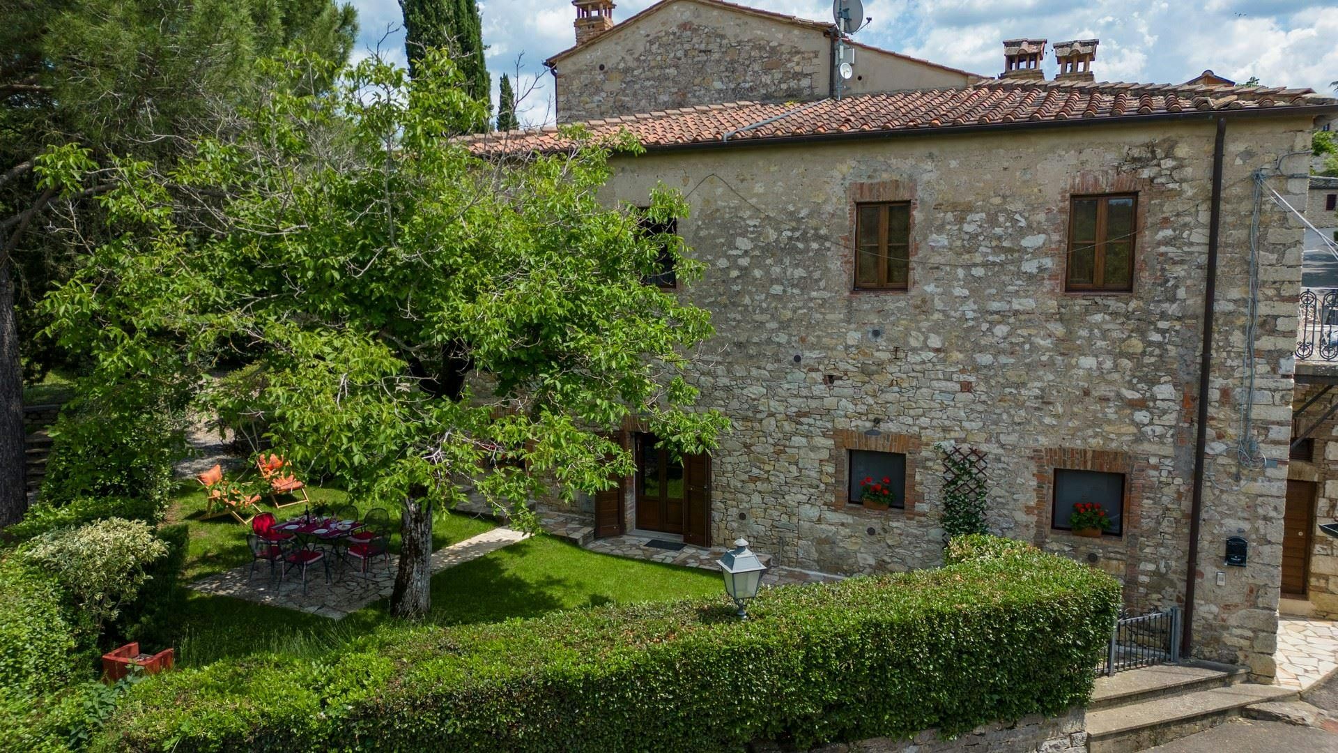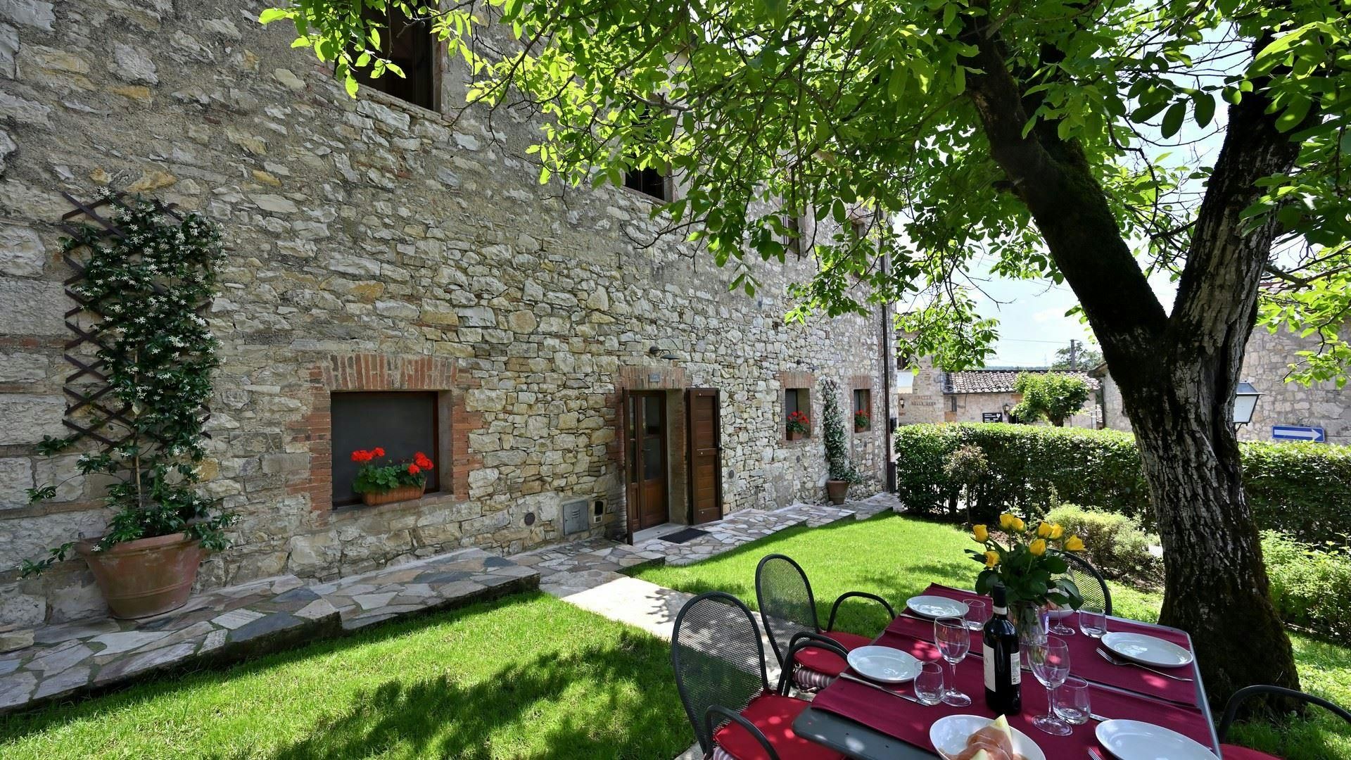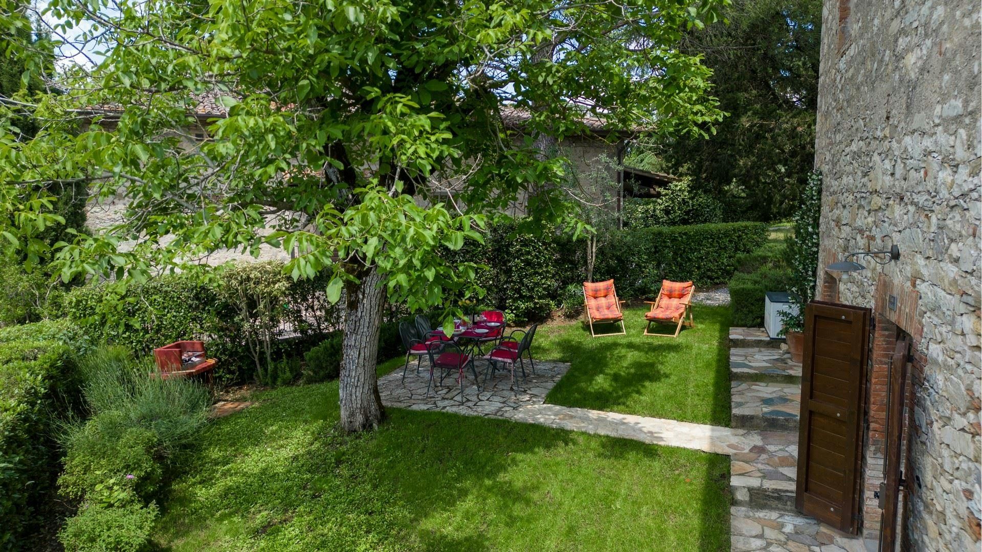 Tucked away in the heart of Chianti, this restored stone cottage will transport you into a beautiful way of Tuscan living. Once part of a winery estate, the home has lots of rustic, original features, however has been modernised with everything you need for a comfortable stay. It features thick walls that stay cool in summer and a private garden shaded by a walnut tree for alfresco dining. Spend leisurely afternoons by the shared pool or stroll to the village trattoria for seasonal dishes and local wines. From here, day trips to Siena, Florence, and the nearby castles are easy to plan too.