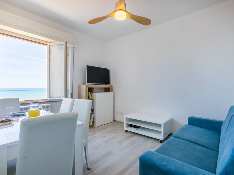 "Franca e Mauro", 5-room apartment 105 m2 on 5th floor. Bright, beautiful and modern furnishings: living/sleeping room with 1 double sofabed and TV. 2 double bedrooms. Exit to the balcony. 1 small room with 1 bed and 1 pull-out bed. Kitchen-/living room (oven, dishwasher, 2 induction hot plates, Gas stove, 4 gas rings, toaster, kettle, microwave, electric coffee machine).