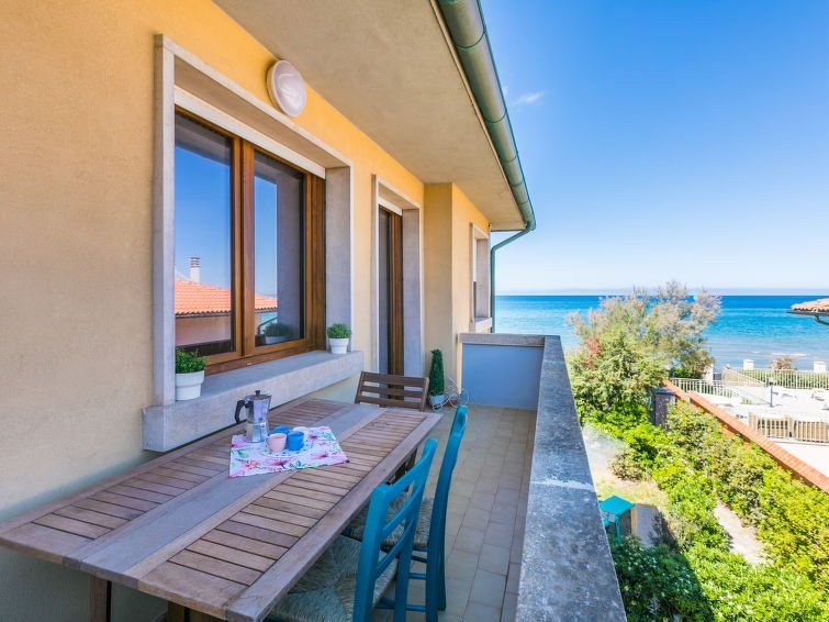 "Marequì", 3-room apartment 60 m2 on 1st floor. Bright, renovated in 2021, modern and tasteful furnishings: upper floor: living/sleeping room with 1 sofabed (140 cm), dining table, cable TV and flat screen. Exit to the balcony. 1 double bedroom. Exit to the balcony. 1 room with 1 bed and 1 x 2 bunk beds.