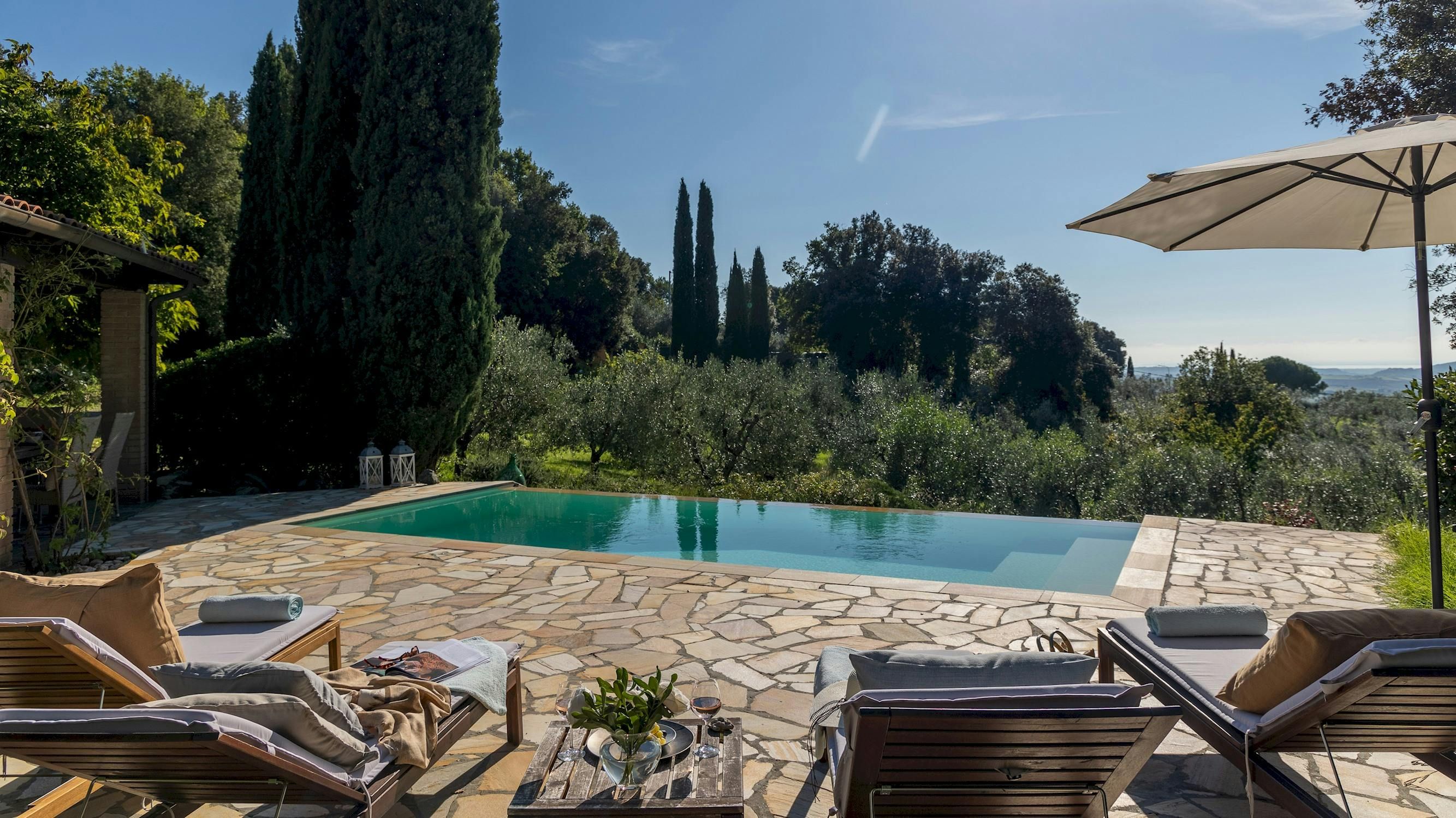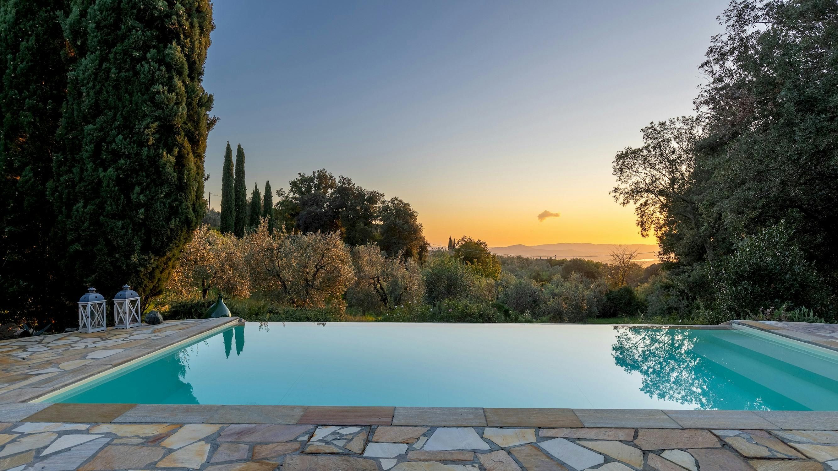 Tucked into the heart of the Val di Cecina, relaxation comes easily at this home. Sure, it's traditional interiors may not be everyone’s cup of tea, but we love the rustic style to this home. And for us, the real standout is the outdoor space. Step outdoors to find a private infinity pool, shaded dining spots and sun-drenched terraces. Throw in the views stretching up to the lake of Santa Luce, and we’re sold. Located just ten minutes from the villages of Santa Luce and Pomaia, this home is perfect for exploring the rich history and cultural traditions of the area.
