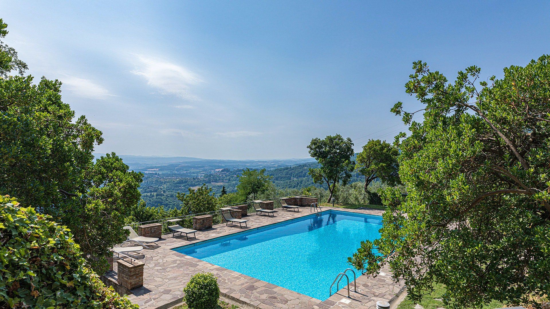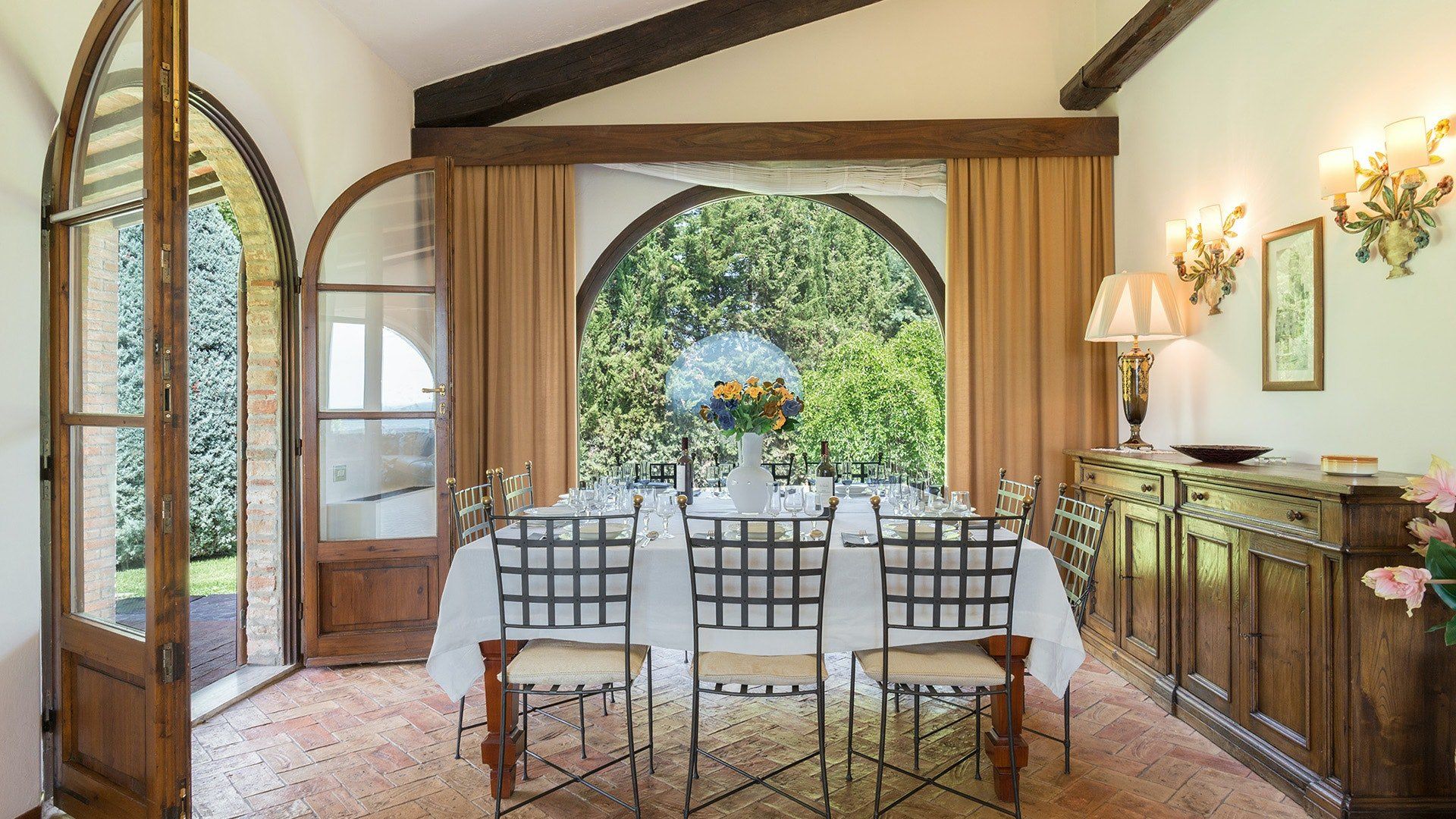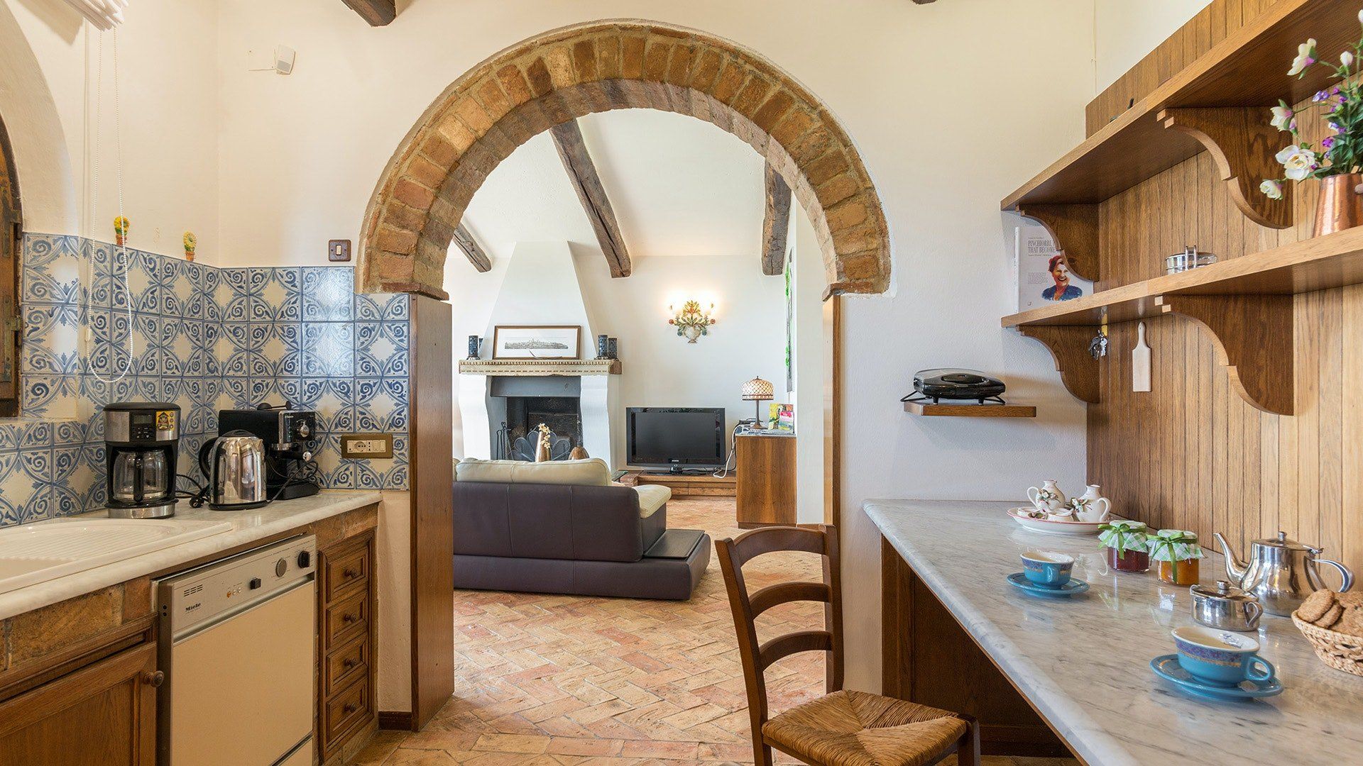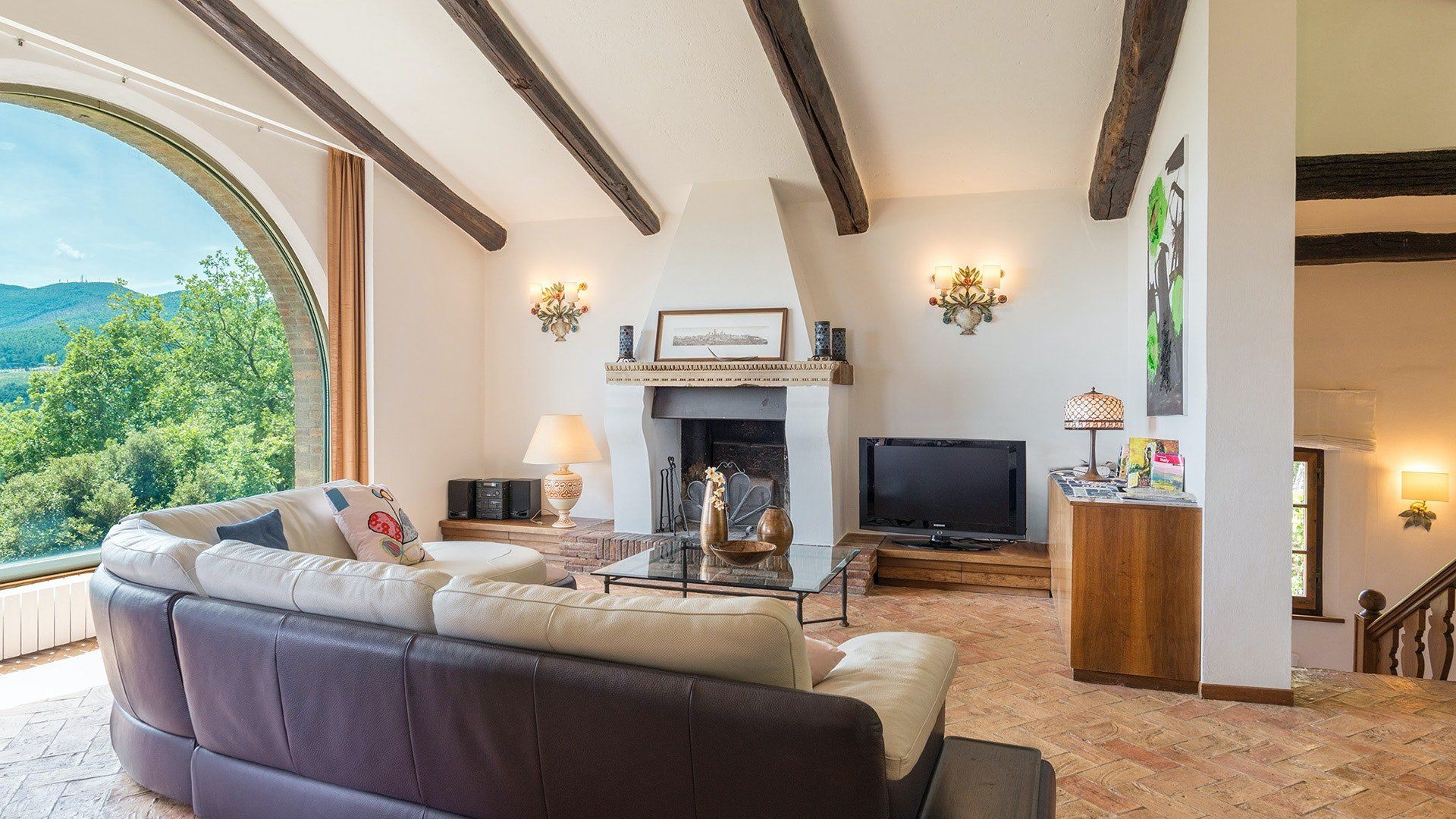 Set out over three levels, with a different perspective over the stunning landscapes around every corner, this vast hilltop villa is guaranteed to impress. The interior is pure traditional Tuscany, with brick archways, exposed beams and terracotta flooring to ground you as you wander from room to room.