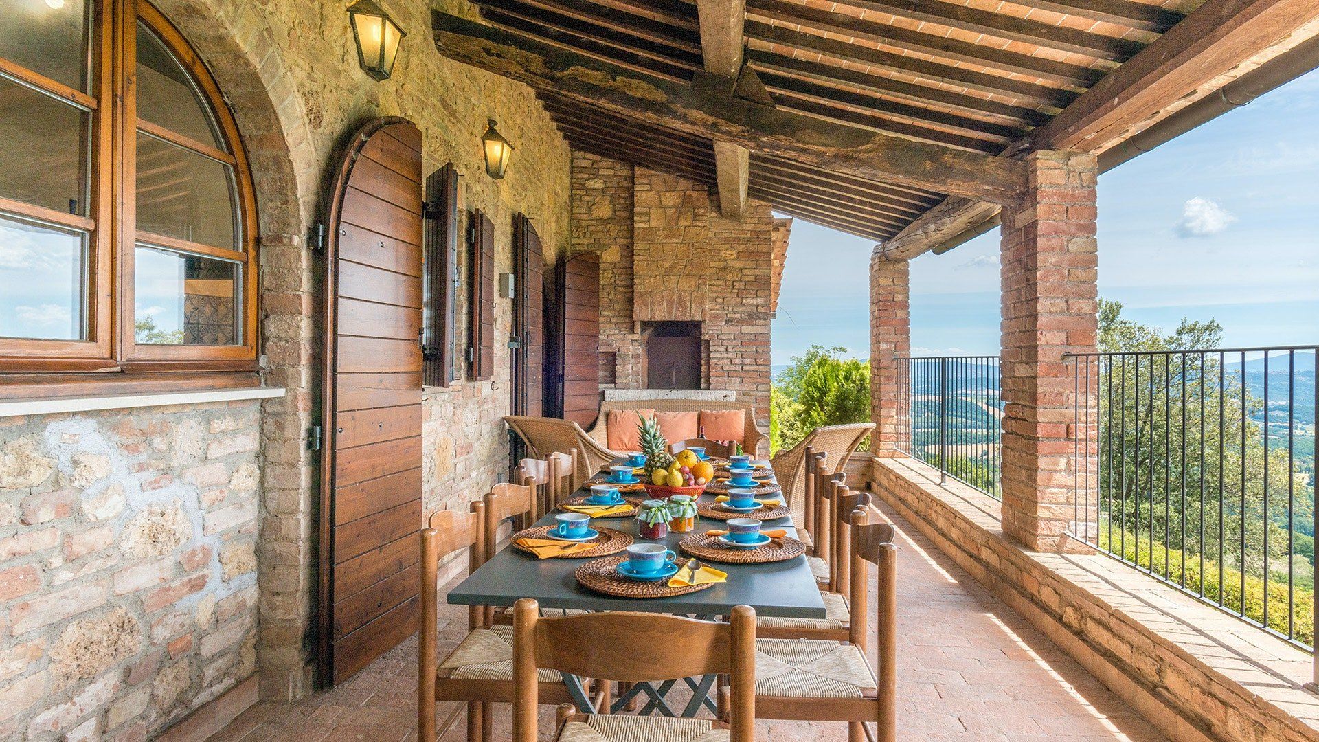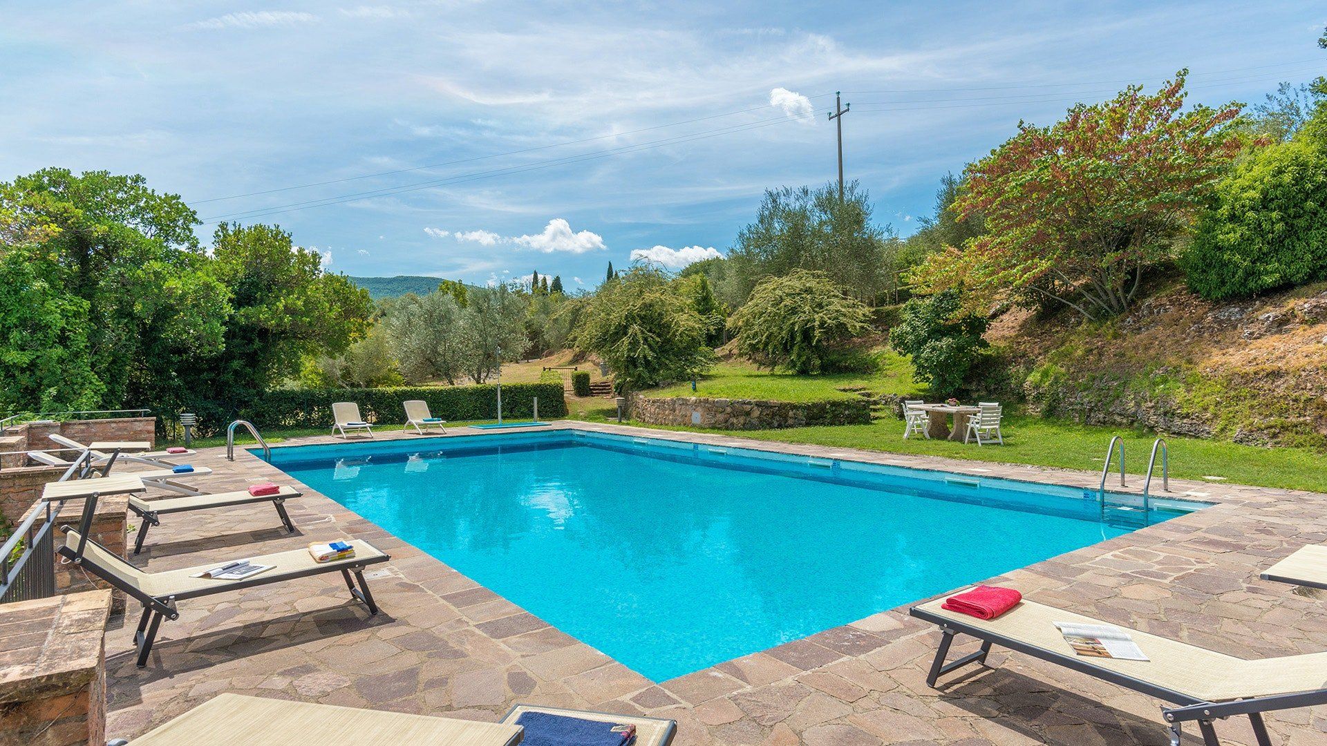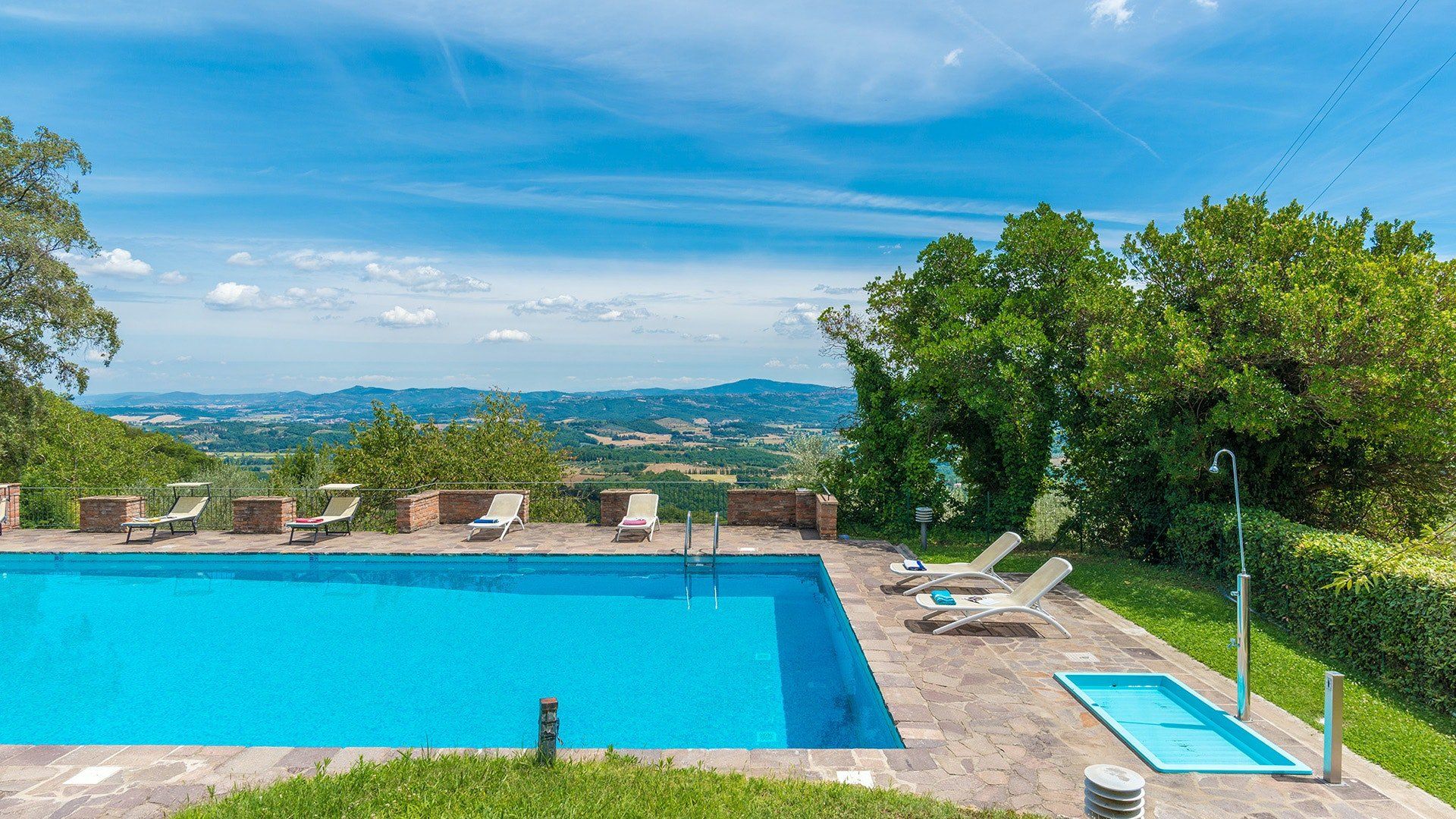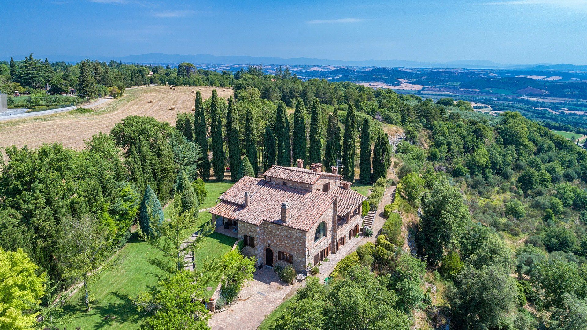 Set out over three levels, with a different perspective over the stunning landscapes around every corner, this vast hilltop villa is guaranteed to impress. The interior is pure traditional Tuscany, with brick archways, exposed beams and terracotta flooring to ground you as you wander from room to room.