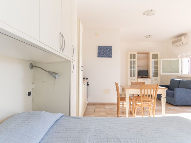 1-room apartment 31 m2 on 1st floor. Object suitable for 2 adults + 1 child. Cosy furnishings: open living/dining room with 1 sofabed, 1 double bed, dining table, kitchen corner and TV. Exit to the terrace. Open kitchen (oven, 4 gas rings). Exit to the terrace. Shower/WC. Air-conditioning, forced-air heating.