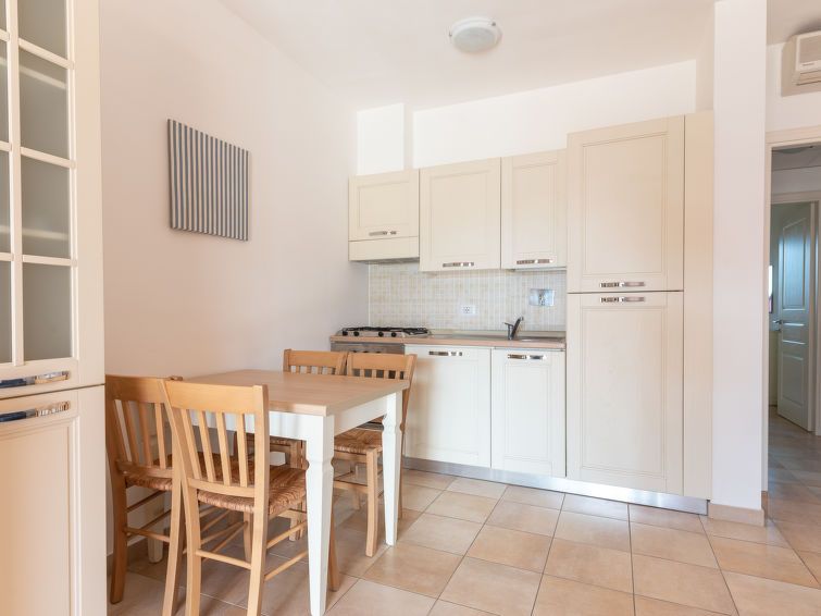 2-room apartment 40 m2, on the ground floor. Cosy furnishings: living/dining room with 1 double sofabed, dining table and TV. Exit to the terrace. 1 double bedroom. Open kitchen (oven, 4 gas rings). Exit to the terrace. Shower/bidet/WC. Air-conditioning, forced-air heating. Terrace roofed, garden.