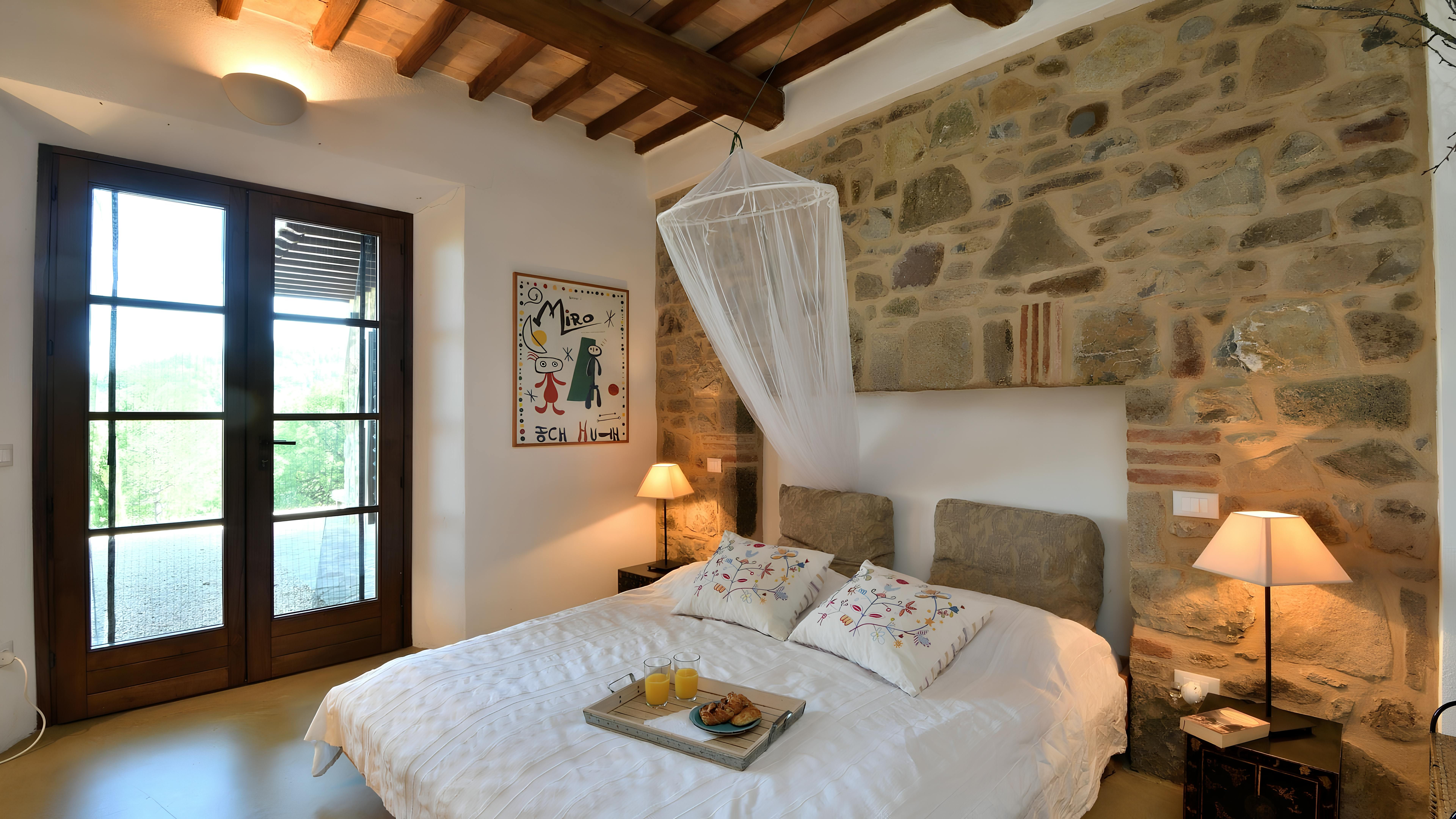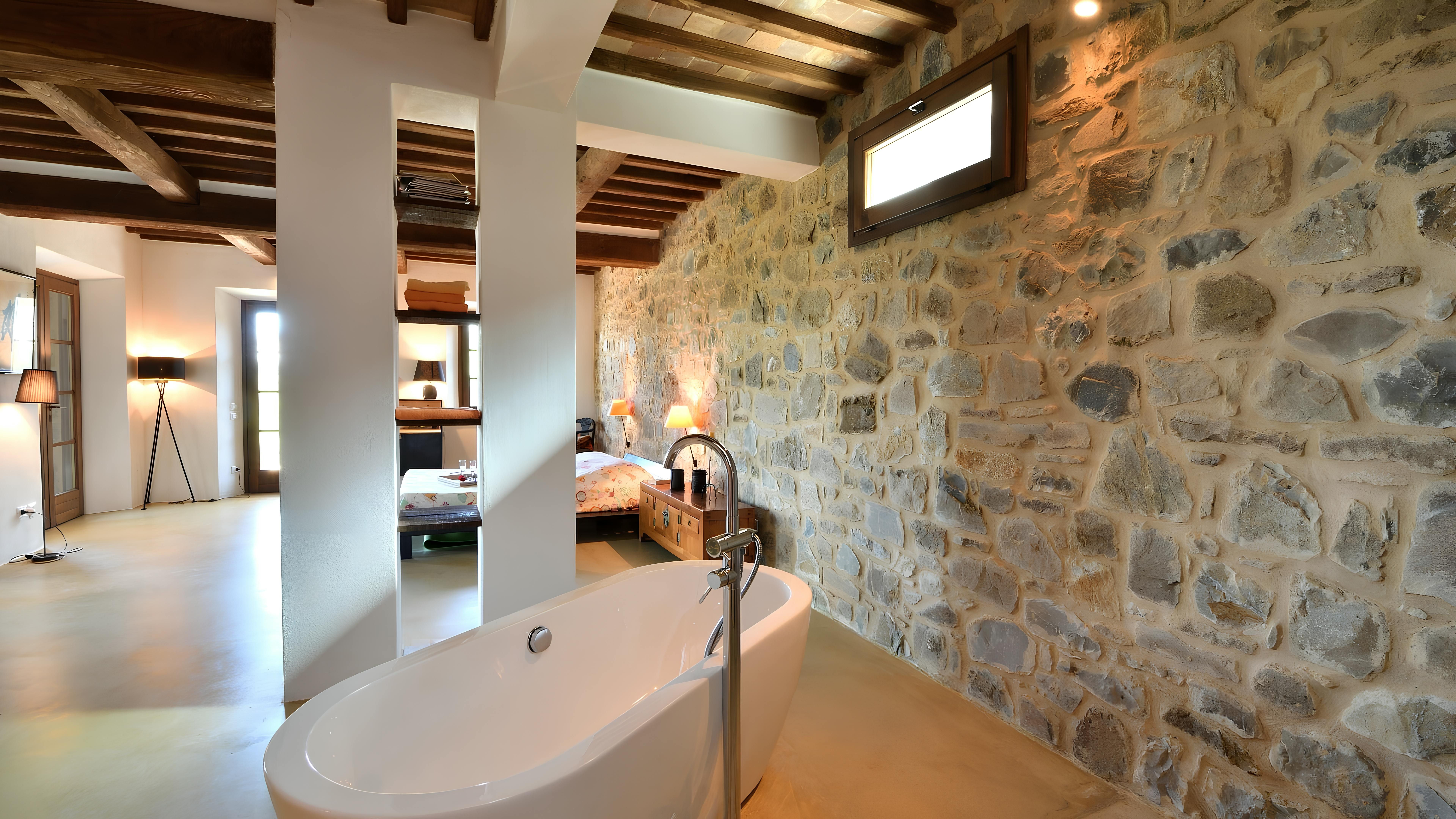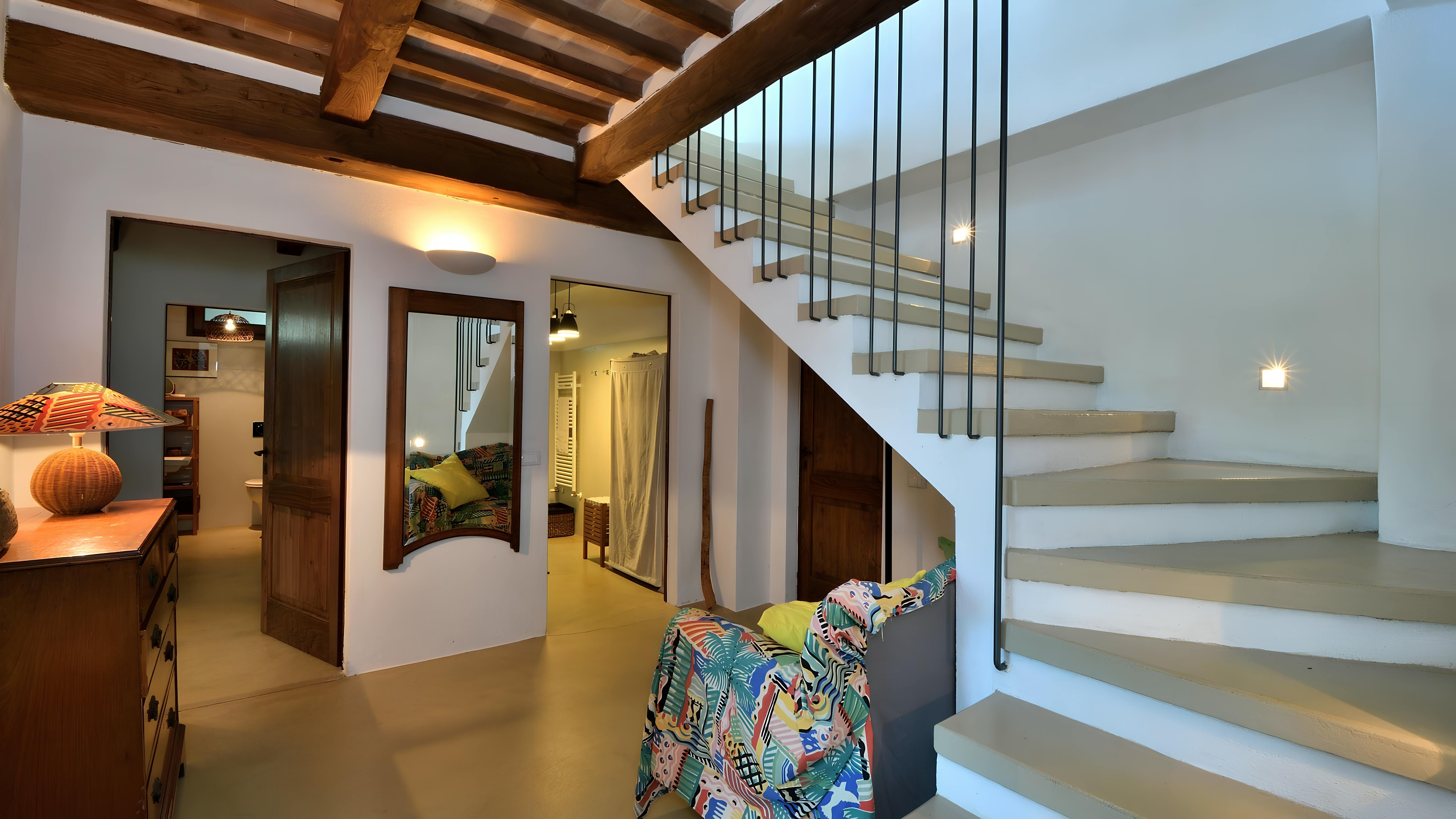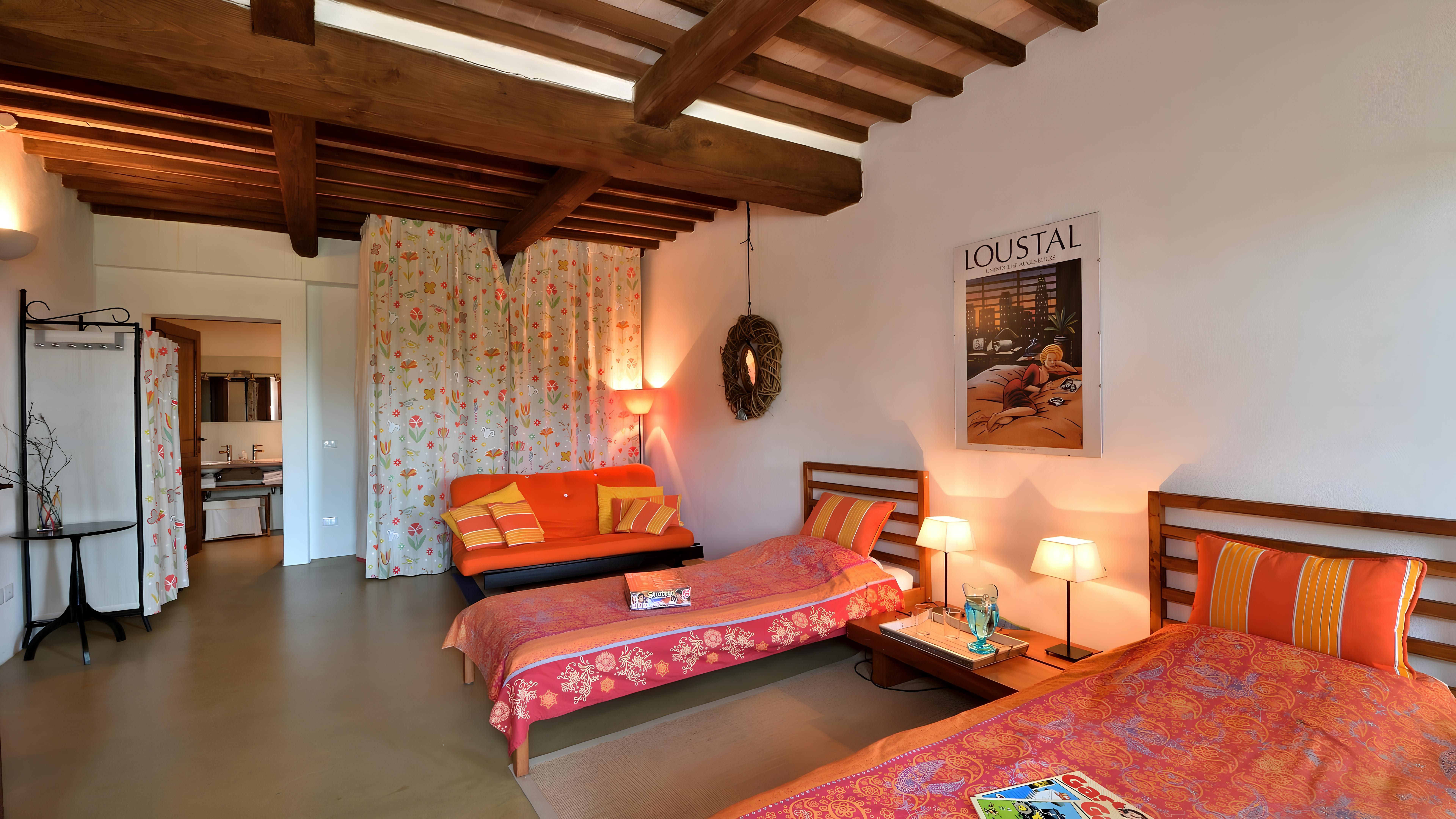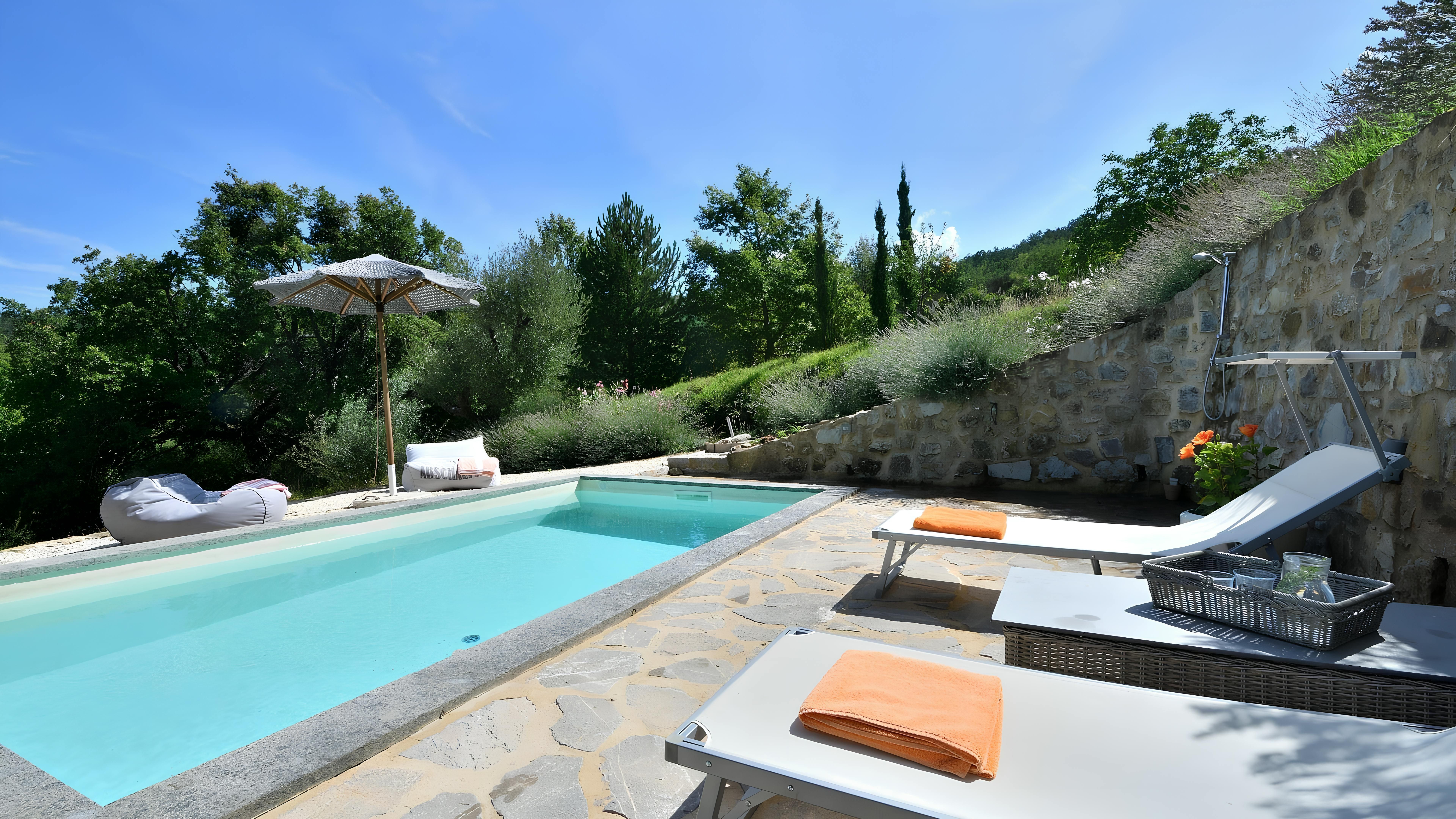 Nestled in the Tuscan countryside, this villa is a place for a family or group of friends to spend quality time together in the sunshine. From the hanging chair to sun loungers, the outside space offers ample opportunities to enjoy the views. Plus, there’s a covered terrace for alfresco dining. The sleeping quarters are on the lower ground floor with direct access to the garden and pool (something to keep in mind if you’re staying with young children), and the main bedroom has an open-concept en-suite, which may not be to everyone’s taste. If you fancy a change of scenery, the town of Castel del Piano is a short drive away.