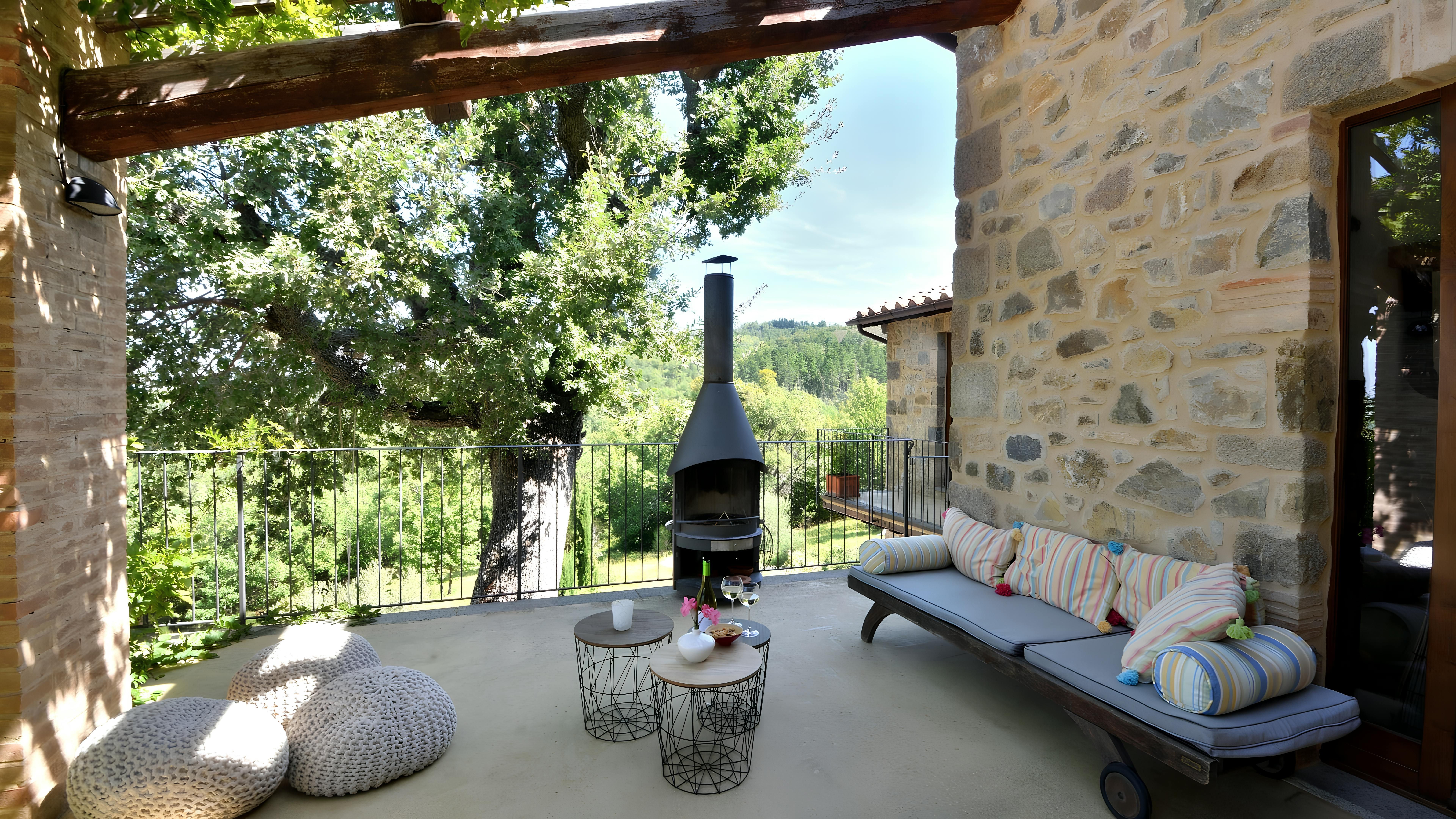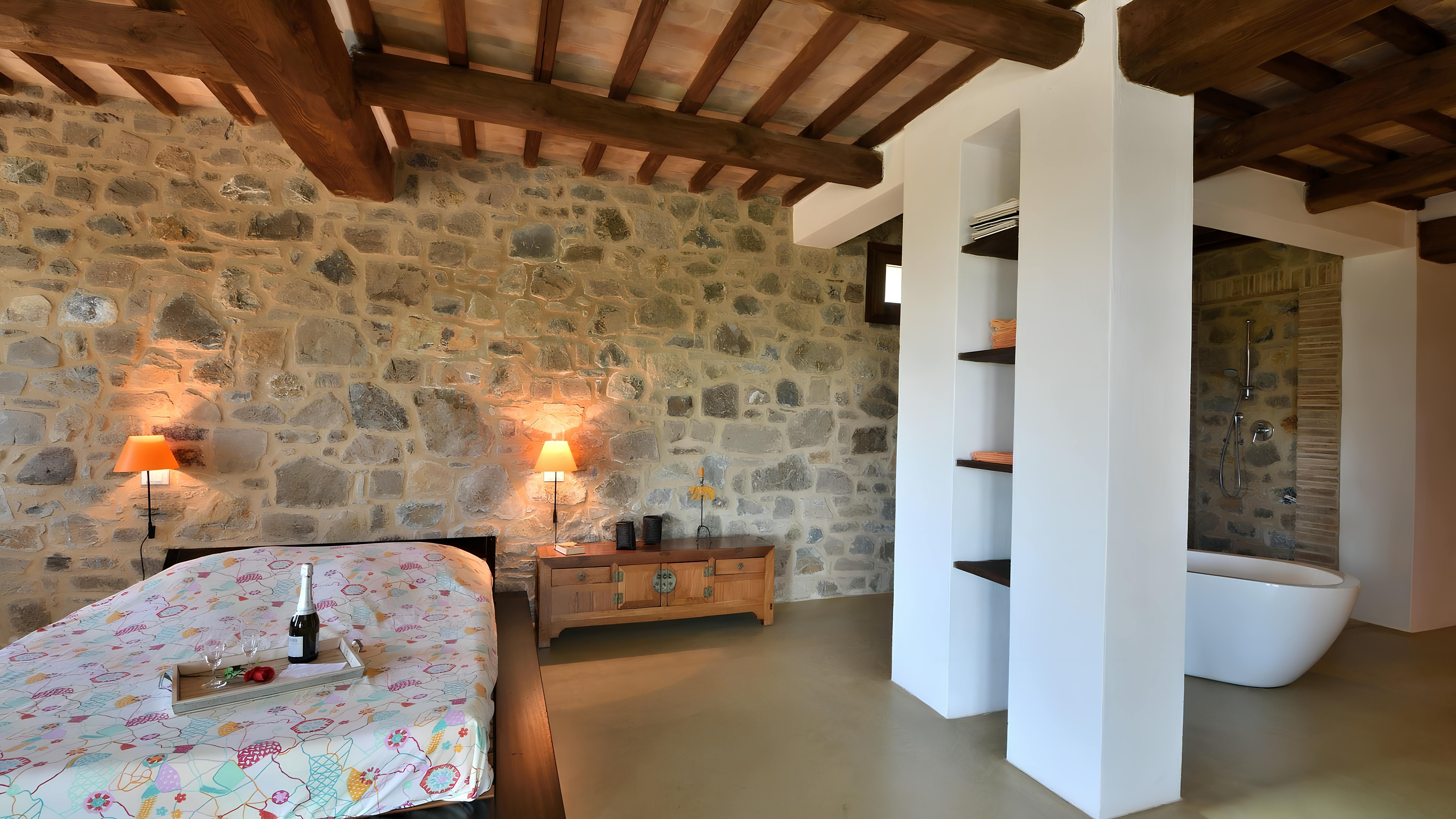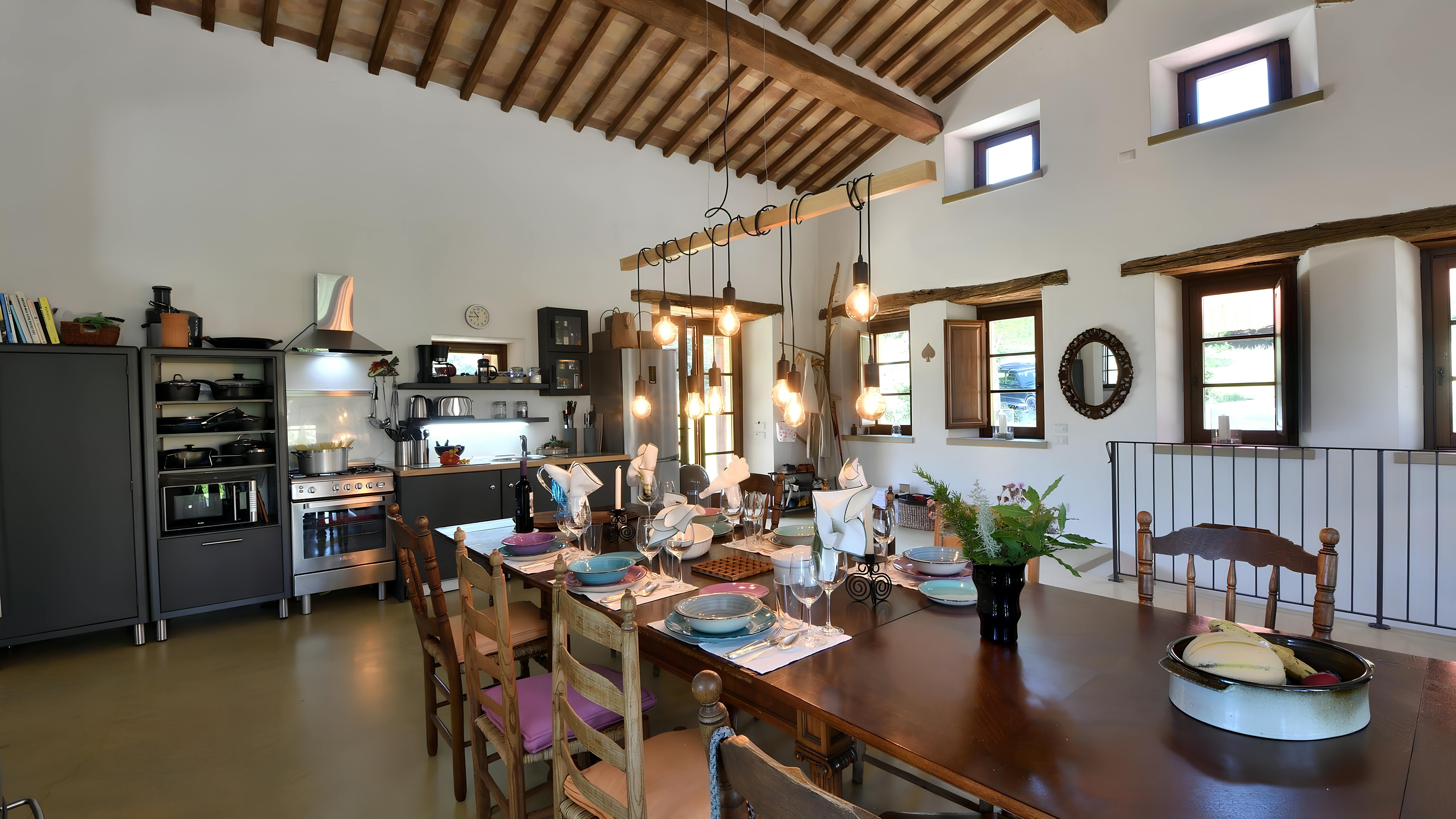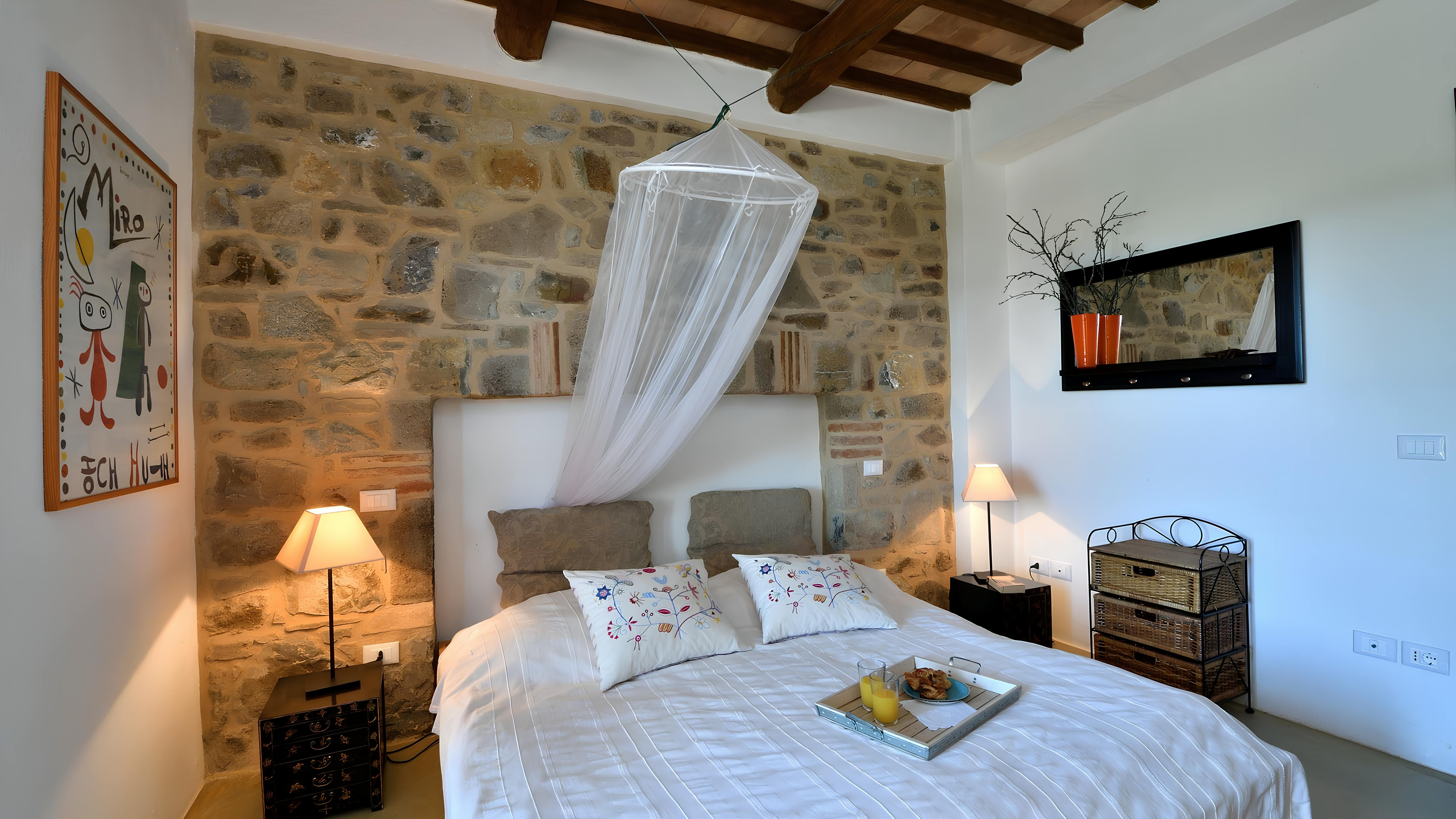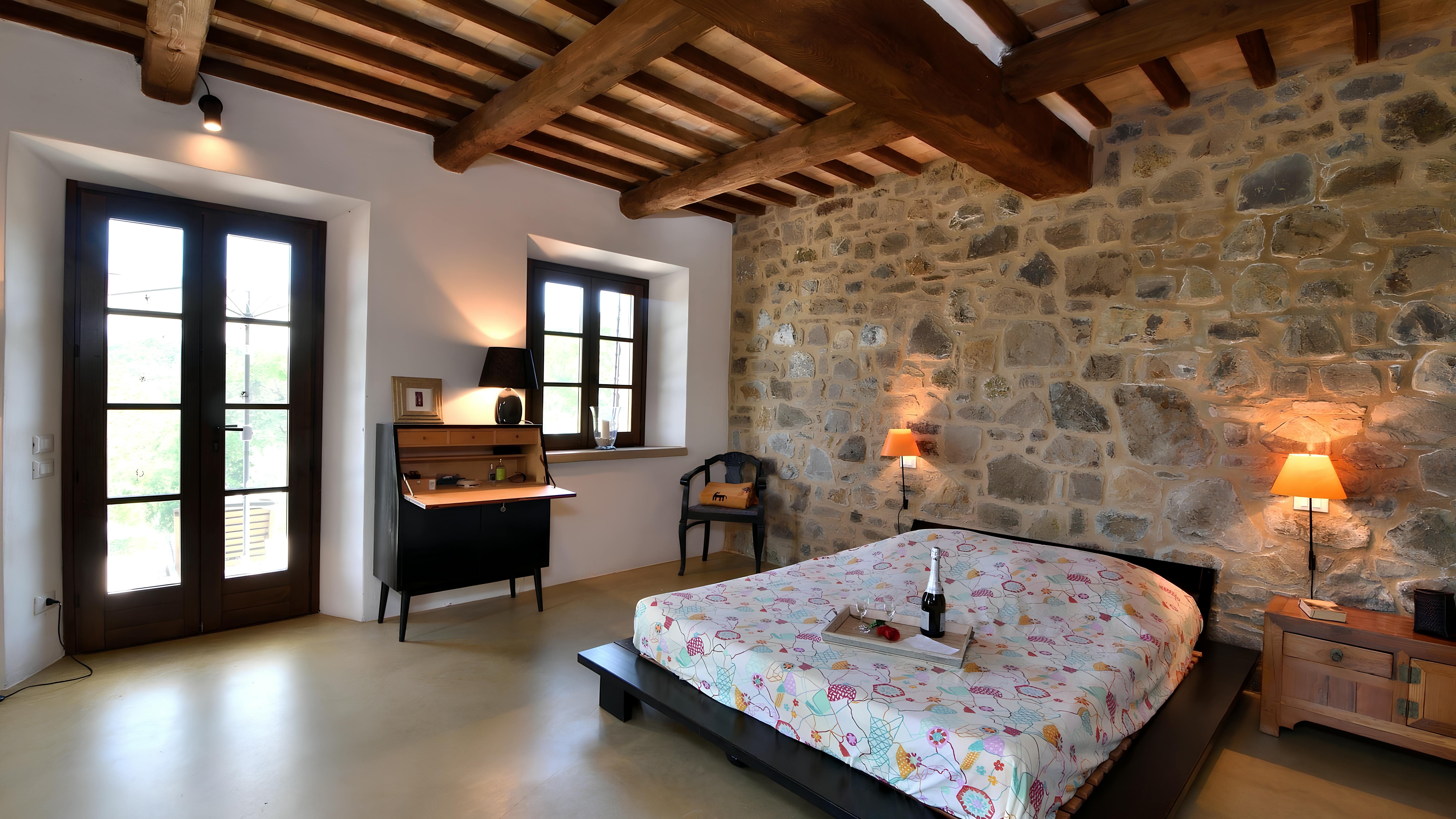 Nestled in the Tuscan countryside, this villa is a place for a family or group of friends to spend quality time together in the sunshine. From the hanging chair to sun loungers, the outside space offers ample opportunities to enjoy the views. Plus, there’s a covered terrace for alfresco dining. The sleeping quarters are on the lower ground floor with direct access to the garden and pool (something to keep in mind if you’re staying with young children), and the main bedroom has an open-concept en-suite, which may not be to everyone’s taste. If you fancy a change of scenery, the town of Castel del Piano is a short drive away.