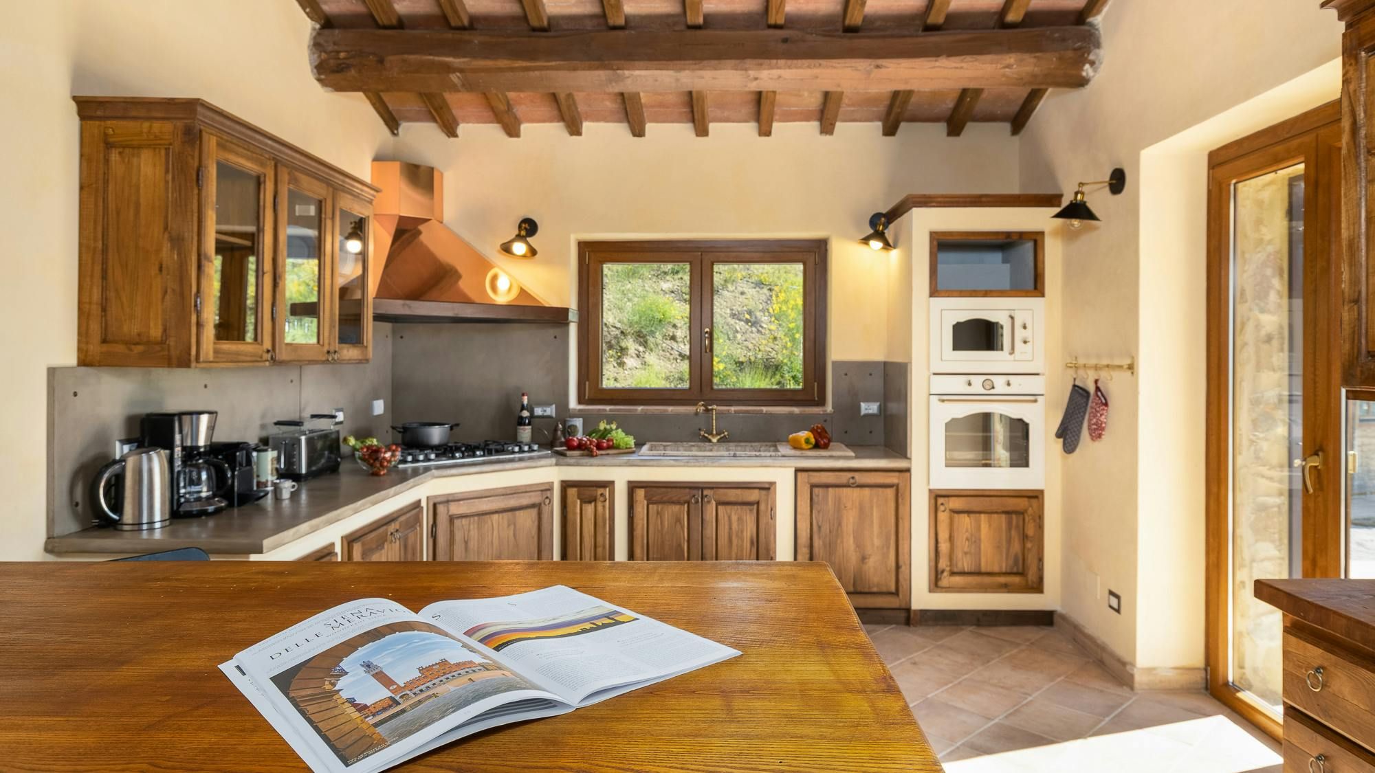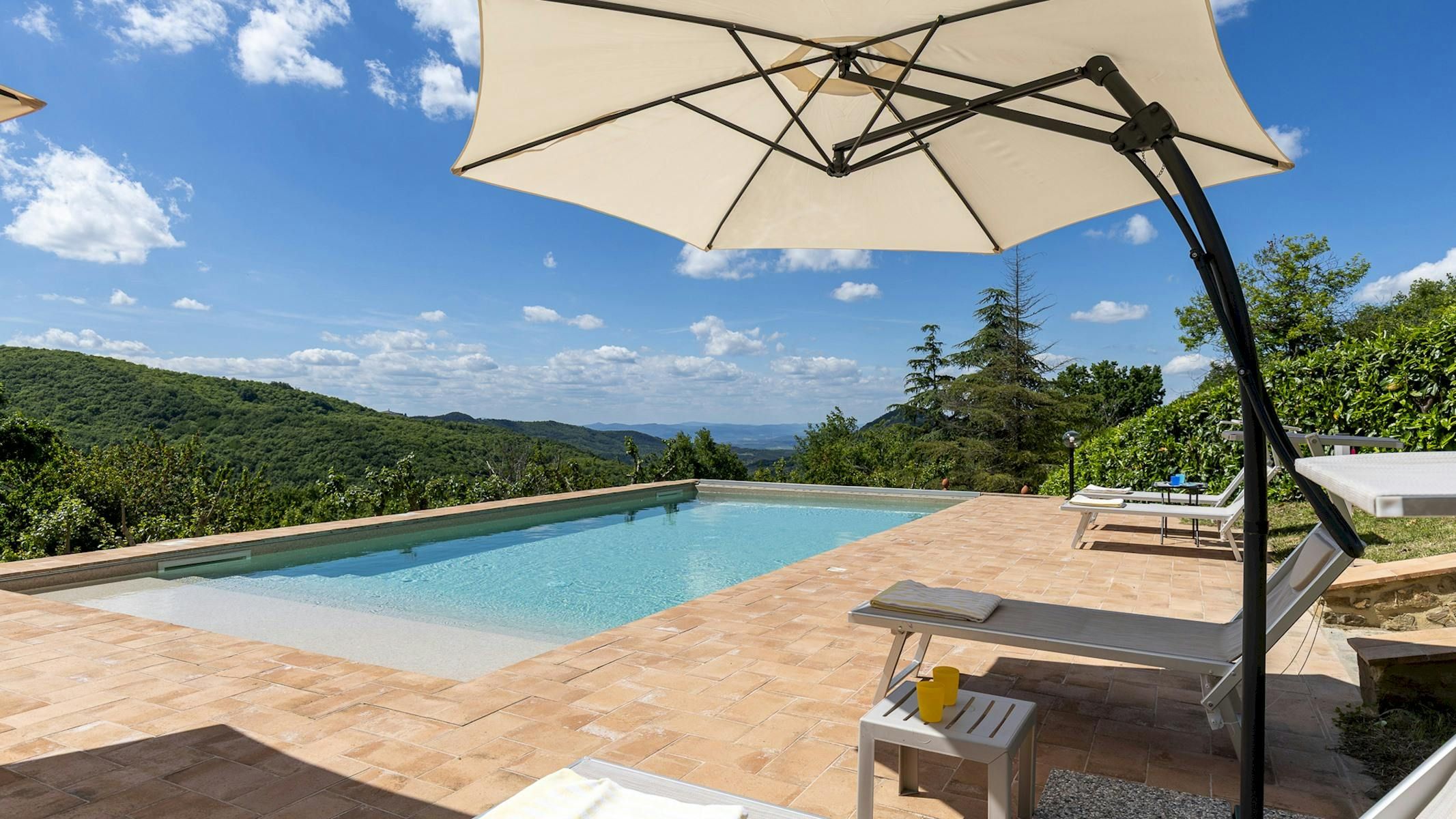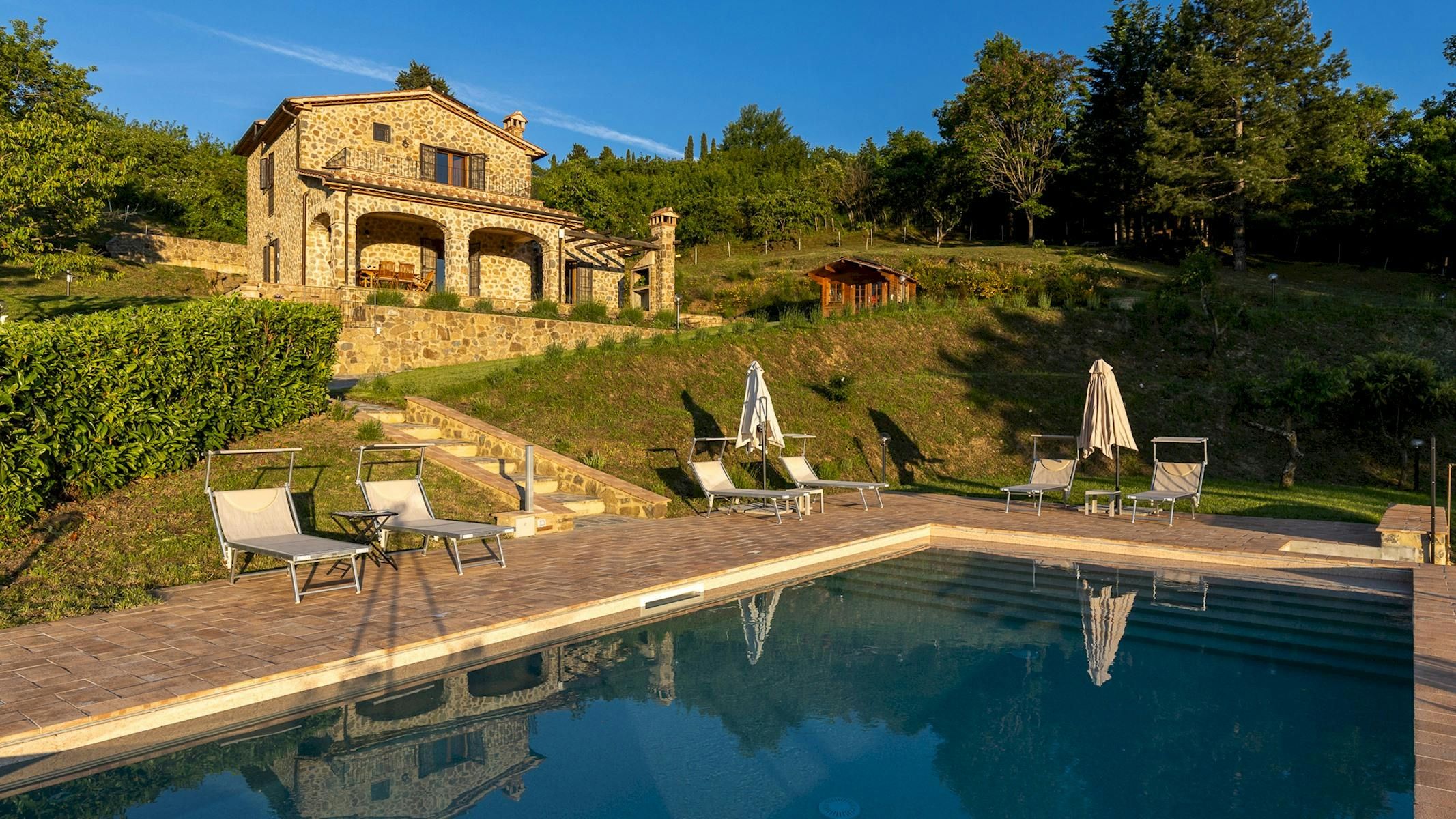 Perched on hillside where the Tuscan Maremma meets Mount Amiata, this home is a peaceful countryside retreat with sweeping views of the Val d’Orcia. This beautifully restored stone farmhouse offers rustic Italian charm with its wooden beams, terracotta floors, and elegant furnishings. We love the open-plan kitchen that opens onto a shaded porch – it’s perfect for alfresco breakfasts and slow siestas in the sun. The terraced garden features a saltwater infinity pool with panoramic views. Just minutes from the medieval village of Arcidosso and close to thermal spas, vineyards, and nature reserves, this is Tuscany at its finest.