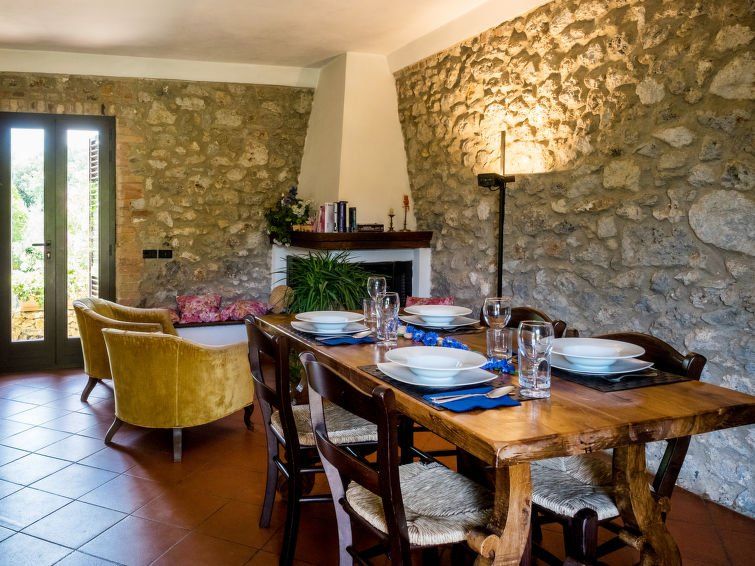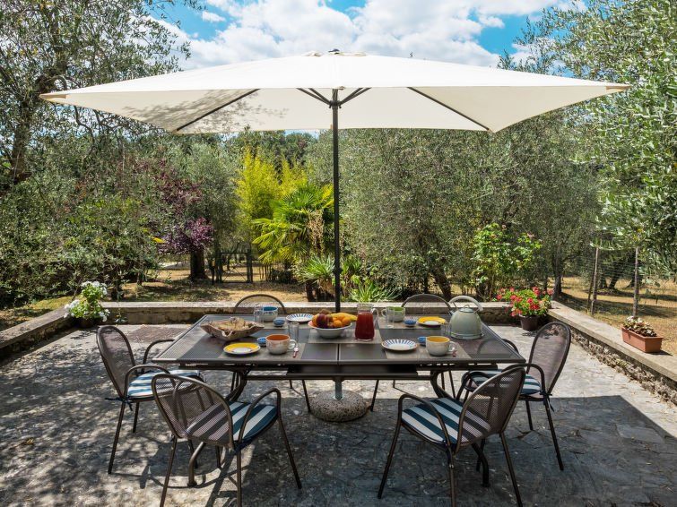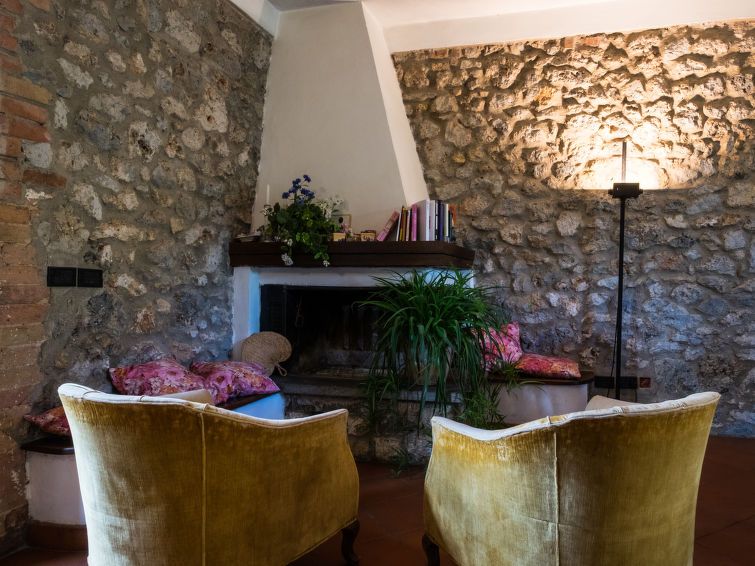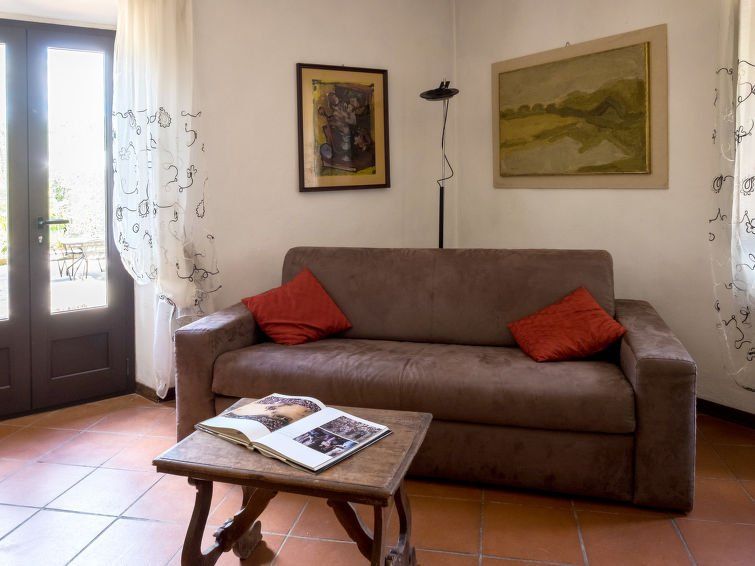 "Il Boschetto", 3-room house 100 m2, on the ground floor. Object suitable for 4 adults. Rustic and tasteful furnishings: living/dining room with open-hearth fireplace, dining table, kitchen corner and air conditioning. Exit to the garden. 1 double bedroom with 1 sofabed and air conditioning.