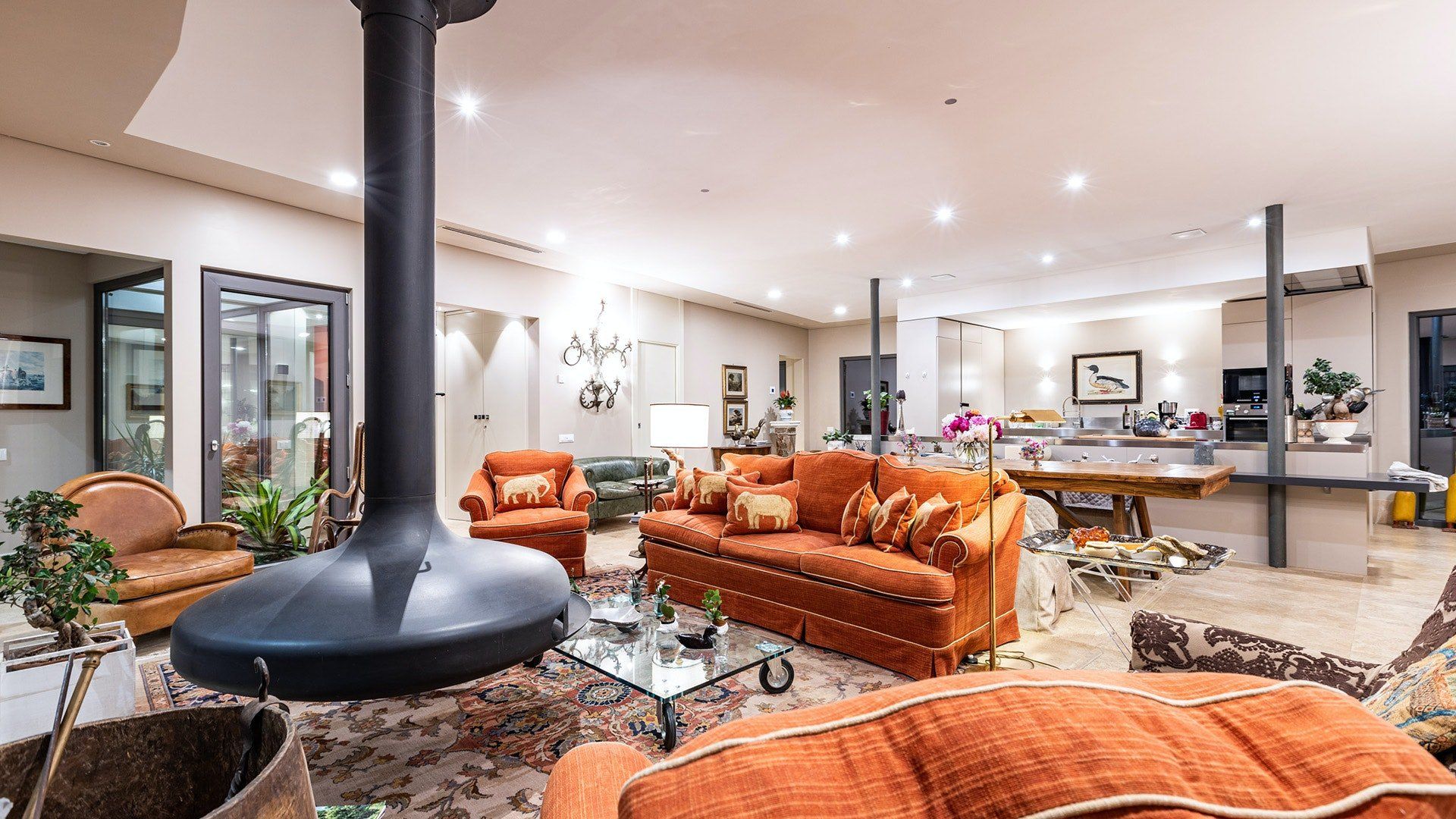 *The suspended fireplace is fully functional, and firewood can be purchased for a fee