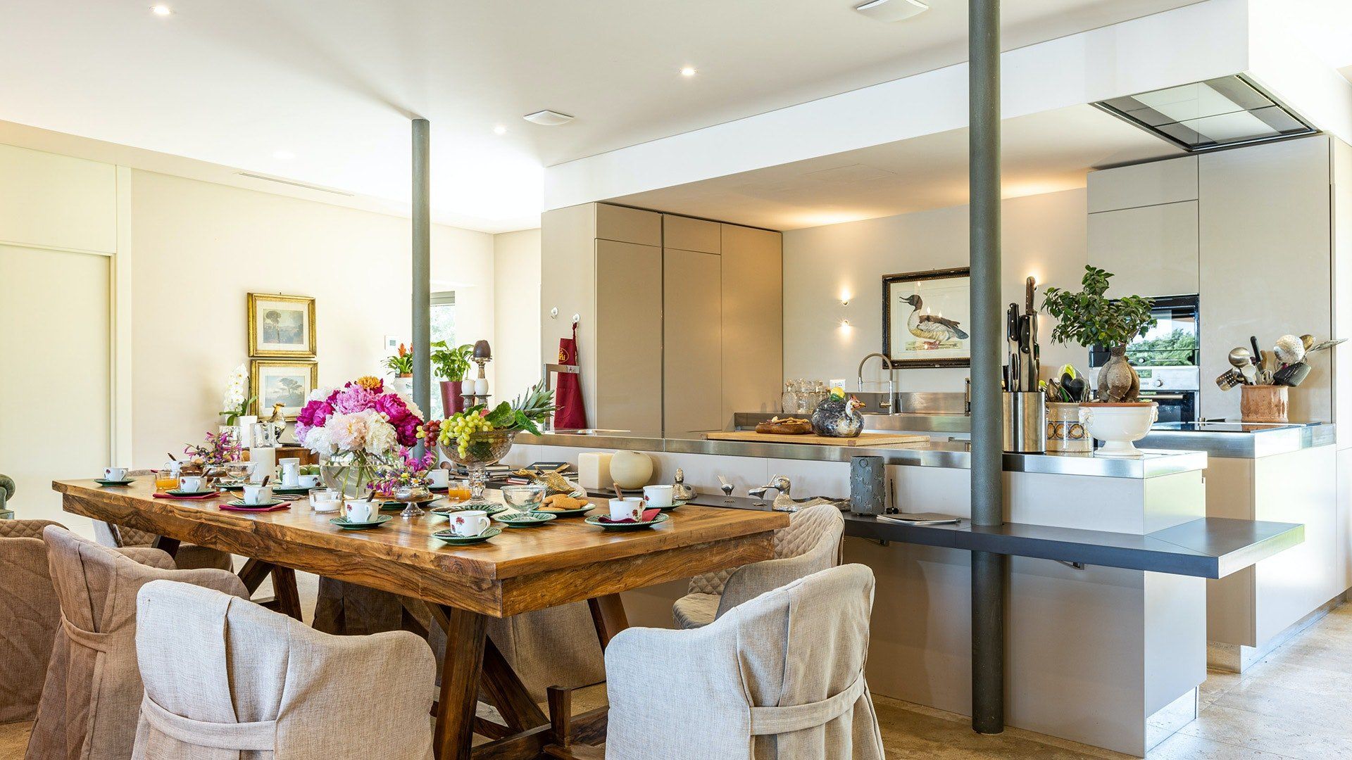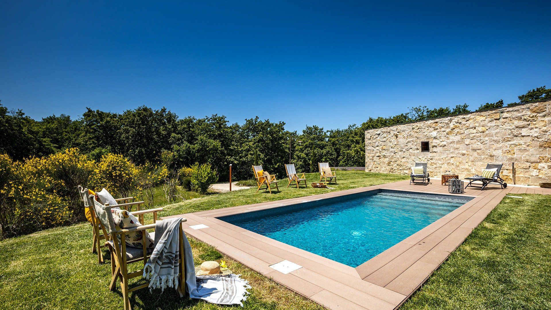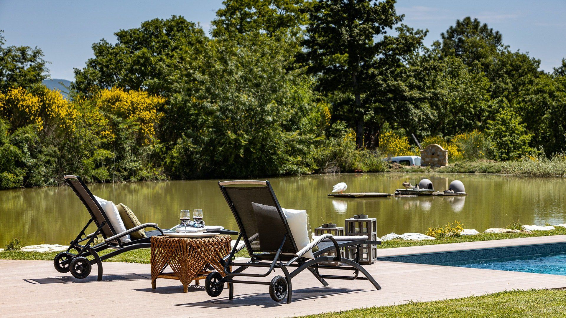 This refurbished farmhouse is essentially two homes in one, perfect for two families travelling together. Both segments of the house have three bedrooms, each with direct access to the lush garden. In the living room, floor-to-ceiling windows lead out to the courtyard and lawns, where there’s a private pool and a pond – ideal for game fishing (provided that the fish is thrown back into the water). The interiors pay homage to the home’s initially intended purpose, as a clubhouse for horse riders to relax in, with paintings of horses adorning the walls, and furnishings that have an old-world charm. Despite the antique bed frames and Moroccan rugs, the home itself feels modern, particularly the suspended fireplace in the heart of the living room, and the sleek kitchen flanked by iron columns and picture-frame windows. Your neighbours are of the equine variety, and with stables next door, guests can book horseback riding lessons, and take a trail ride out on the iconic Tuscan landscape.