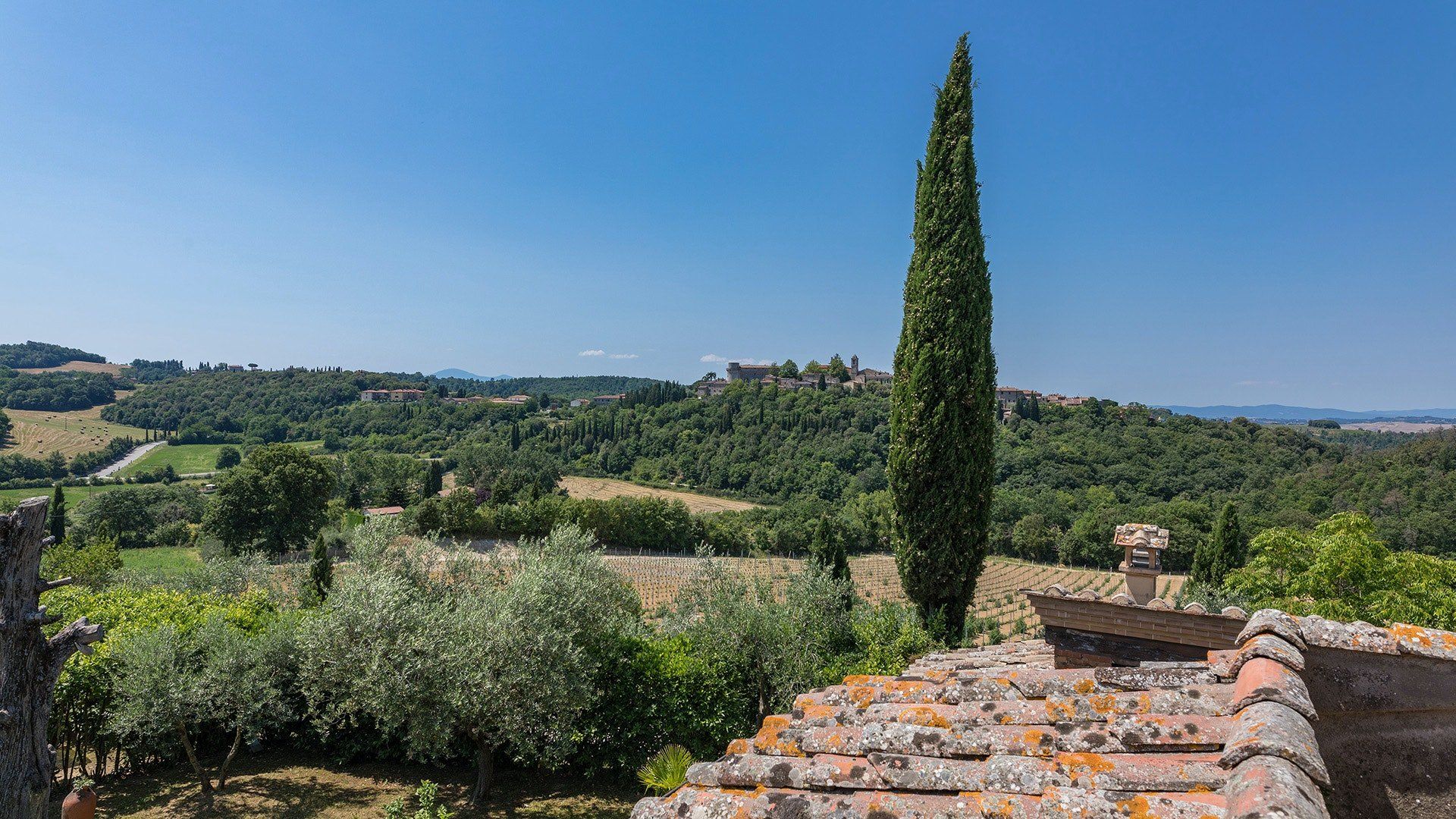 A true rural oasis, this flower-framed Tuscan farmhouse beautifully blends traditional charm with modern comforts to create the perfect quiet retreat. Hills teeming with olive trees, cypresses and holm oaks surround it on all sides, best enjoyed from the home's panoramic terraces. Inside, meanwhile, brick-clad archways, stone flooring and exposed beam ceilings blend with elegant furnishings in the living room to create a feeling of countryside grandeur. Wander around the garden brimming with lemon trees, jasmine and oleander plants and down the path to the secluded swimming pool where sun loungers invite luxurious afternoon relaxation. An outdoor dining table beckons at mealtimes for barbecue feasts, while the indoor pool table and the bedroom reading platform are perfect for whiling away quiet hours when the sun gets too hot. With the medieval village of Trequanda just a few minutes walk away and Siena reachable by car in just forty-five minutes, there’s plenty of exploring to enjoy in and around your private haven.