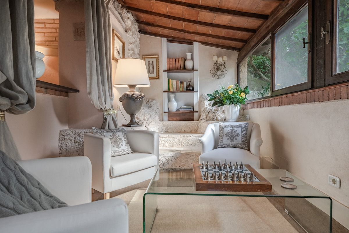 This Tuscan villa is grand Italian rusticana at its finest. Though the wooden ceilings, thick stone walls and view of vineyards for miles feels like an 18th-century farmhouse, the glowing candelabra, rich oil paintings and antique furniture are more manor house-esque. The grounds are dotted with myriad places to recline and eat (both at the same time if you fancy), with a wooden dining table in the shade, or a wrought iron bistro set in the sun, and day beds and loungers lining the swimming pool. On top of the traditionally Tuscan flair, there’s a hint of Morocco, especially in the indoor dining room, lit by lamplight. For chilly nights there’s an old stone fireplace in the lounge, and the real Italian country kitchen beckons for rustic fare cooked up by the old hearthside. If you want to get out and explore Tuscany, the surrounding hillsides are dotted with ruined castles between rolling vineyards and the beautiful city of Siena is just a twenty-minute drive away.