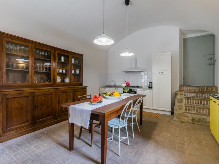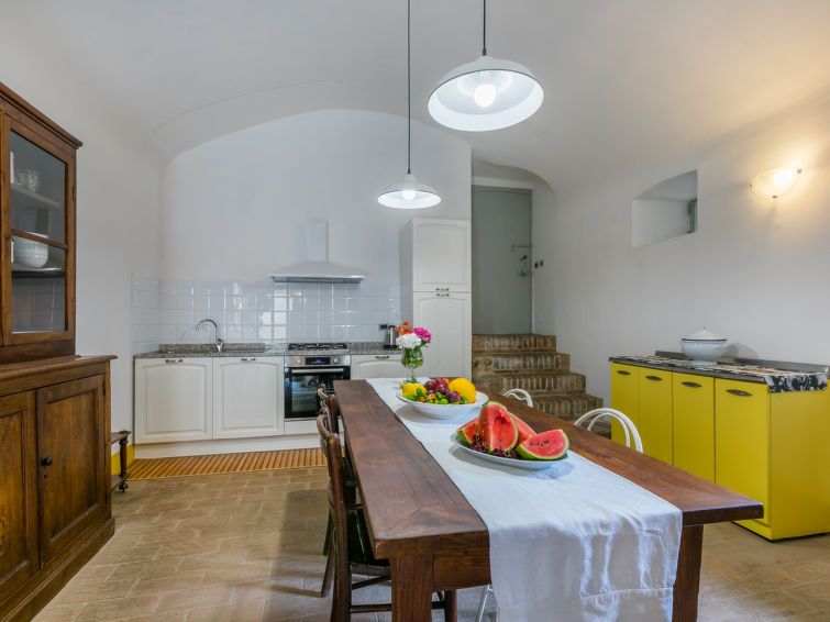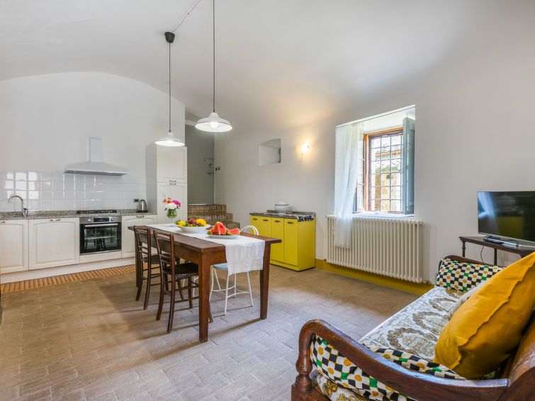 "Torre 1", 2-room apartment 55 m2, on the upper ground floor. Spacious, practical and romantic furnishings: living/dining room with TV (flat screen). Exit to the garden. 1 double bedroom with shower/bidet/WC. Open kitchen (dishwasher, 4 gas rings, toaster, kettle, electric coffee machine).
