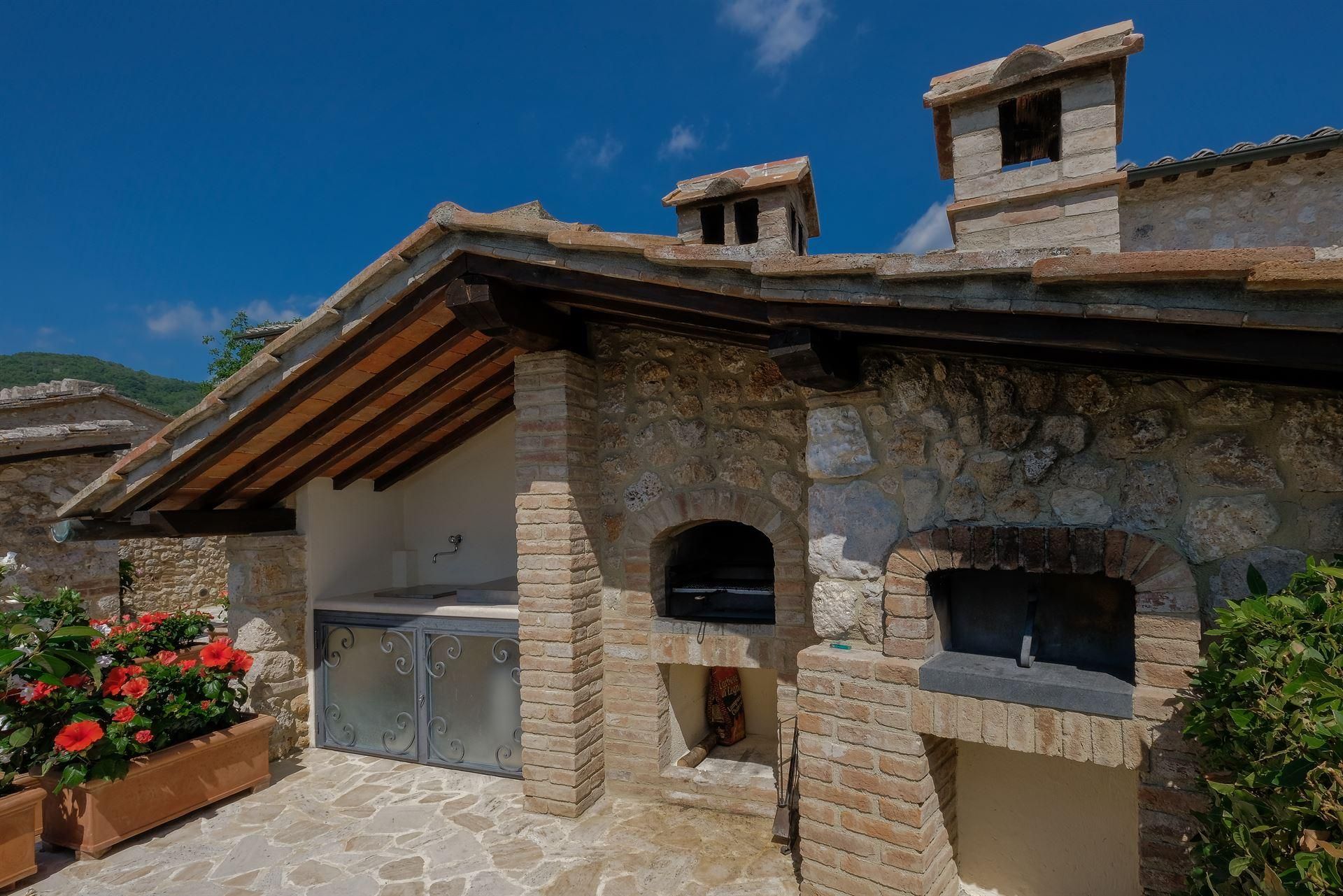 Families will love this stone villa. Featuring a main house, a studio apartment, and a separate cottage, you'll have plenty of space to chill out together or enjoy some quiet time alone. Everyone will adore the garden. Summer afternoons call for dips in the private pool. When evening rolls around, tuck into an Italian feast on one of the covered terraces. The views are something special, overlooking the beautiful hillsides and vineyards of Val di Merse. When you're ready to explore, it's an easy jaunt to the nearby towns of Sovicille or Rosia or twenty minutes by car to Siena.