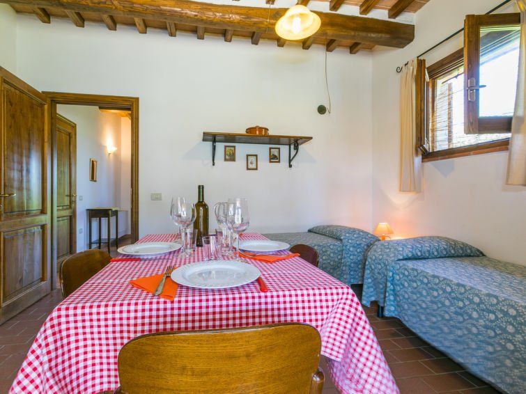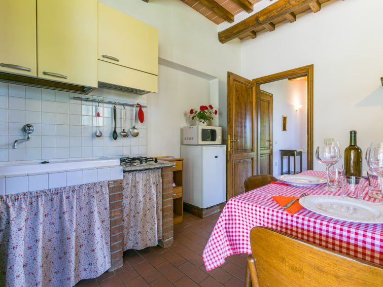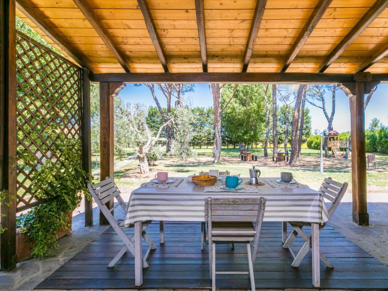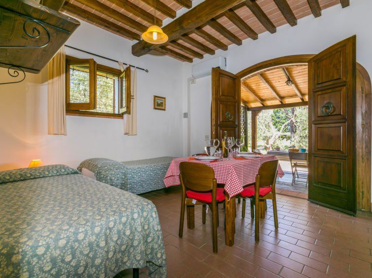 "Bianco", 2-room apartment 37 m2, on the ground floor. Beautiful and rustic furnishings: living/sleeping room with 1 double sofabed and dining table. 1 double bedroom. Exit to the garden. Open kitchen (2 gas rings, microwave). Shower/bidet/WC. Electric heating, air-conditioning. Large terrace roofed.
