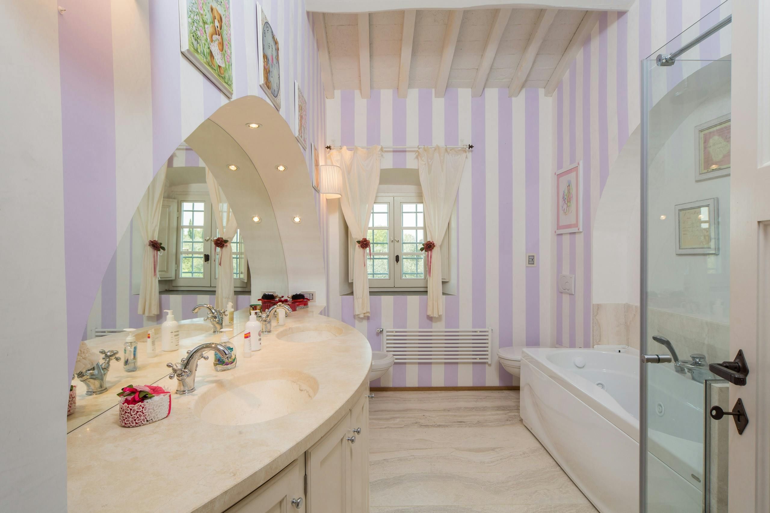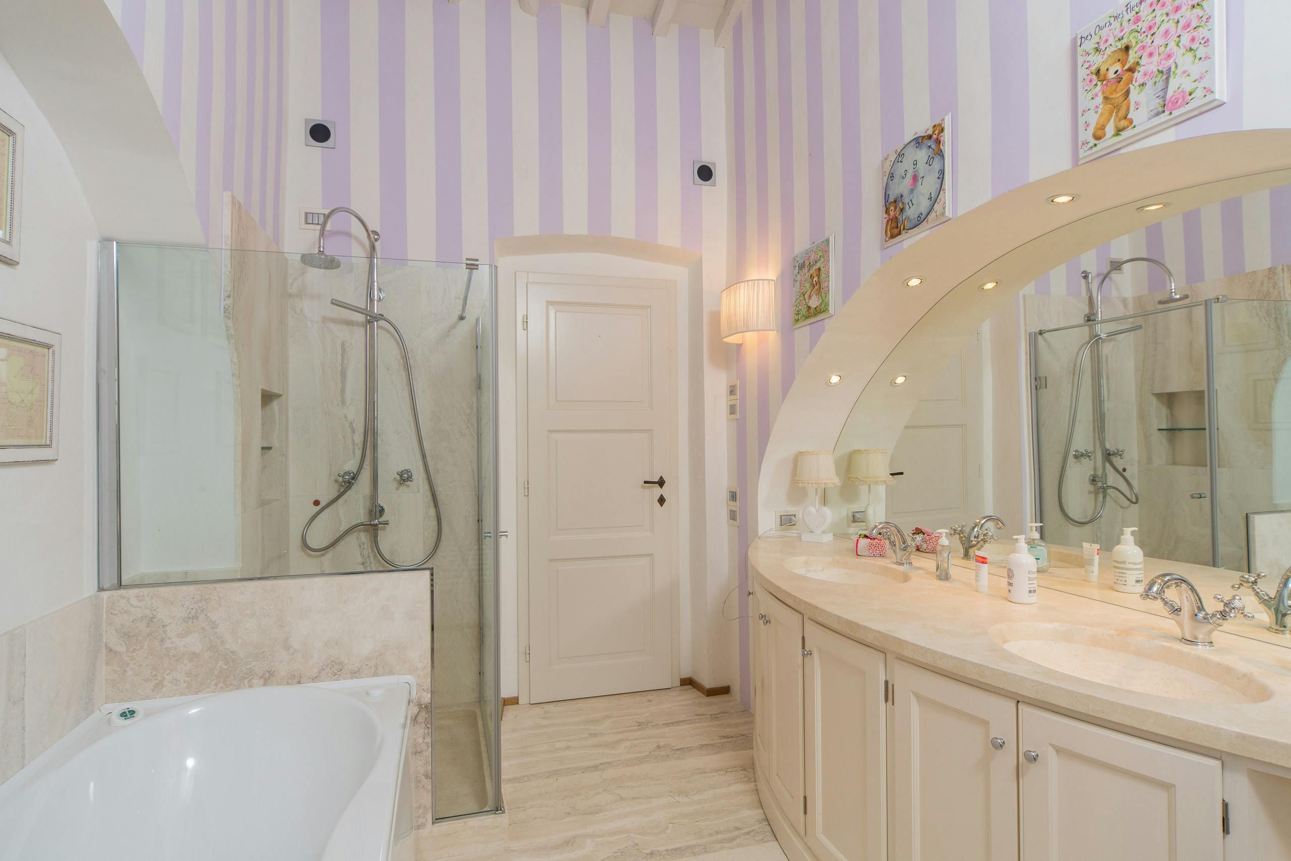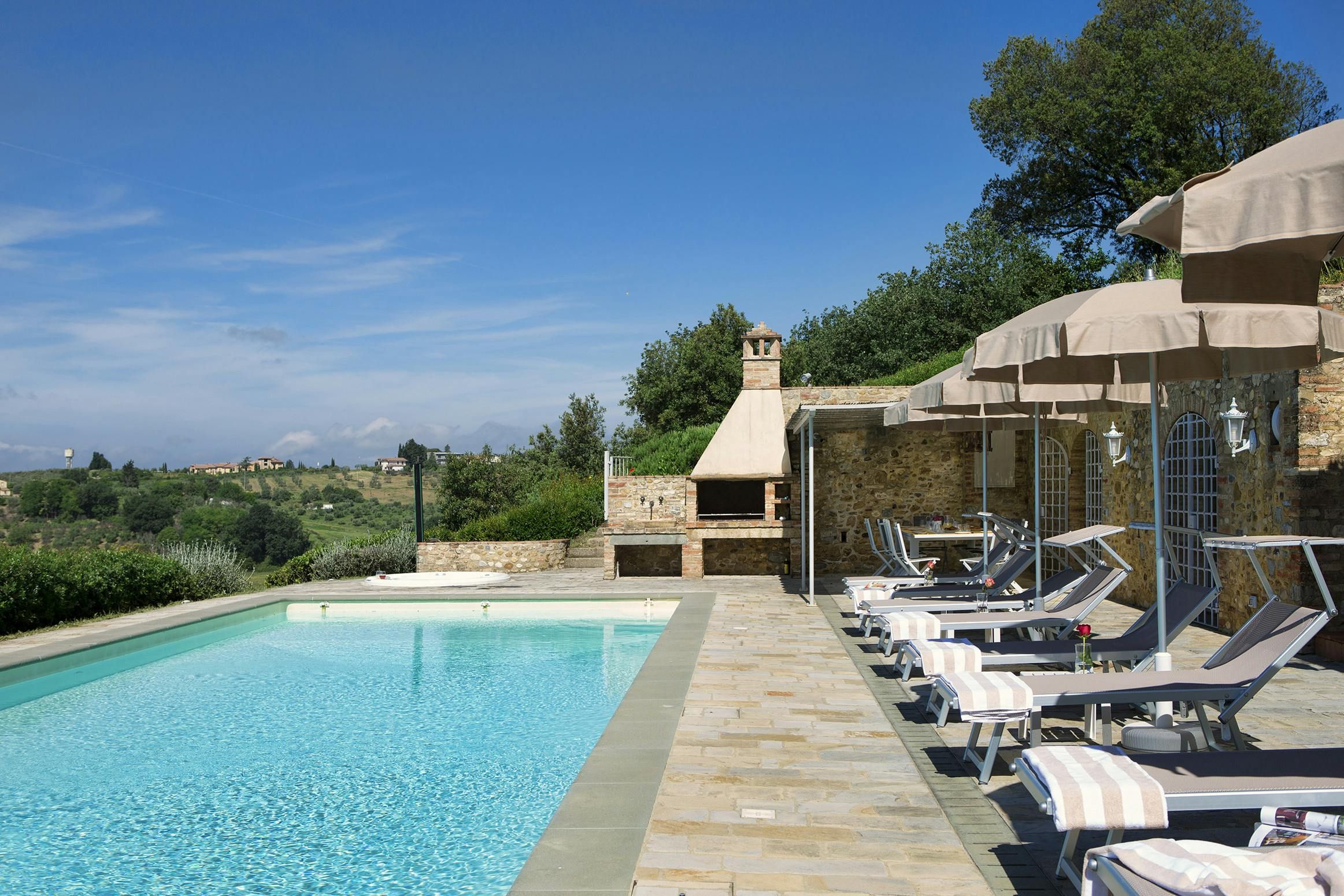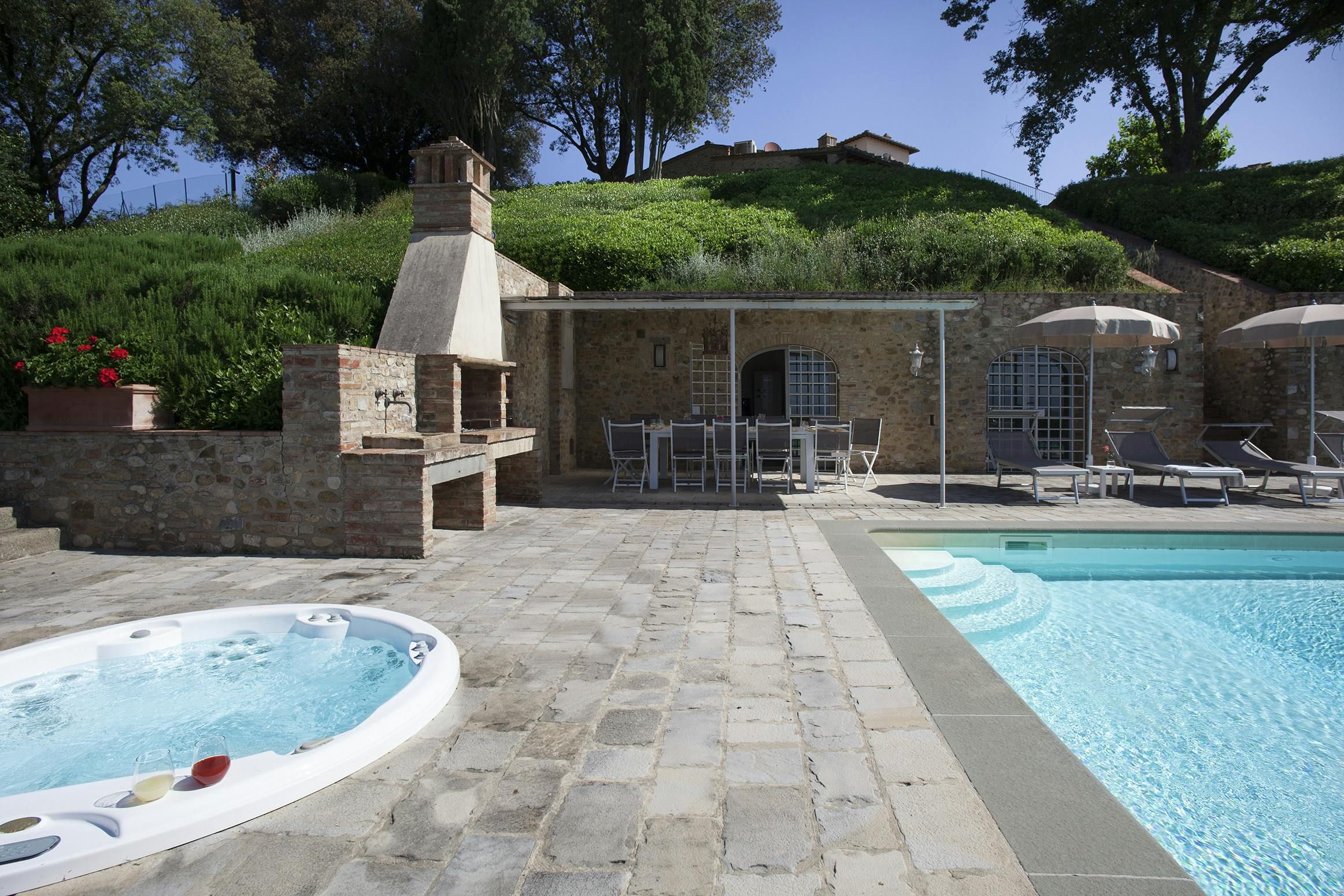 Tucked away in the Tuscan countryside, this charming villa in Tavarnelle Val di Pesa is all about relaxation. Perfect for larger groups, entertainment options are plentiful in this home. Indoors, you can enjoy a private spa, sauna, exercise room and games room, while outdoors, a private pool, hot tub, generous gardens and sun-drenched terraces await. Keen to explore more of Tuscany? Hop in the car for a road trip – Radda, Greve, Siena and Florence are just some of the locations within reach.