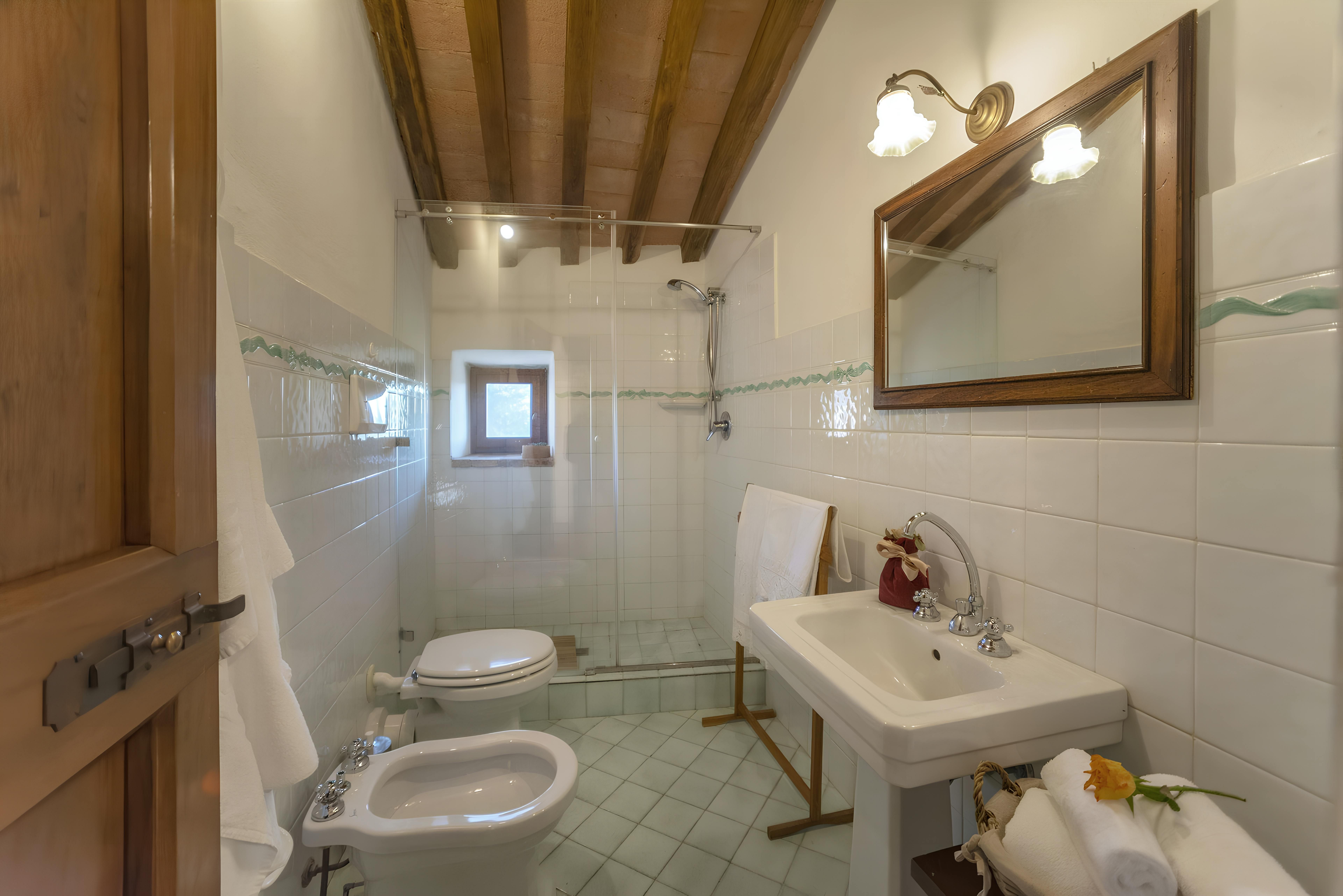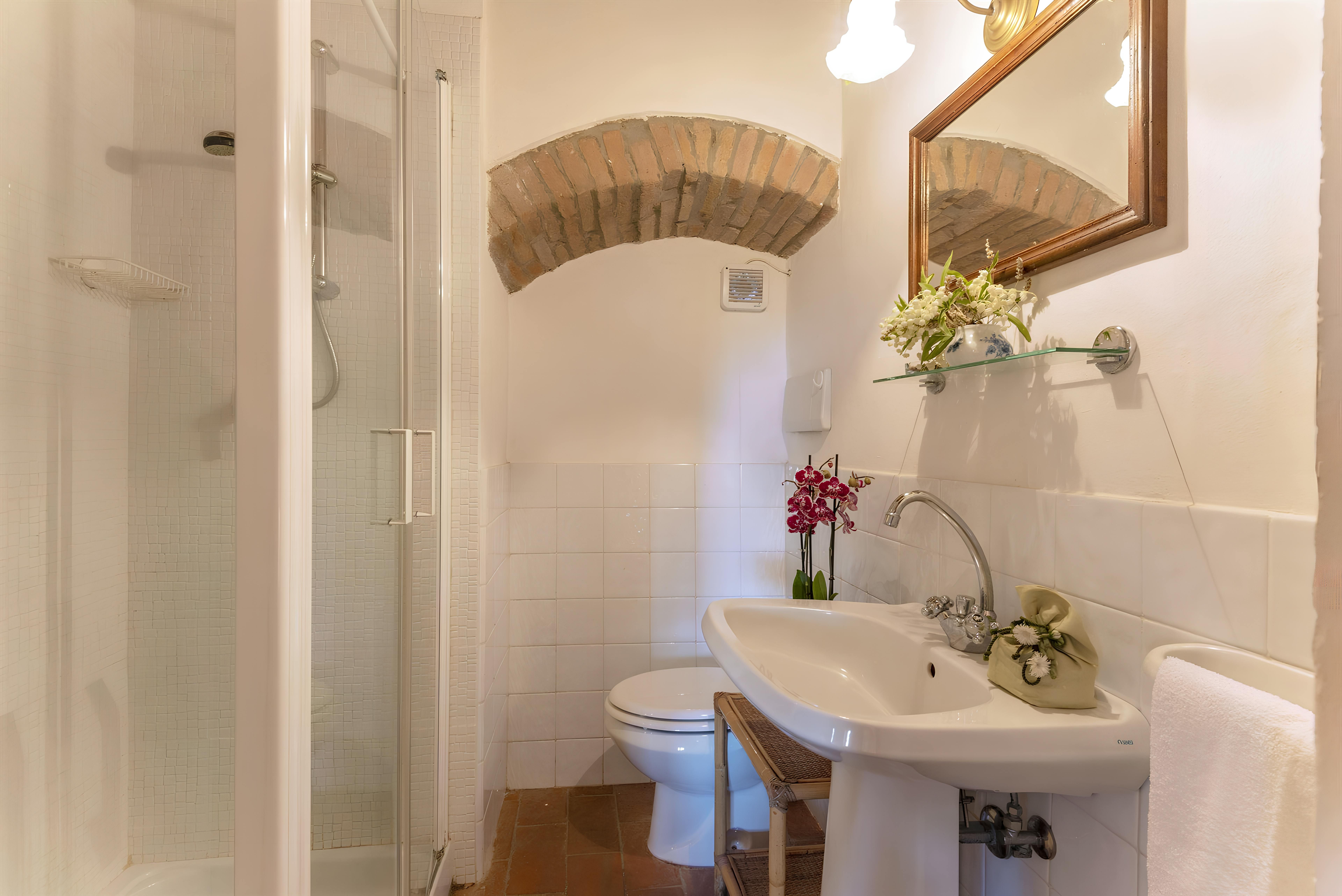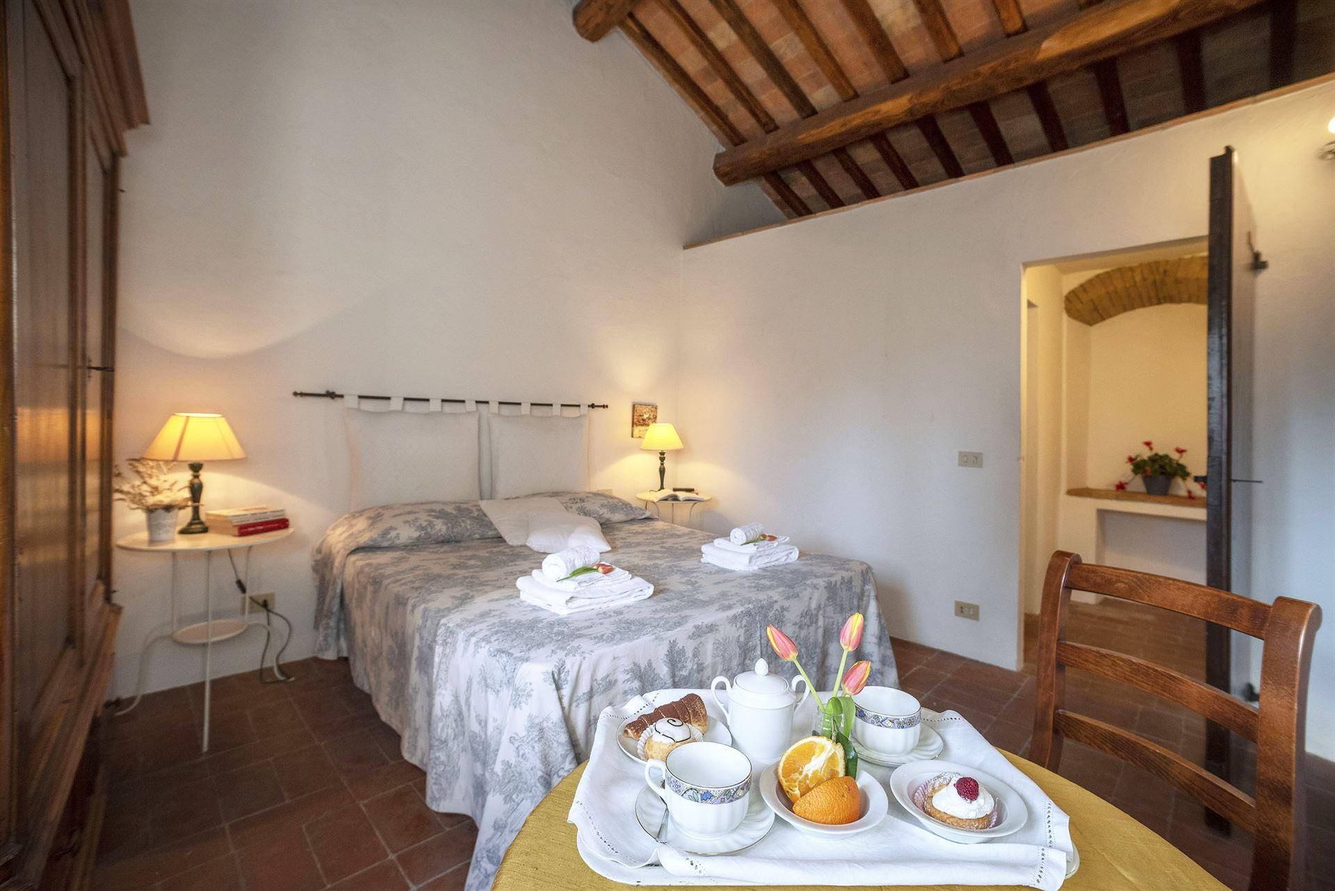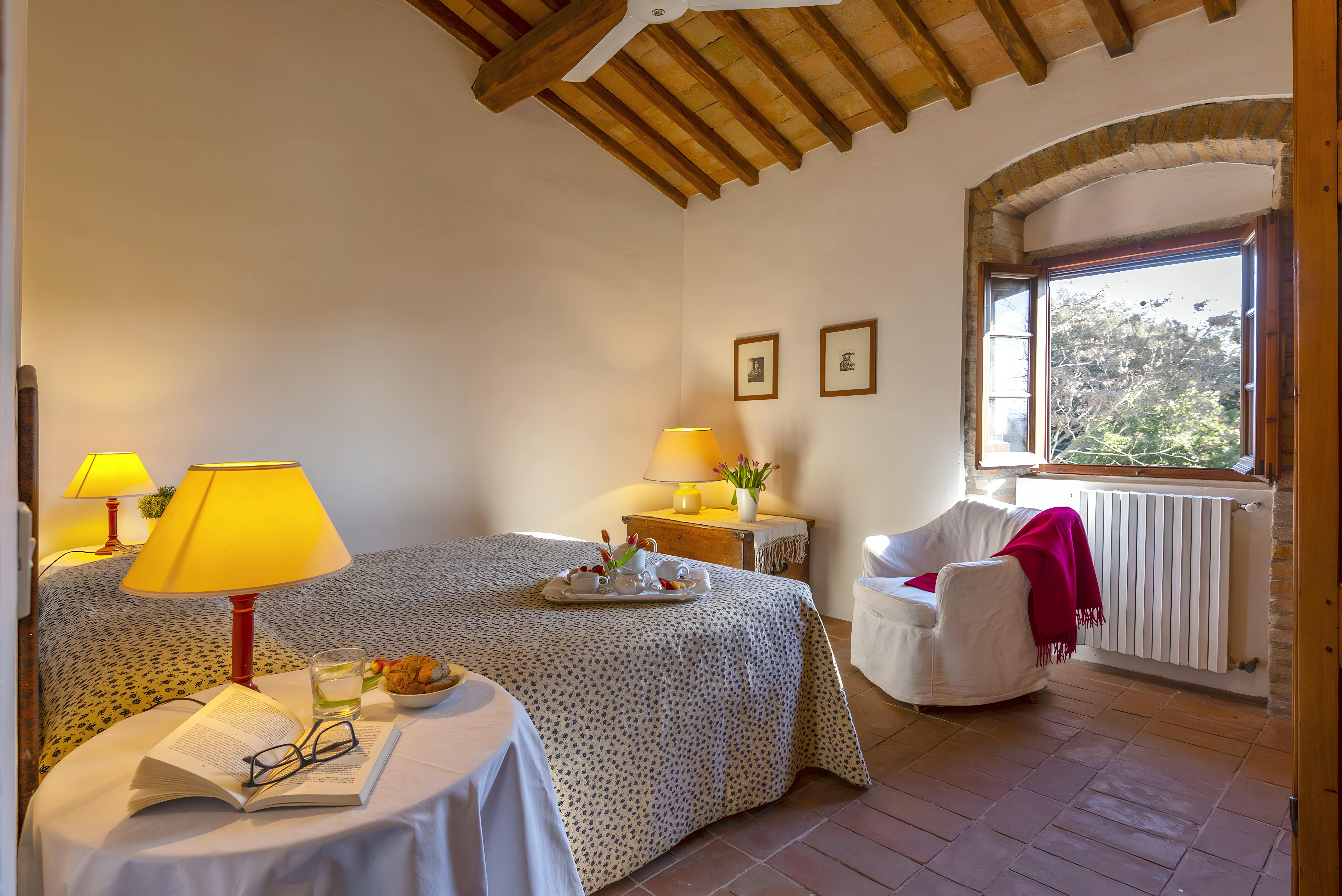Tuscan character abounds in this stone villa, from wood-beamed ceilings to terracotta-tiled floors. It's the garden, however, that steals the show here. A covered terrace is the perfect spot to enjoy an Italian breakfast while the swimming pool beckons on a hot summer day. The best part is the views – sit back with a Chianti-made wine and admire the surrounding vineyards, olive groves, and meadows. When you're ready to venture out, take a trip to Florence – less than an hour's drive – or hop on the three provided mountain bikes to explore locally. Just note that the owner's son lives on the property, but none of the spaces are shared.