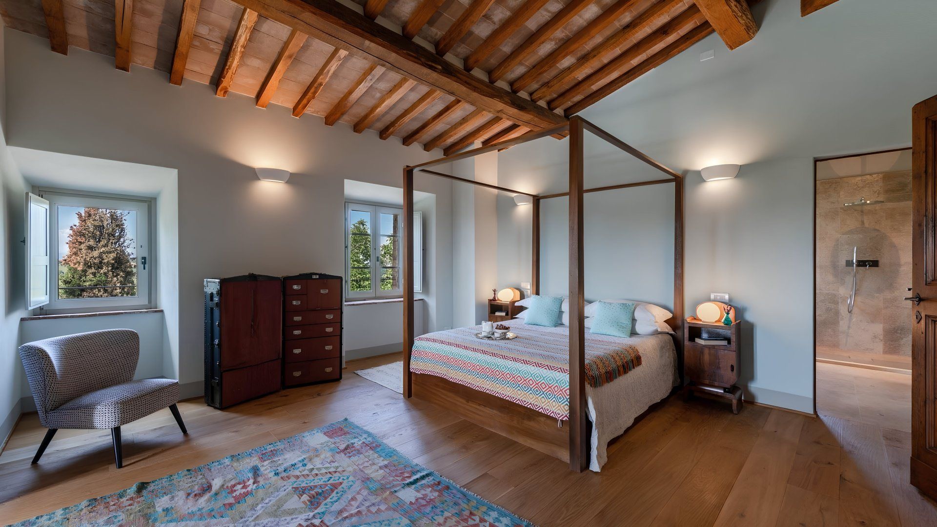 Looking for the wow factor? This home fits the bill. Each room effortlessly blends Tuscan tradition with contemporary aesthetics – none more so than the living area, with its brick archways, stone walls and beamed ceilings. There's also an annexe offering even more space for groups, containing an additional kitchen and living room, as well as the fifth and sixth bedrooms (one of which is wheelchair-accessible). Outside, the swoon-worthy views from the infinity pool and Jacuzzi are hard to resist. Meanwhile, the shaded pergola is perfect for Aperol Spritzes at sundown. And did we mention daily maid service is included? If you can tear yourself away from this stunning home, Montefollonico is a thirty-minute walk, while Siena is an hour's drive.