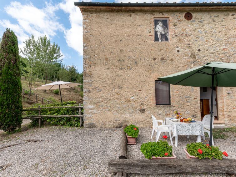"I Prati", 9-room house 305 m2 on 2 levels. Practical and rustic furnishings: 2 double bedrooms. Kitchen (4 hot plates, oven, electric coffee machine) with 1 sleeping facility and dining table. 3 showers/bidet/WC. Upper floor: 2 double bedrooms. 2 rooms, each room with 2 beds. (spiral staircase), 1 open double bedroom.