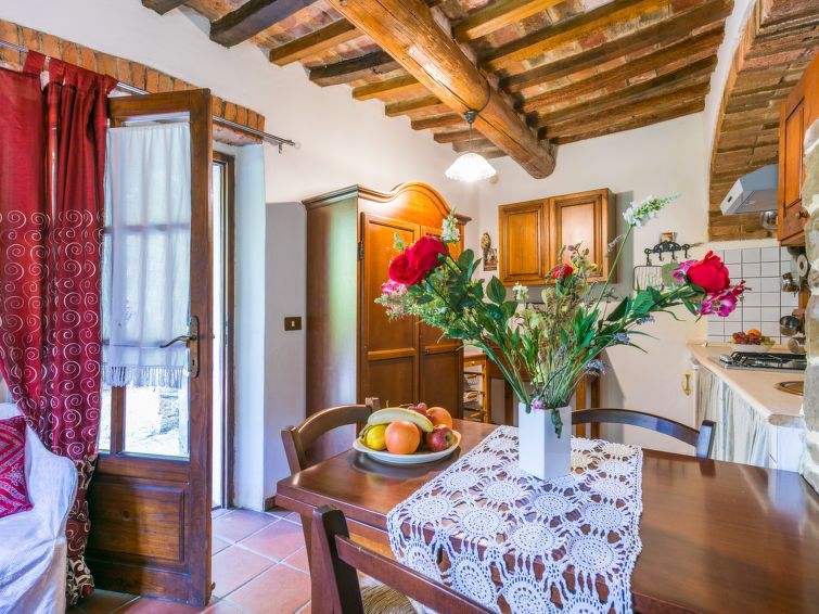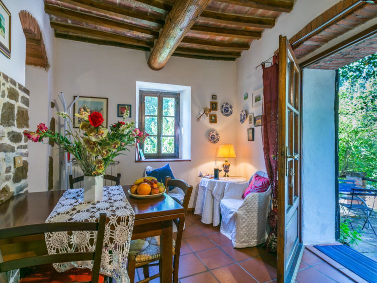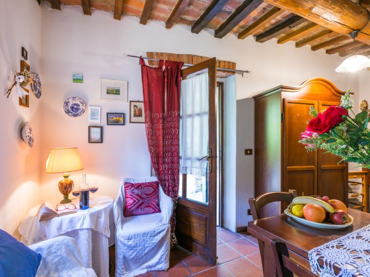 "Nido", 2-room apartment on the ground floor. Practical and rustic furnishings: small living/dining room with open-hearth fireplace and kitchen corner. 1 double bedroom. Small kitchen (Gas stove, 4 gas rings, toaster, kettle, microwave, electric coffee machine). Shower/bidet/WC. Gas heating (extra).