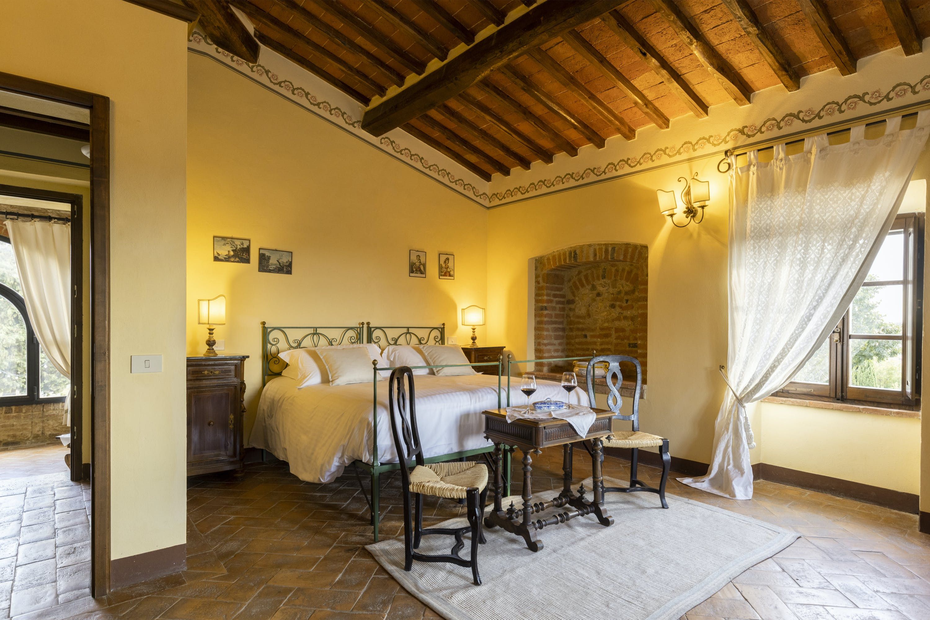 This incredible Tuscan villa dates back to the 1600s and has been lovingly transformed into an organic and eco-sustainable farm. The landscape surrounding this home is impressive too – especially from the panoramic pool – as it's situated in Val d'Orcia, a UNESCO World Heritage Site. Spread over two floors, the space includes a fully-equipped kitchen and plenty of outdoor dining space, as well as BBQ facilities and a wood-burning oven for alfresco cooking. If any guests have mobility issues, three of the en-suite bedrooms on the ground floor are easily accessible from outside. We recommend a car to explore the area with ease – the Medieval village of Trequanda is just 5km away.