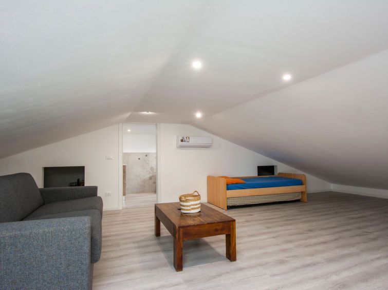 "Acquamarina", 3-room maisonette 80 m2 on 2nd floor. Spacious and bright, partly with sloping ceilings, fully renovated in 2025, comfortable and modern furnishings: living/dining room with dining table and TV (flat screen), air conditioning. 1 double bedroom. Kitchenette (oven, dishwasher, Gas stove, 4 gas rings, toaster, kettle, microwave, freezer, electric coffee machine) with dining table.